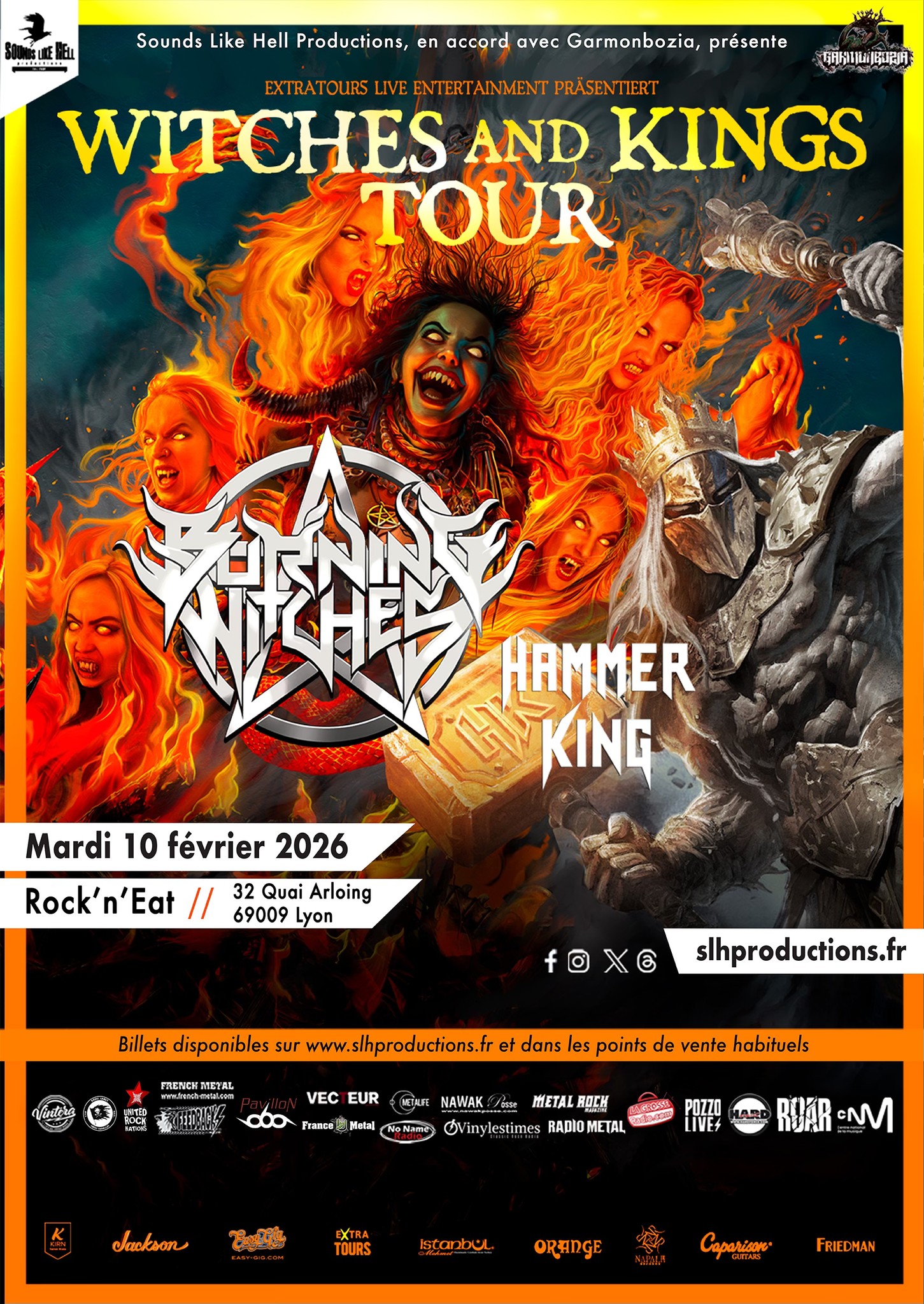 Mardi 10 février 2026 — BURNING WITCHES + HAMMER KING (Rock’n’Eat, Lyon)