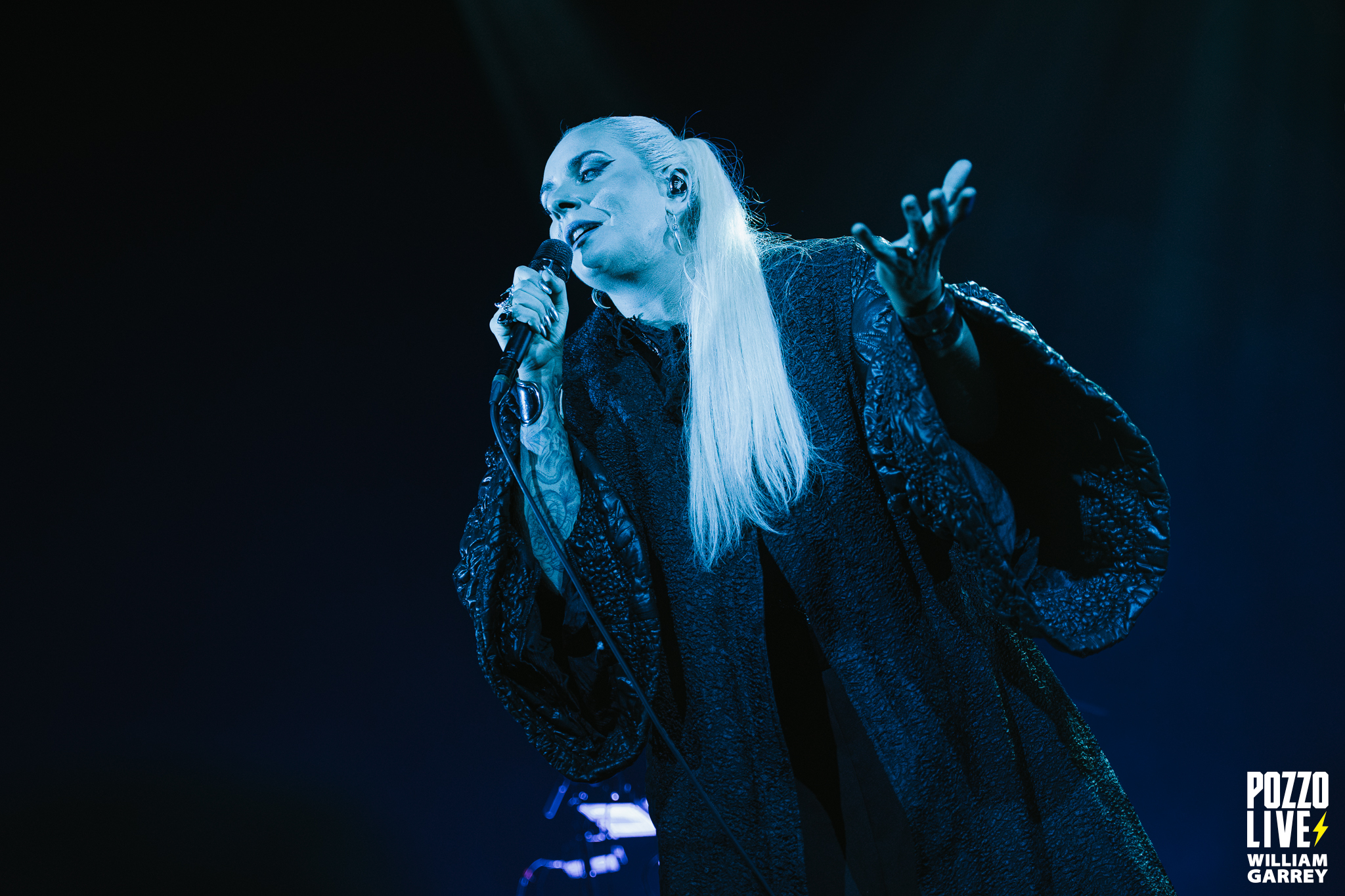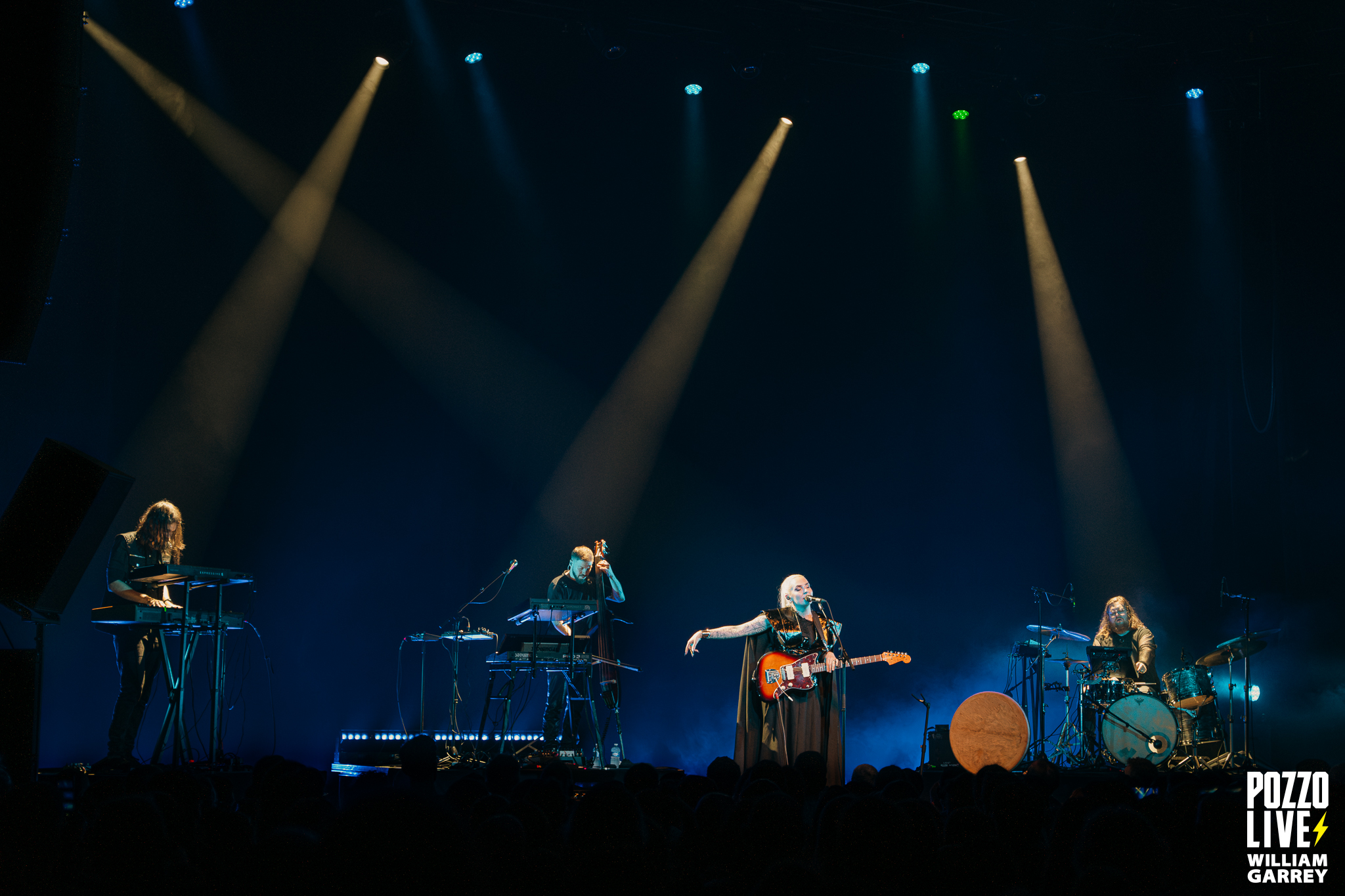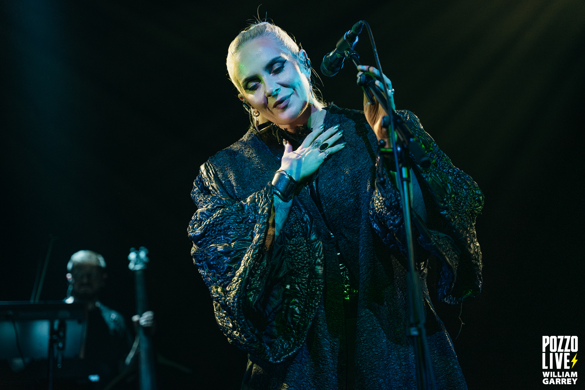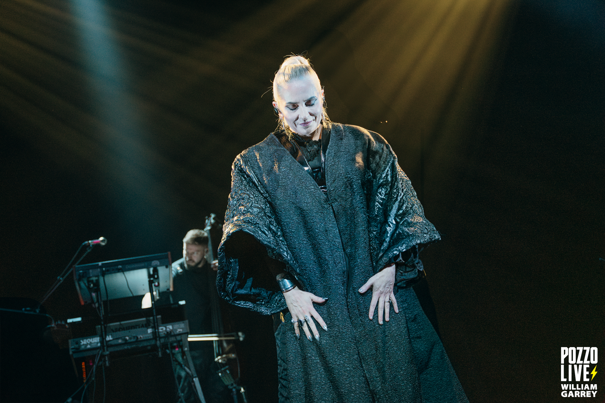 Eivør Pálsdóttir prend la suite d’une main de maître avec son puissant charisme, que ce soit dans son superbe manteau aux textures complexes, ou avec une guitare à la main. Accompagnée de musiciens talentueux, elle a transporté un public acquis à sa cause au travers de titres qui explorent majoritairement Enn, dernier opus du groupe. Si ce dernier a constitué l’exacte moitié des morceaux joués ce soir, le reste explore l’ensemble de la discographie du groupe, comme un chemin dans l’histoire qui entremêle les souvenirs et les projets.