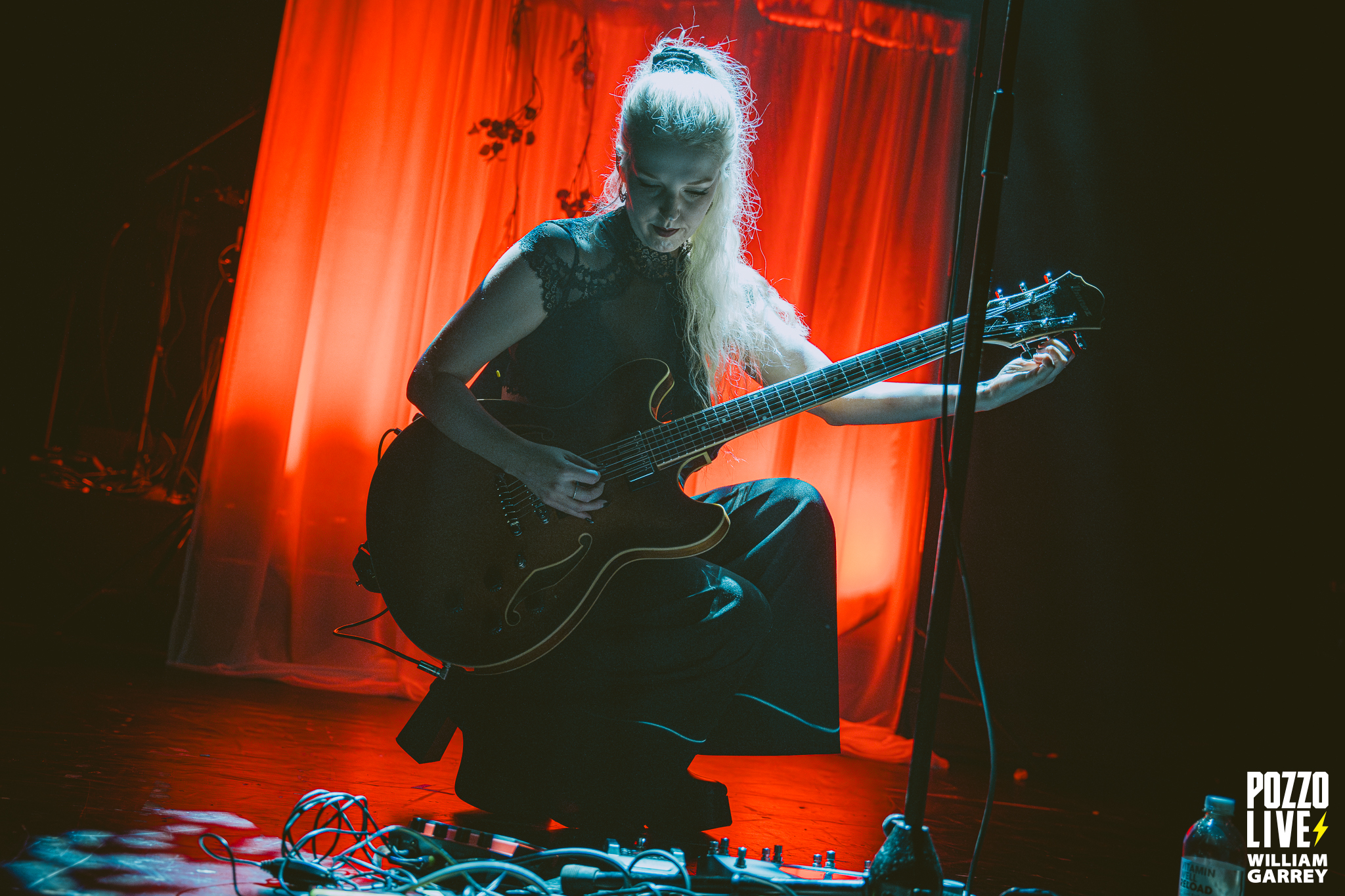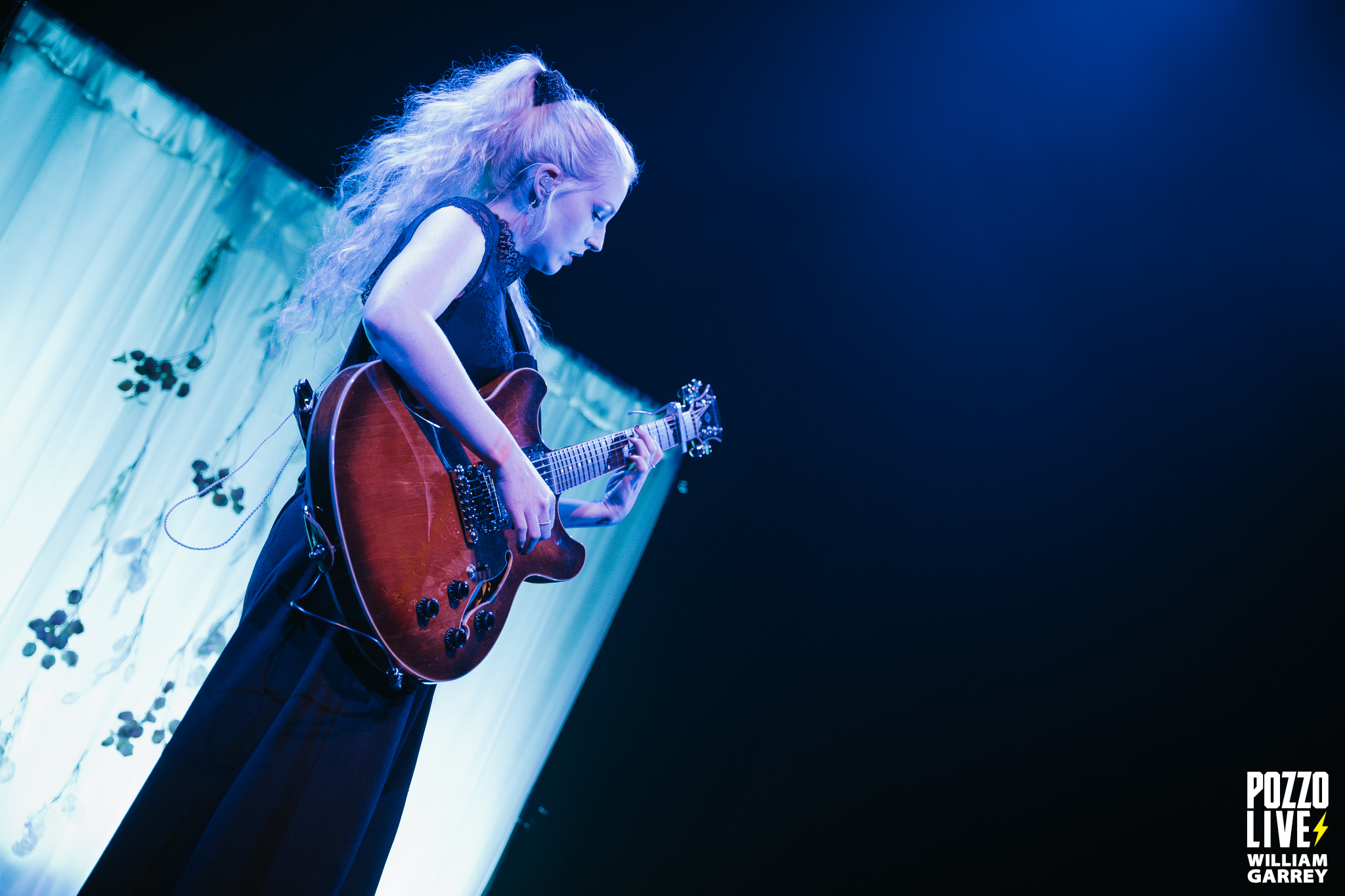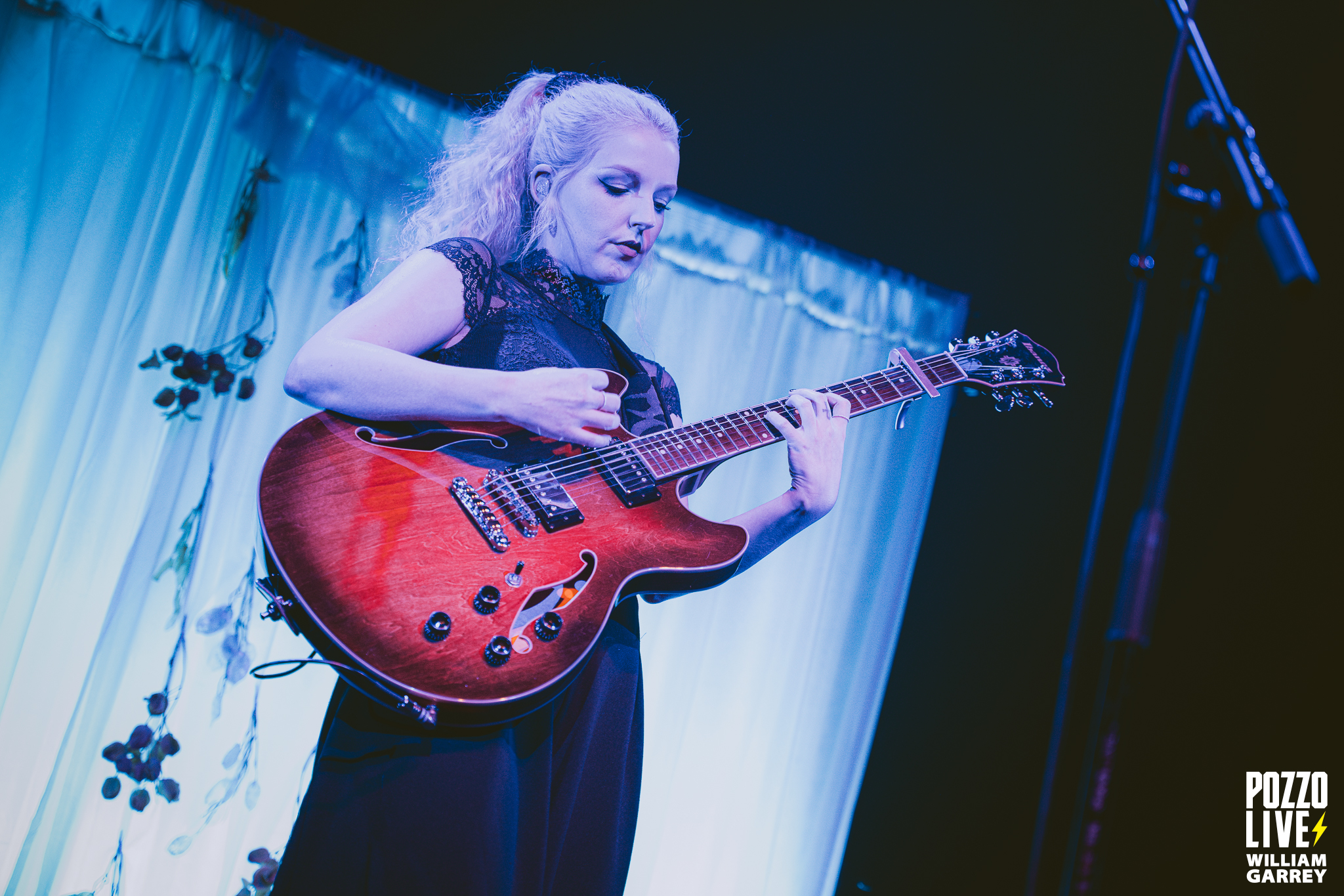 Eivør Pálsdóttir prend la suite d’une main de maître avec son puissant charisme, que ce soit dans son superbe manteau aux textures complexes, ou avec une guitare à la main. Accompagnée de musiciens talentueux, elle a transporté un public acquis à sa cause au travers de titres qui explorent majoritairement Enn, dernier opus du groupe. Si ce dernier a constitué l’exacte moitié des morceaux joués ce soir, le reste explore l’ensemble de la discographie du groupe, comme un chemin dans l’histoire qui entremêle les souvenirs et les projets.
