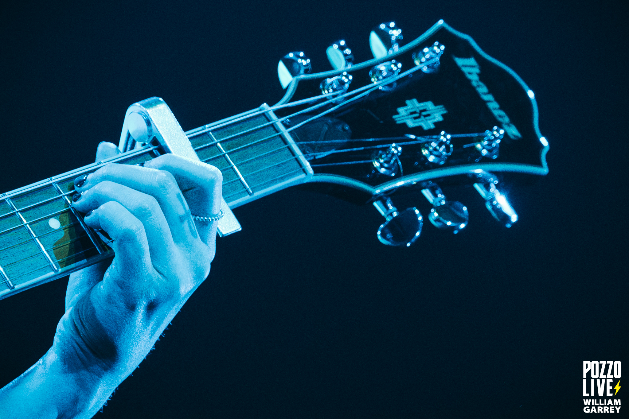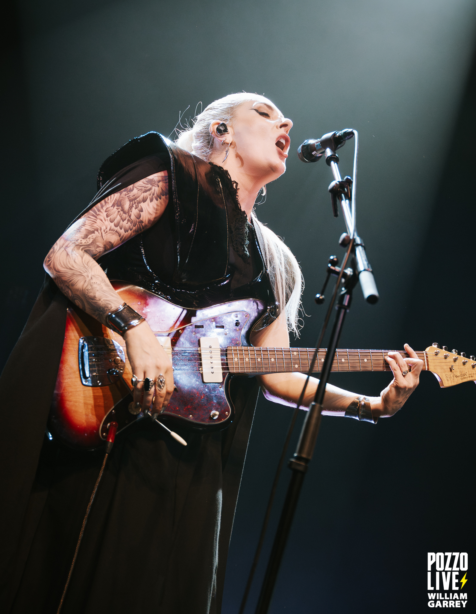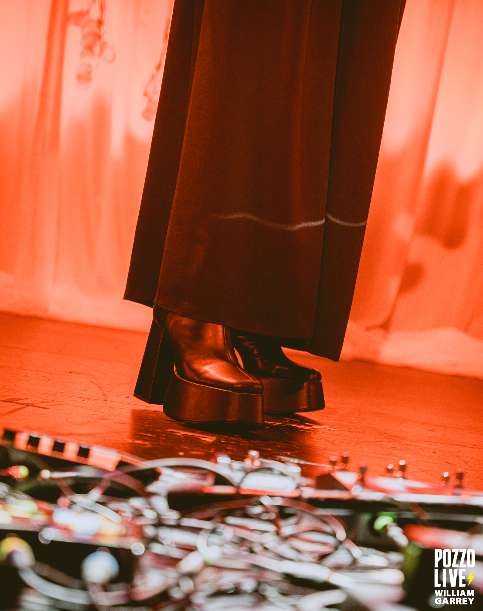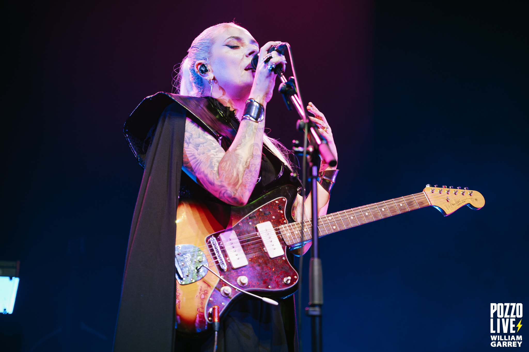 Eivør Pálsdóttir prend la suite d’une main de maître avec son puissant charisme, que ce soit dans son superbe manteau aux textures complexes, ou avec une guitare à la main. Accompagnée de musiciens talentueux, elle a transporté un public acquis à sa cause au travers de titres qui explorent majoritairement Enn, dernier opus du groupe. Si ce dernier a constitué l’exacte moitié des morceaux joués ce soir, le reste explore l’ensemble de la discographie du groupe, comme un chemin dans l’histoire qui entremêle les souvenirs et les projets.