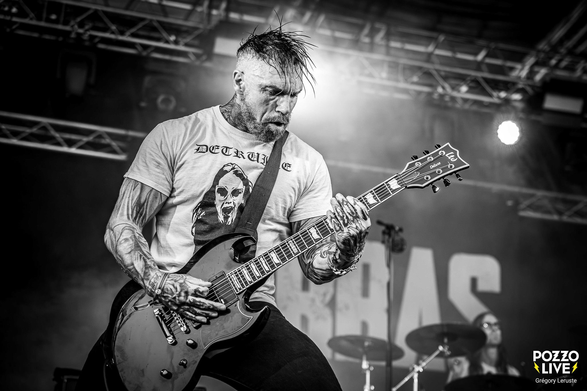 Le début de soirée a pris une tournure plus sombre avec le death/grindcore de Karras, qui a livré un set massif et sans concession. Ensuite, Guilt Trip et Paleface Swiss ont enfoncé le clou avec des shows d’une brutalité implacable. Leur passage a fait trembler le site de Cercoux et a parfaitement préparé le terrain pour l’apothéose.