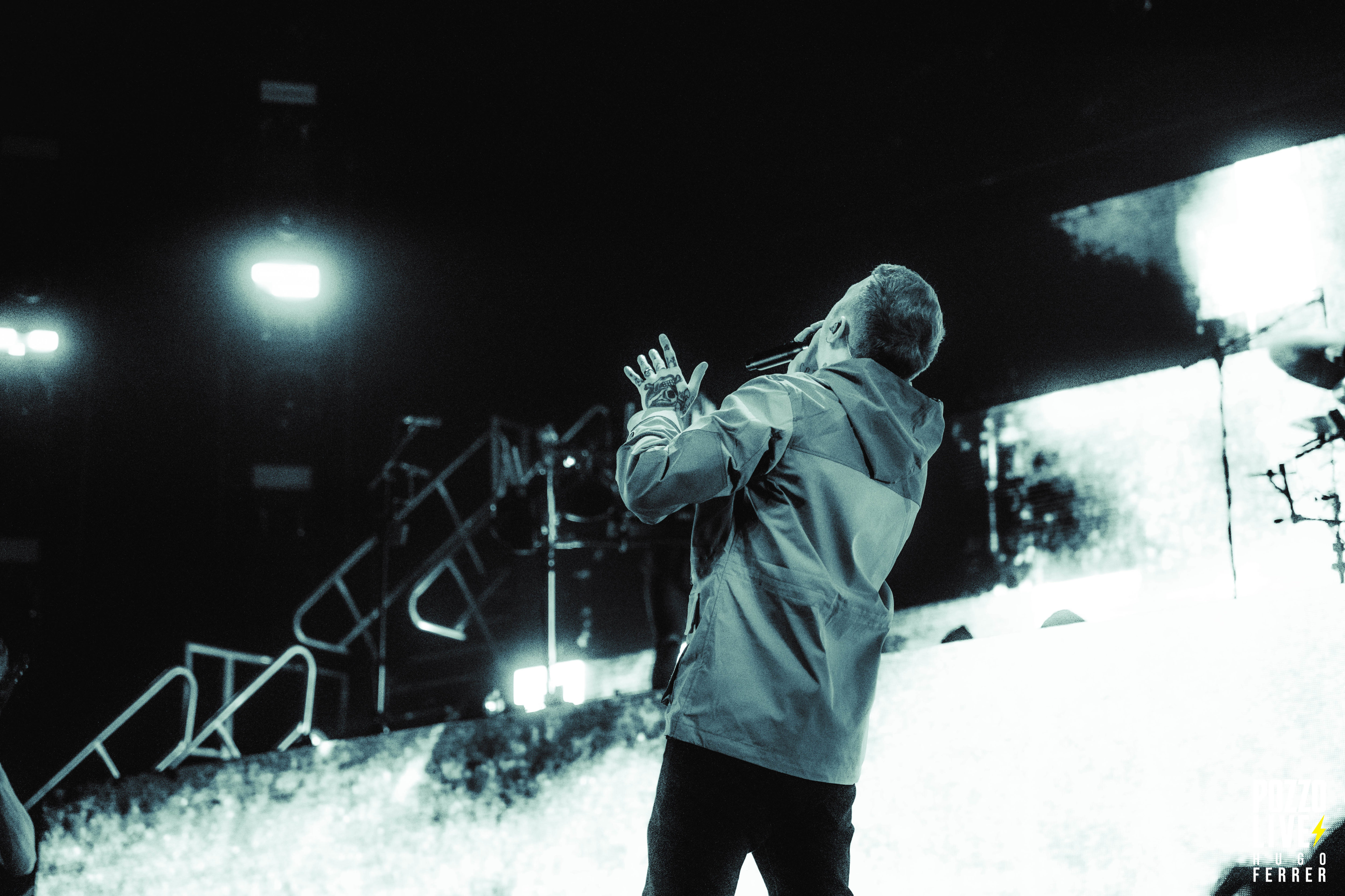 L’énergie est un peu retombé pour certains dans le public mais le jump général sur Meteor vient raviver la flamme dès l’introduction. Sam remercie Sea Shepherd pour sa confiance et sa présence sur la tournée. Alors que peu de titre (les meilleurs) du dernier album the classic symptoms of a broken spirit seront jouées ce soir avec deep fake et a new moral low ground. C’est sur when we were young que le public aura l’occasion de faire un circle pit géant en plein milieu du Zénith orchestrer par Sam Carter.