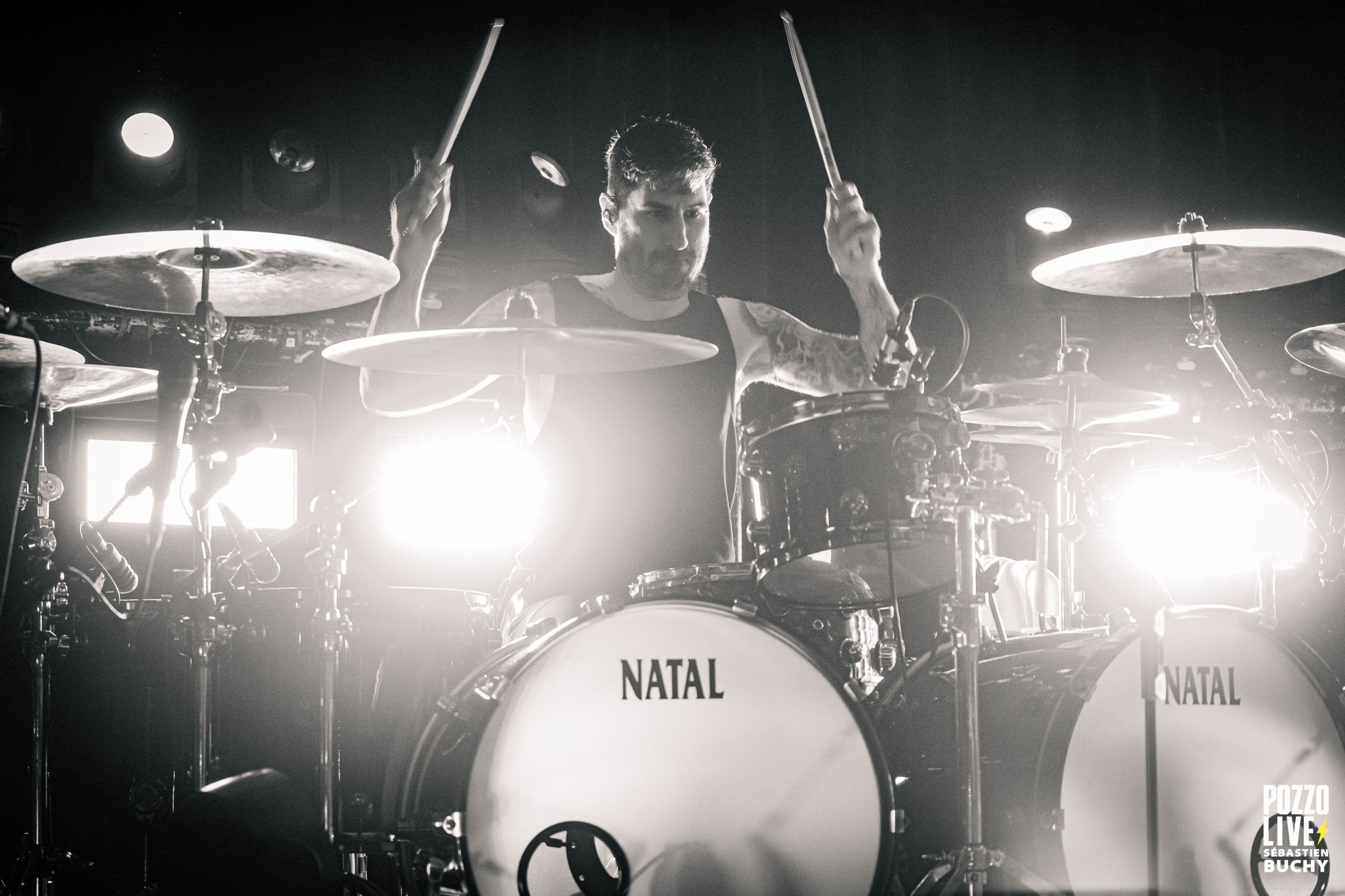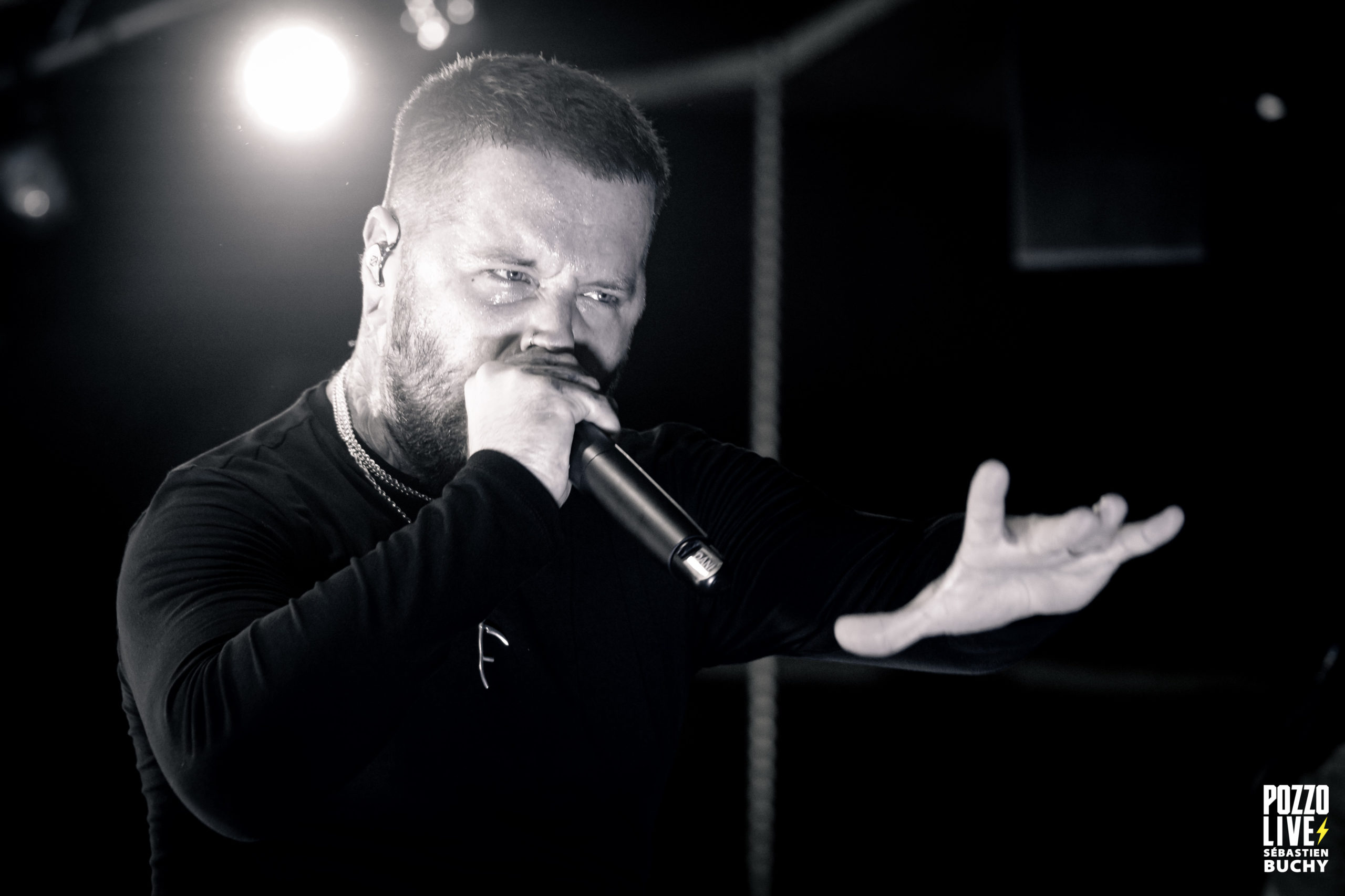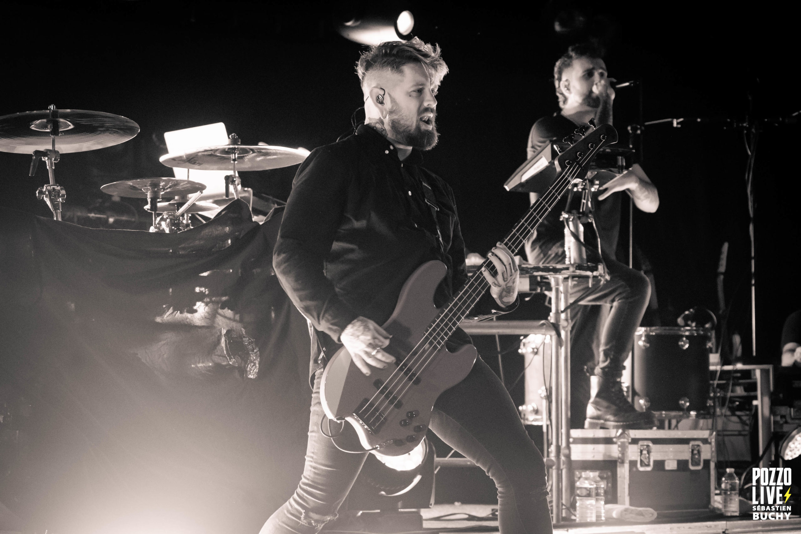 Deuxième partie de soirée, Bury Tomorrow entre sur scène, après une intro de quelques secondes, sur les premières notes de l’un de leur meilleur titre : Choke ! Ils savent comment faire monter l’ambiance avec quelques notes, c’est déjà l’euphorie dans le pit et tout le monde reprend le refrain. Jason salue le public et lance The Grey, troisième titre de leur album Cannibal sorti en 2020. Entre chant clair et passage heavy, les titres ne laissent pas les fans indifférent en poursuivant avec Black Frame.