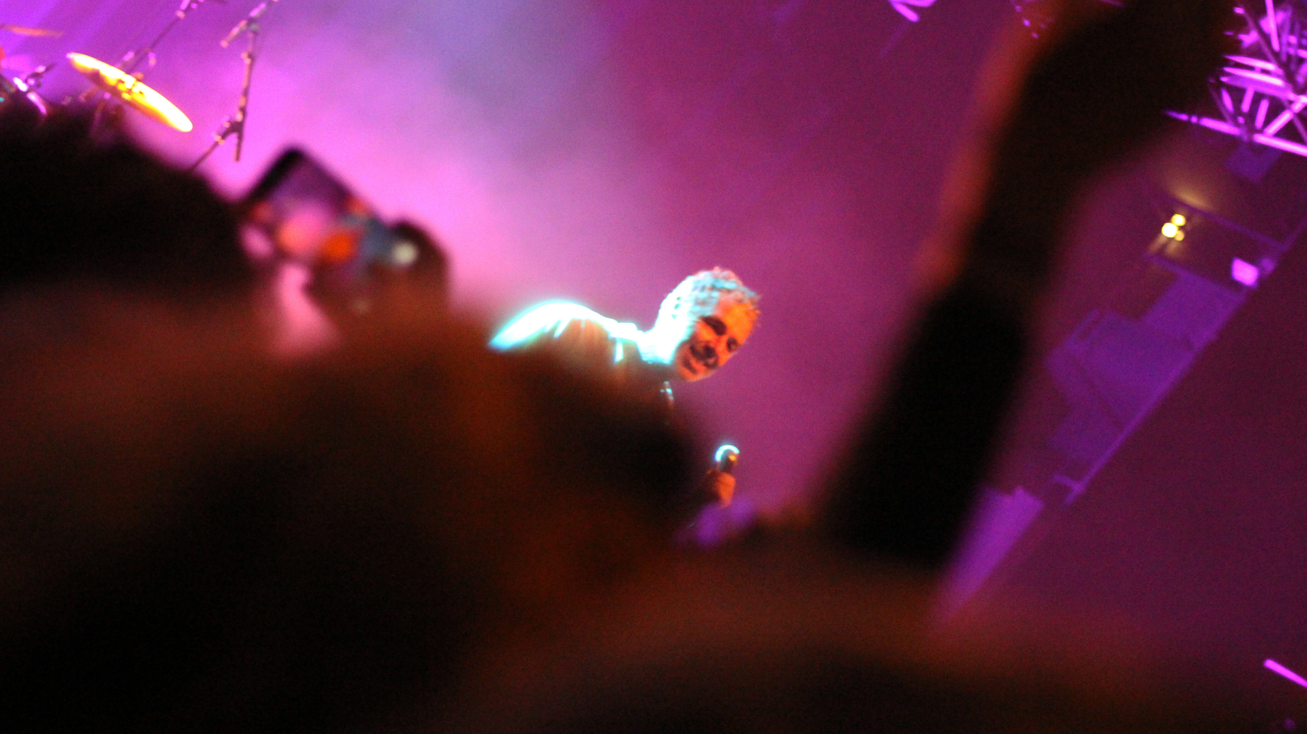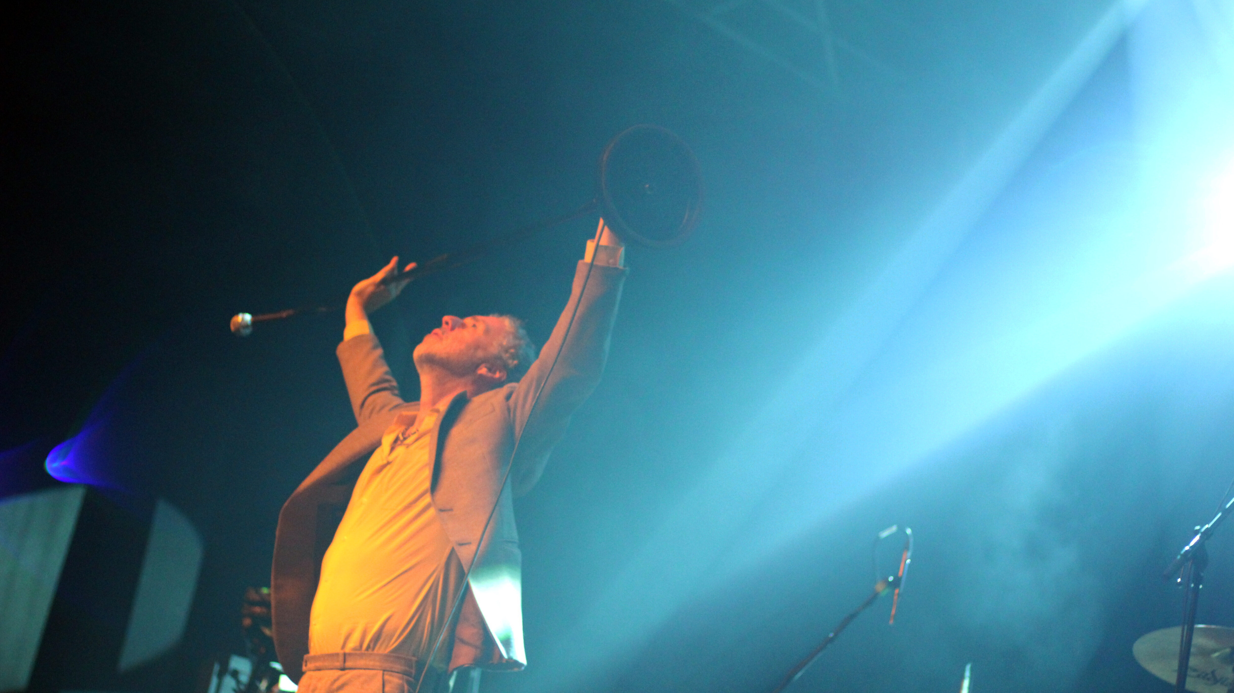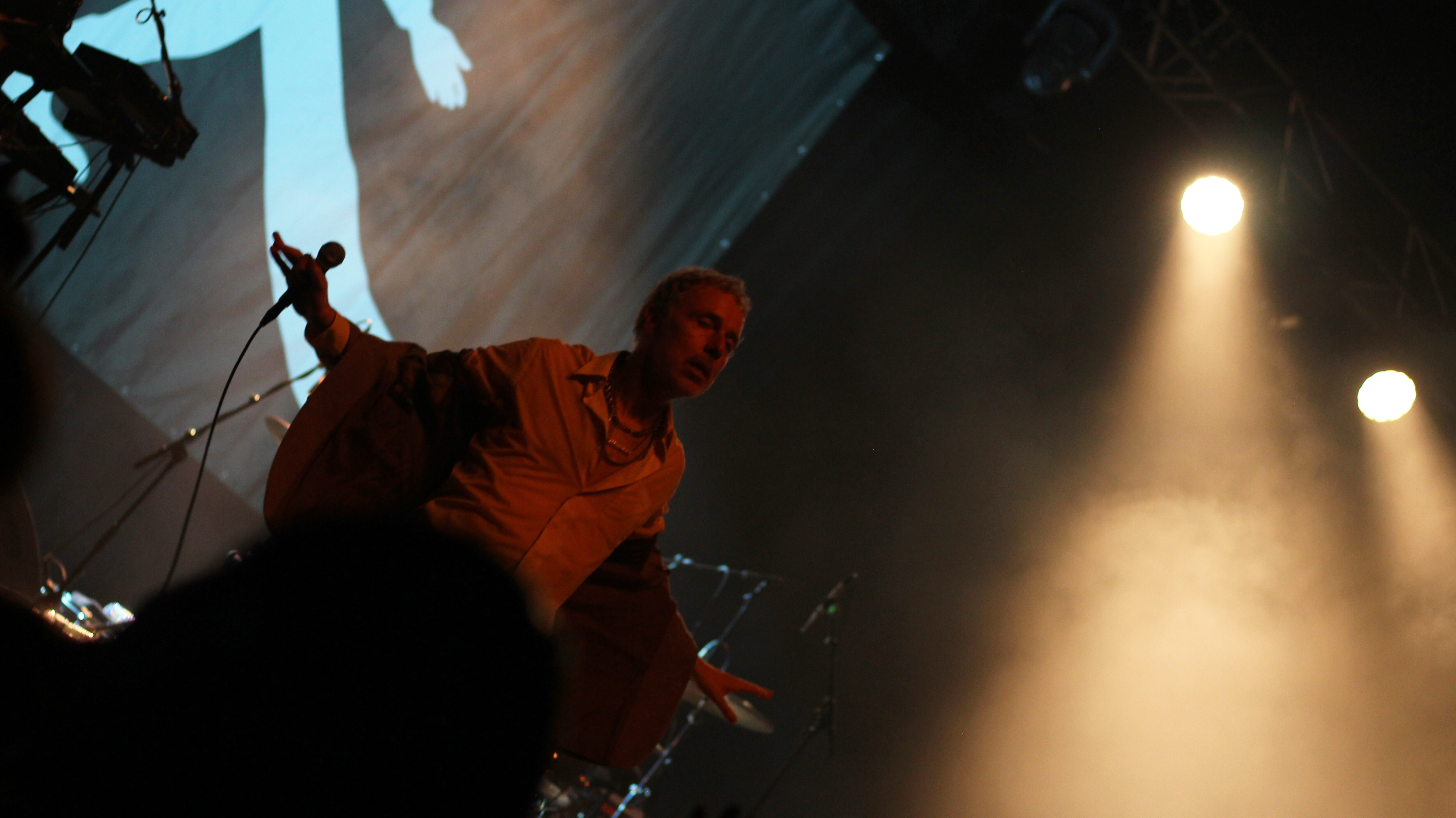 Laissant place aux musiciens et musiciennes, la figure du dandy anglais plane déjà sur scène. Baxter arrive ensuite triomphalement en se lançant avec malice sur Alpha Dog. Par ses gestes assurés, le chanteur impose déjà son style.