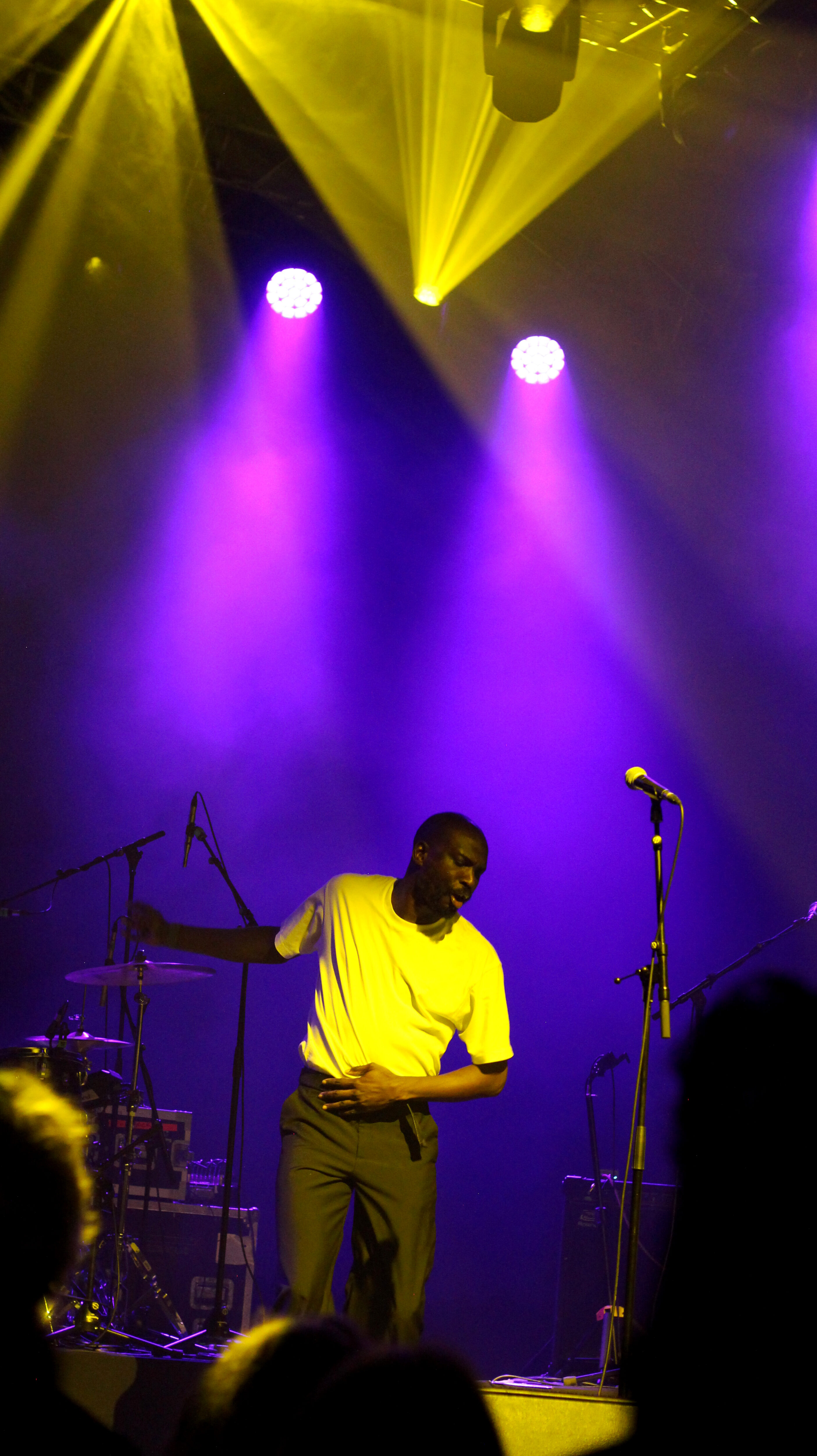 Pour commencer, le merveilleux Joshua Idehen et ses envolées lyriques, poétiques et politiques aux accents de gospel divin. Il nous invita à nous aimer le temps d’un concert où nous sommes devenu toutes et tous ami.e.s. Même lorsque Joshua chante son titre un poil polémique mais non moins précis politiquement, Mum Does the Washing. Un show court mais néanmoins rempli de bonne humeur et d’énergie.