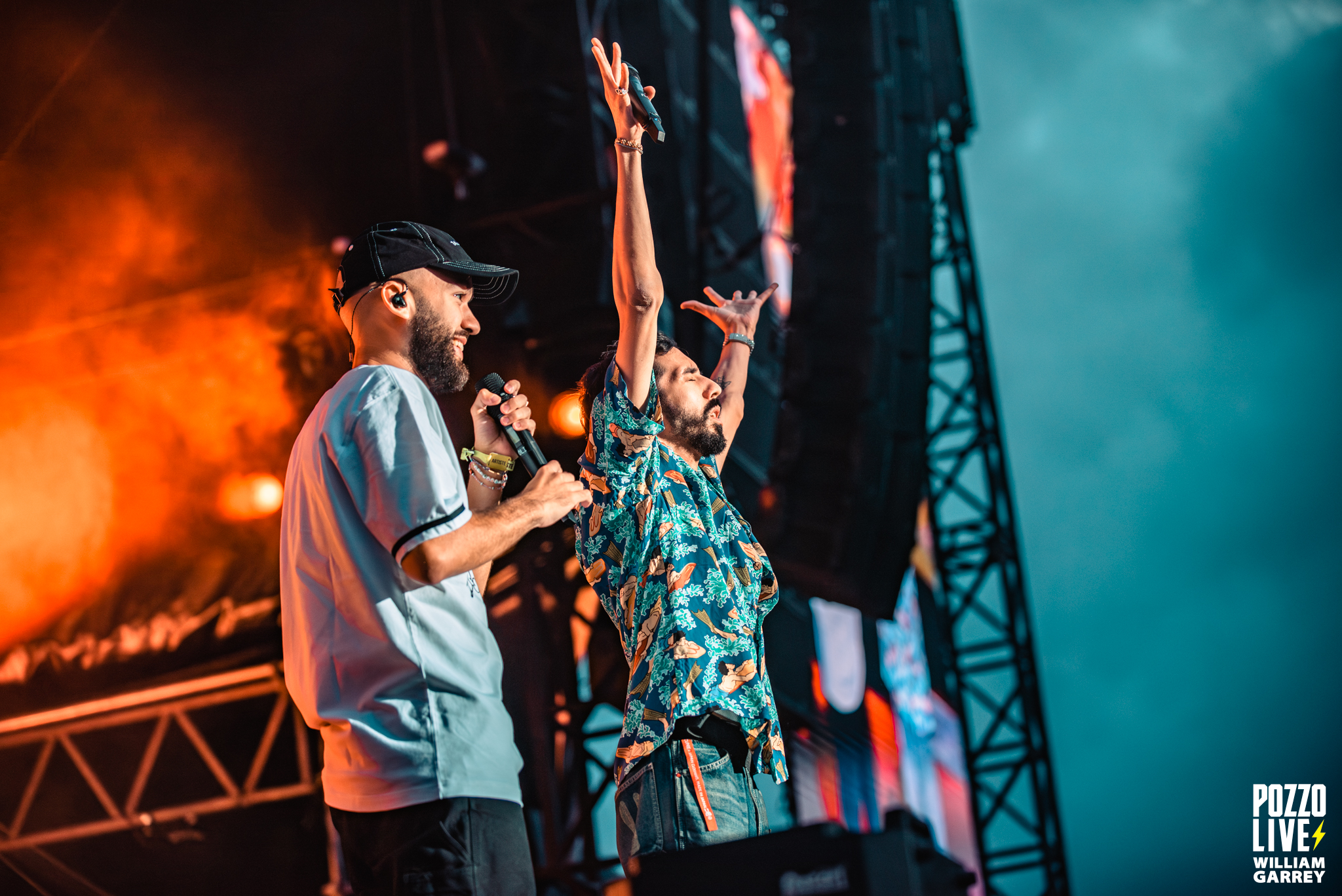 Mais alors que Bigflo & Oli pénètrent sur scène, comme un signe de bonheur, le ciel se découvre, laissant même apparaître un soleil couchant de toute beauté. Le duo toulousain est venu nous présenter « Les autres c’est nous », paru l’an passé, qui a pris la part belle dans la setlist ce soir. En même temps, difficile de passer à côté de titres légendaires comme « La vie d’après », « J’étais pas là », ou encore « Booba » sur lequel s’est déchaînée la pyrotechnie, ou « Dernière », devenu un incontournable sur scène, qui a clôturé cette merveilleuse soirée.