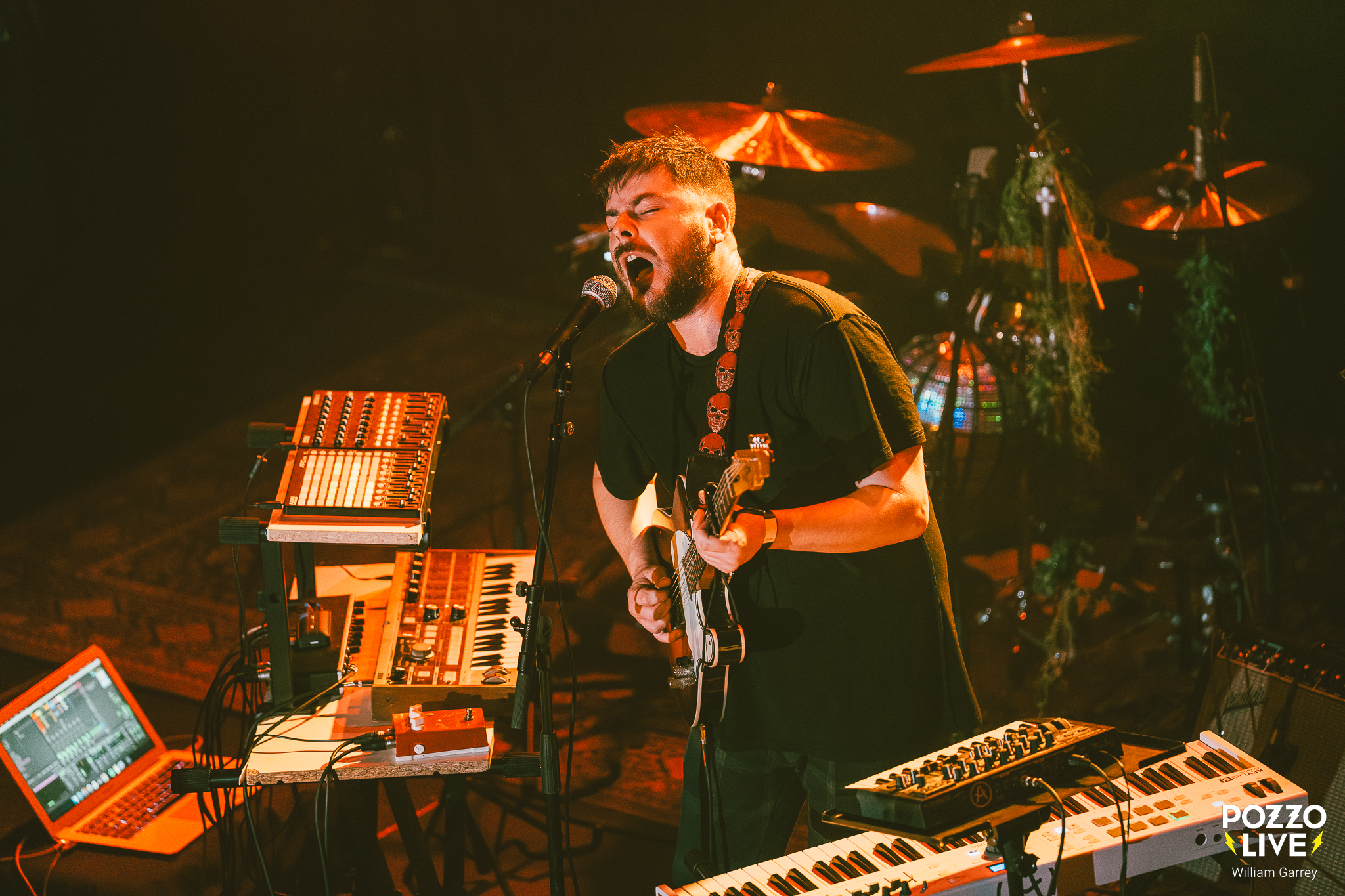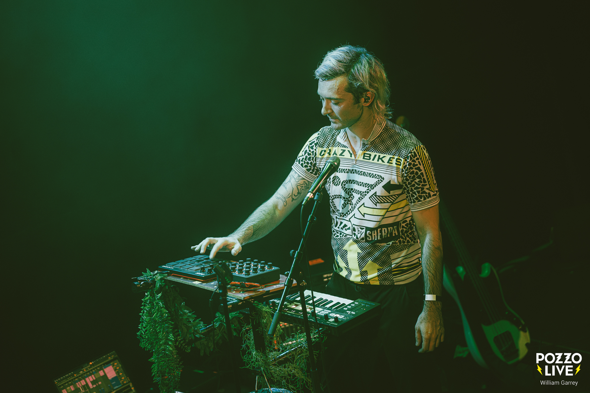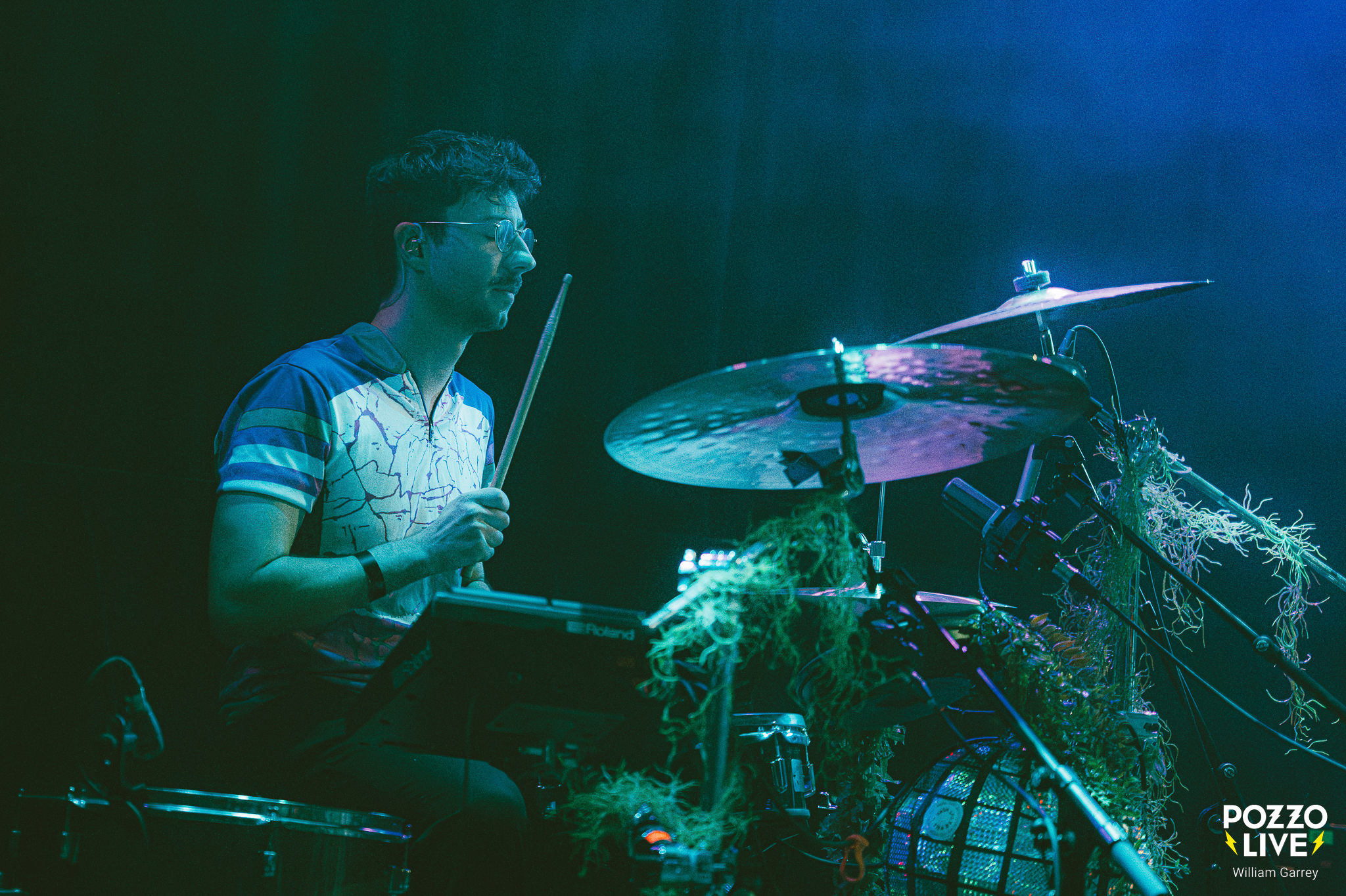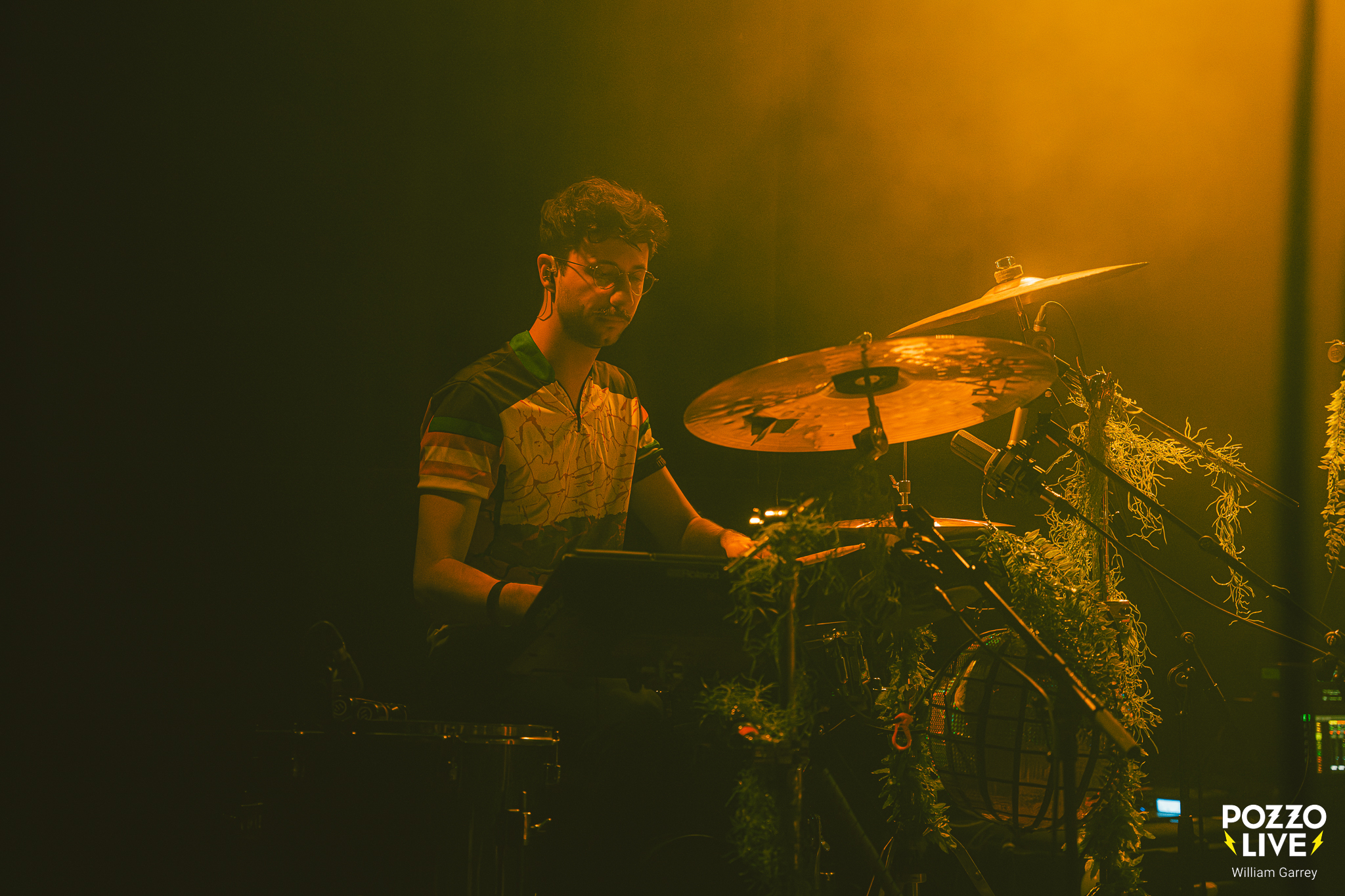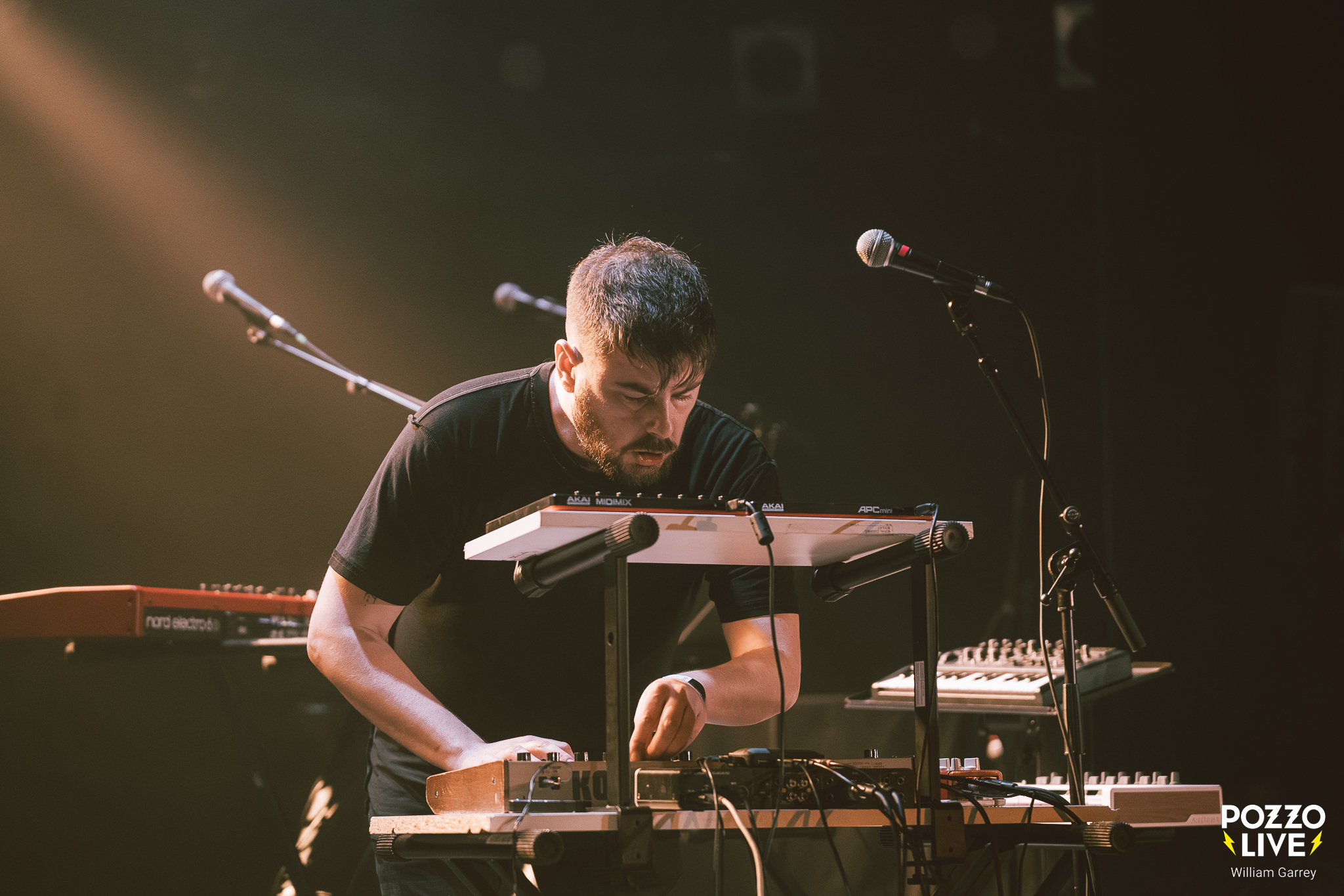 Sa musique est une forme expérimentale d’électronique où la voix, qu’il pose sur ses instrus, sert davantage à enrichir l’instrumentation qu’à apporter une réelle plus-value lyrique. Et si ouvrir une soirée est déjà un défi en soi, le faire seul ajoute un poids supplémentaire… qui ne semble en aucun cas peser sur les épaules d’Alien Tears. C’est propre, maîtrisé, exécuté avec précision. Bien que sa présence scénique soit limitée par sa position derrière les claviers, le musicien emplit la salle de son aura, offrant une ouverture parfaitement adaptée.