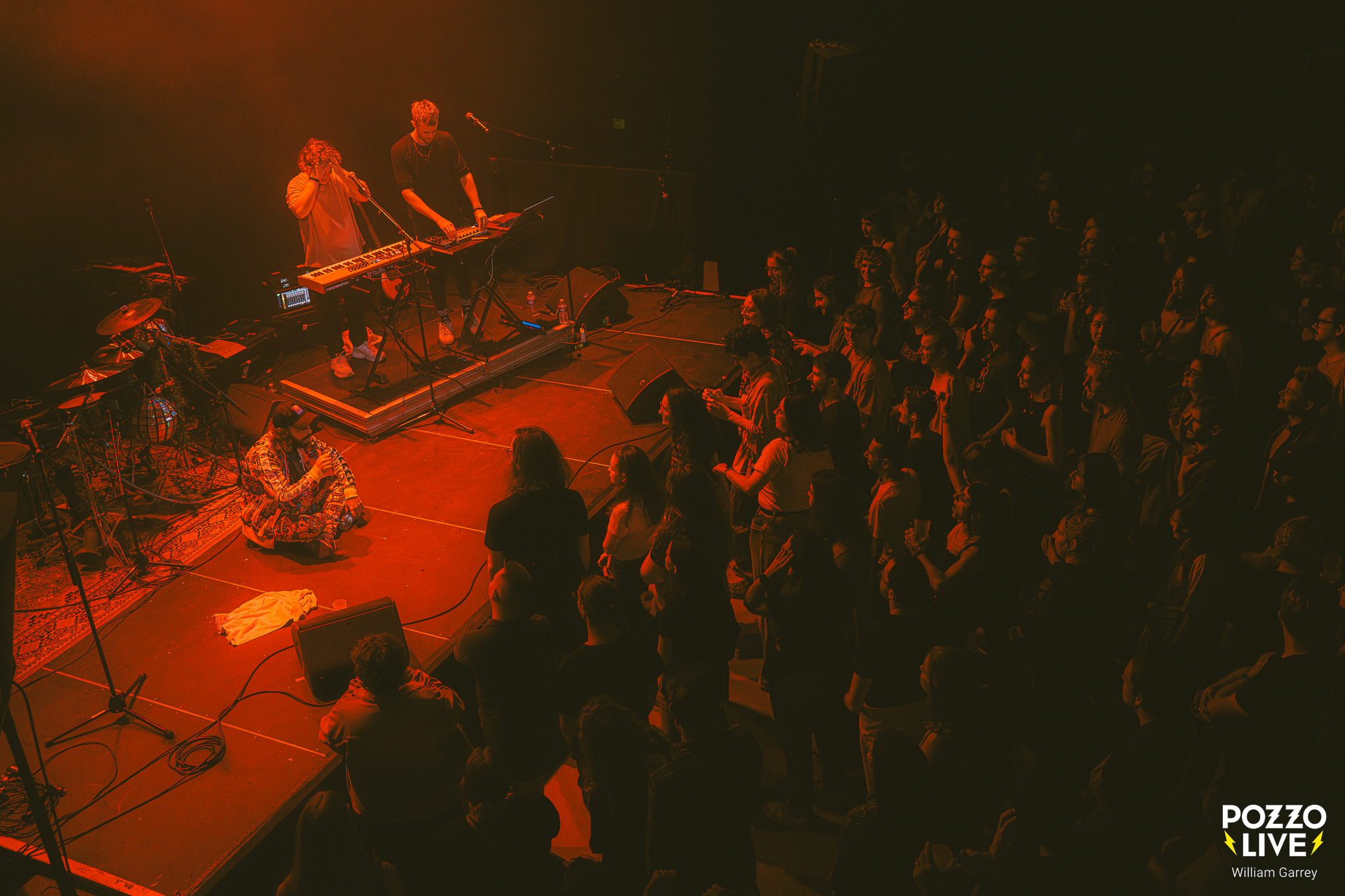 Une quasi listening party donc, sauf que l’énergie dégagée ce soir serait bien difficile à reproduire dans votre salon. Ce n’est pas le premier rodage du quintette, qui développe une connexion mutuelle sincère sur scène, au fil de leurs nombreuses interactions. L’unité formée sur scène se reflète jusque dans le public, déjà conquis, qui déploie toute son énergie pour transformer la salle en masse humaine en ébullition.