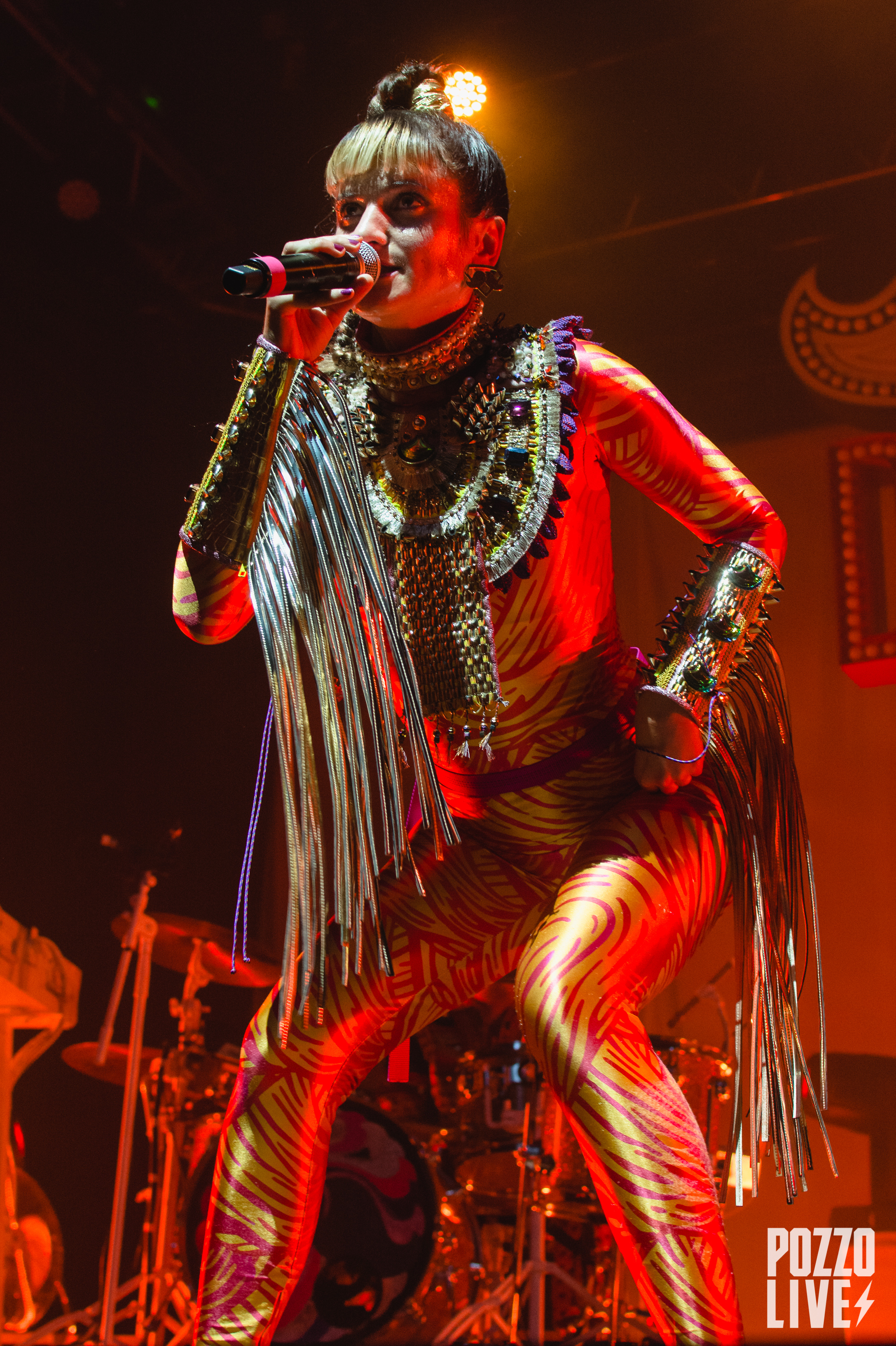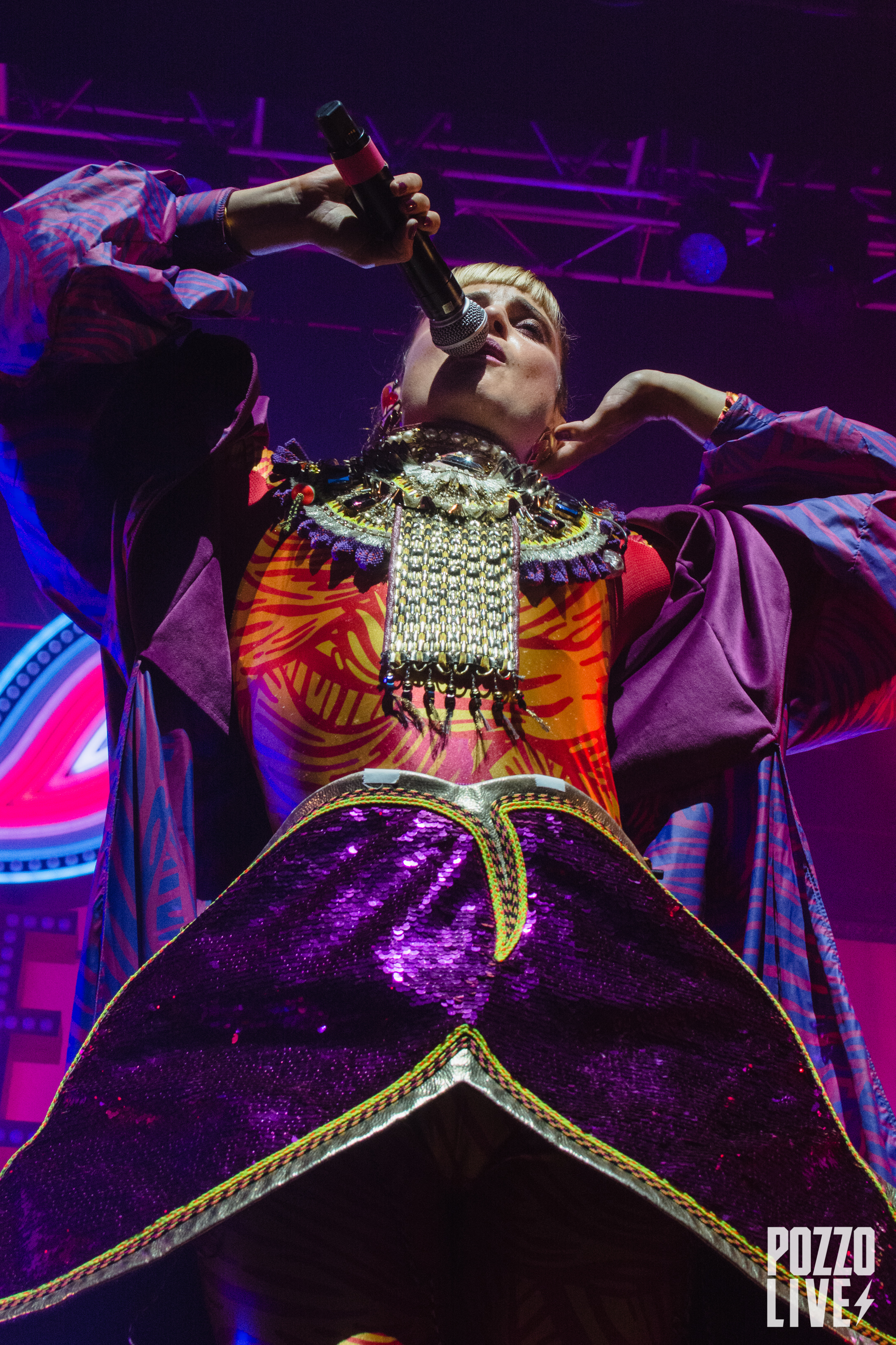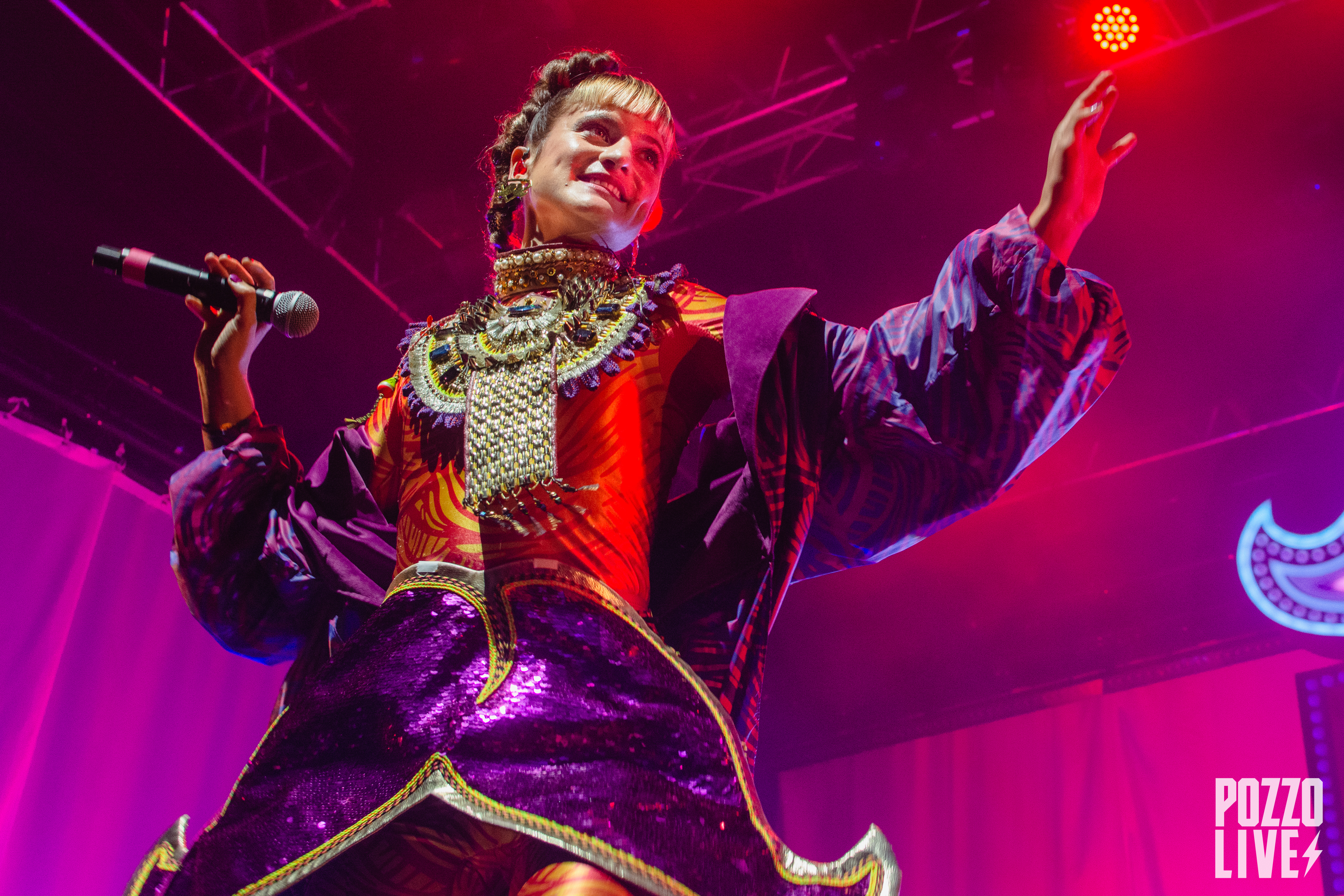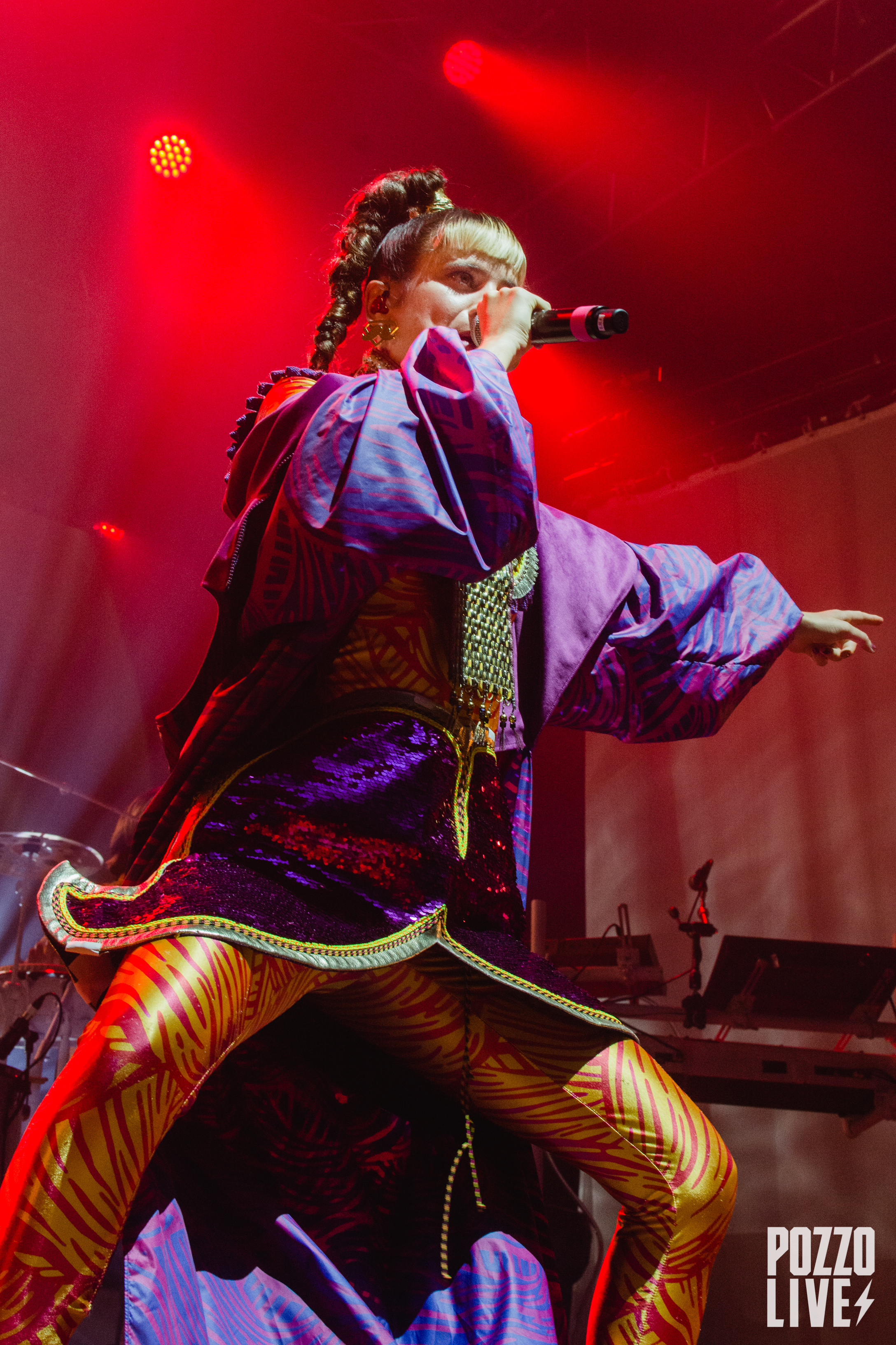 C’est Sôra qui ouvre la soirée en mêlant sa voix envoûtante à des sons électro puissants. Un cocktail qui fonctionne offert par la jeune chanteuse et productrice qui lance parfaitement cette soirée.