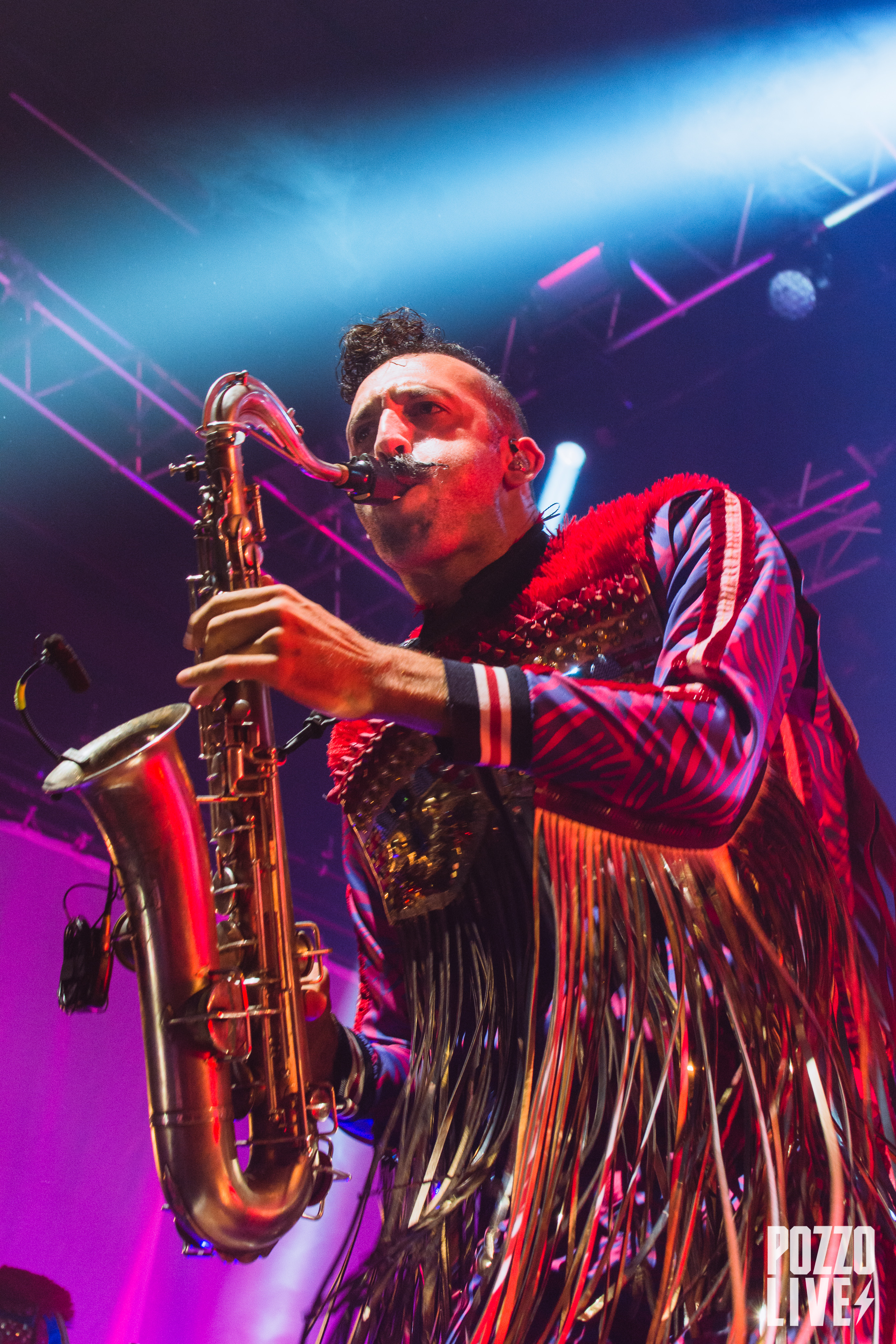 Débordant d’énergie et d’envie, Deluxe met rapidement le feu au public qu’il met à contribution tout au long du concert. Tout d’abord avec un solo magistral de Pepe, le saxophoniste, se « baignant » dans la foule, puis Liliboy fait monter une fan sur scène pour quelques pas de danse. Enfin tout le groupe se retrouve pour une session au milieu de la foule qui s’accroupie sagement, un régal.
