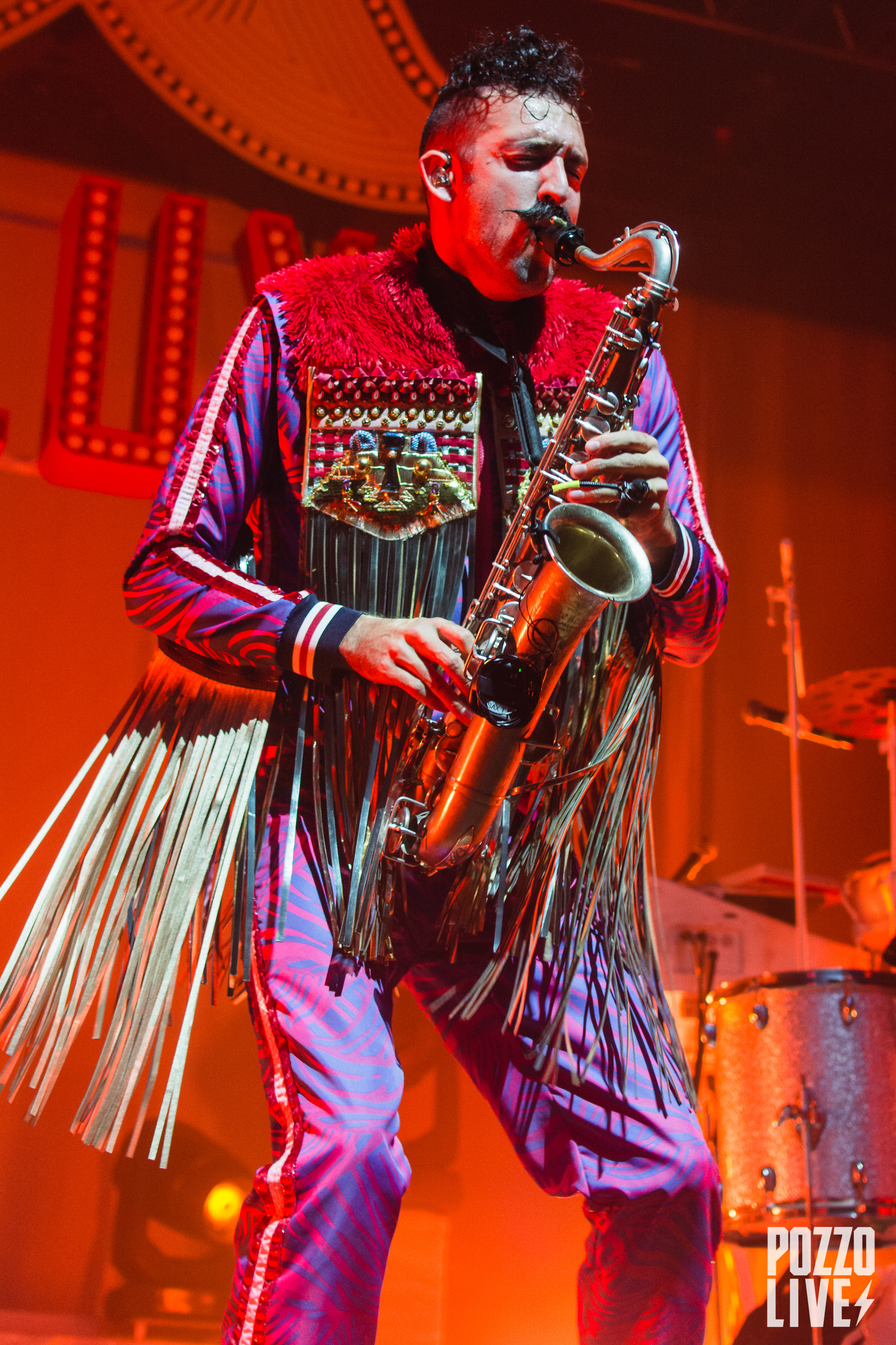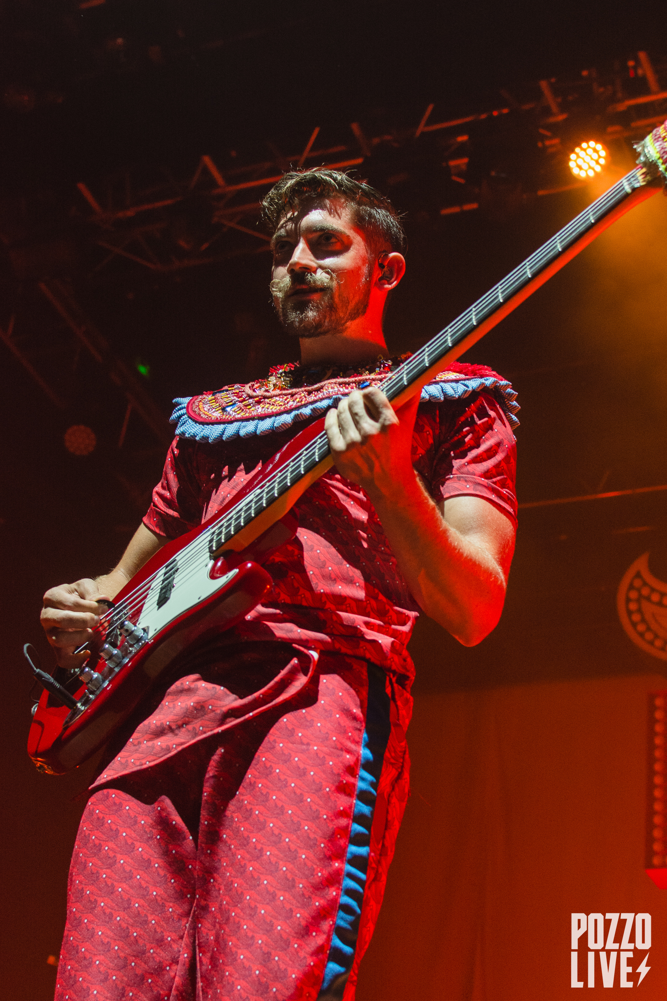 Deluxe rentre alors sur une scène au décor blanc immaculé avec pour seul élément de couleur, la fameuse moustache du groupe constituée de LEDs : magnifique ! Le début du concert se fait principalement sur le fond du dernier album du groupe, Boys & Girls, sorti au printemps 2019. On enchaîne ensuite avec le reste de ses titres. C’est ainsi qu’on retrouve des classiques du groupe comme Shoes, Tall Ground ou Pony, agrémenté d’une partie Dub-Step qui déchaîne la salle. Puis en milieu de set, le groupe nous propose un génial medley reprenant des morceaux moins joués par le groupe, issus du premier EP et du premier album.