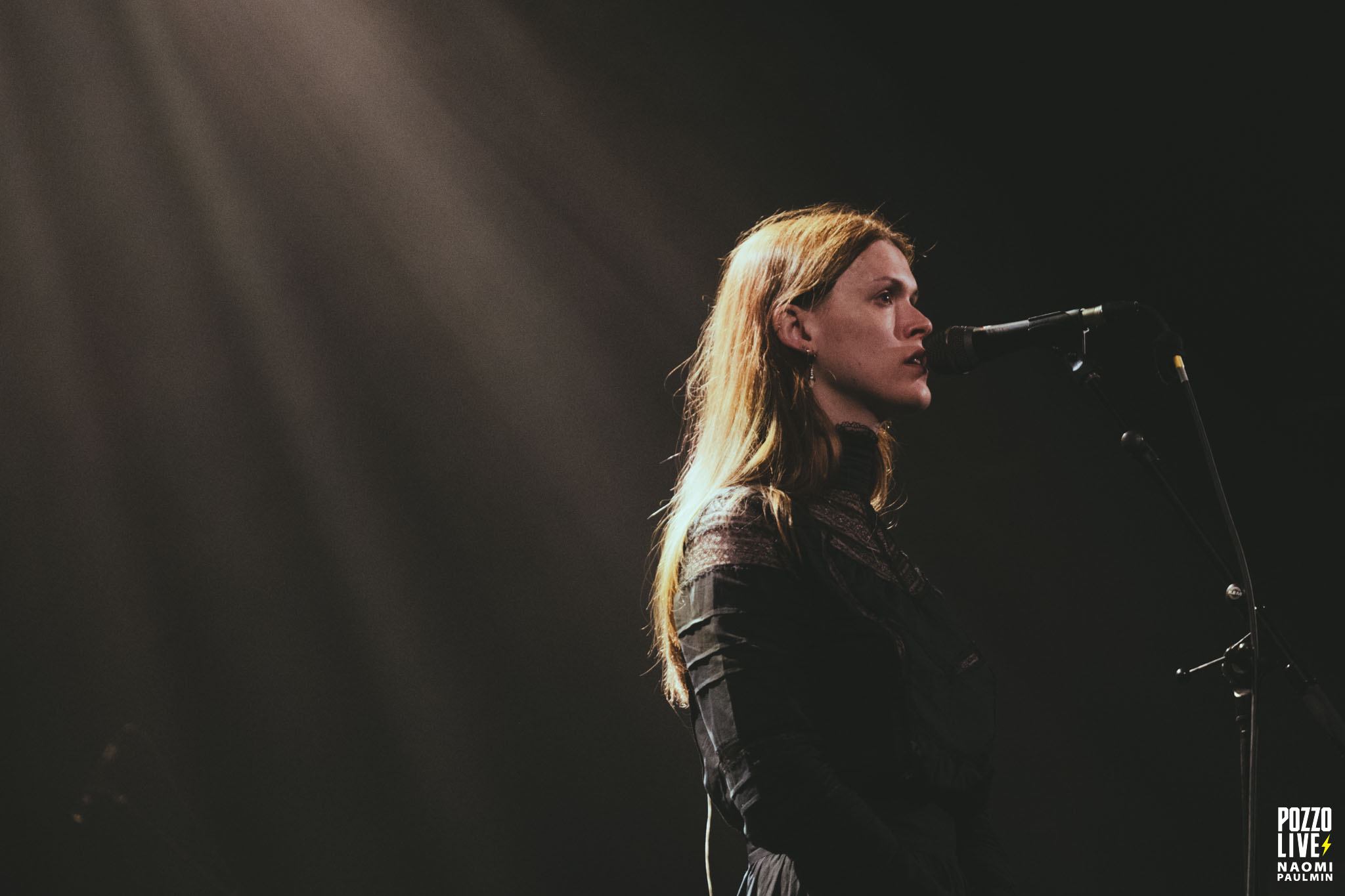 Dès qu’Ethel Cain a mis un pied sur scène du Trianon sur les premières notes de « Dust Bowl« , certains fans avaient déjà les larmes aux yeux. Elle porte cette longue robe noire qui correspond si bien à son esthétique mystérieuse et rétro.
