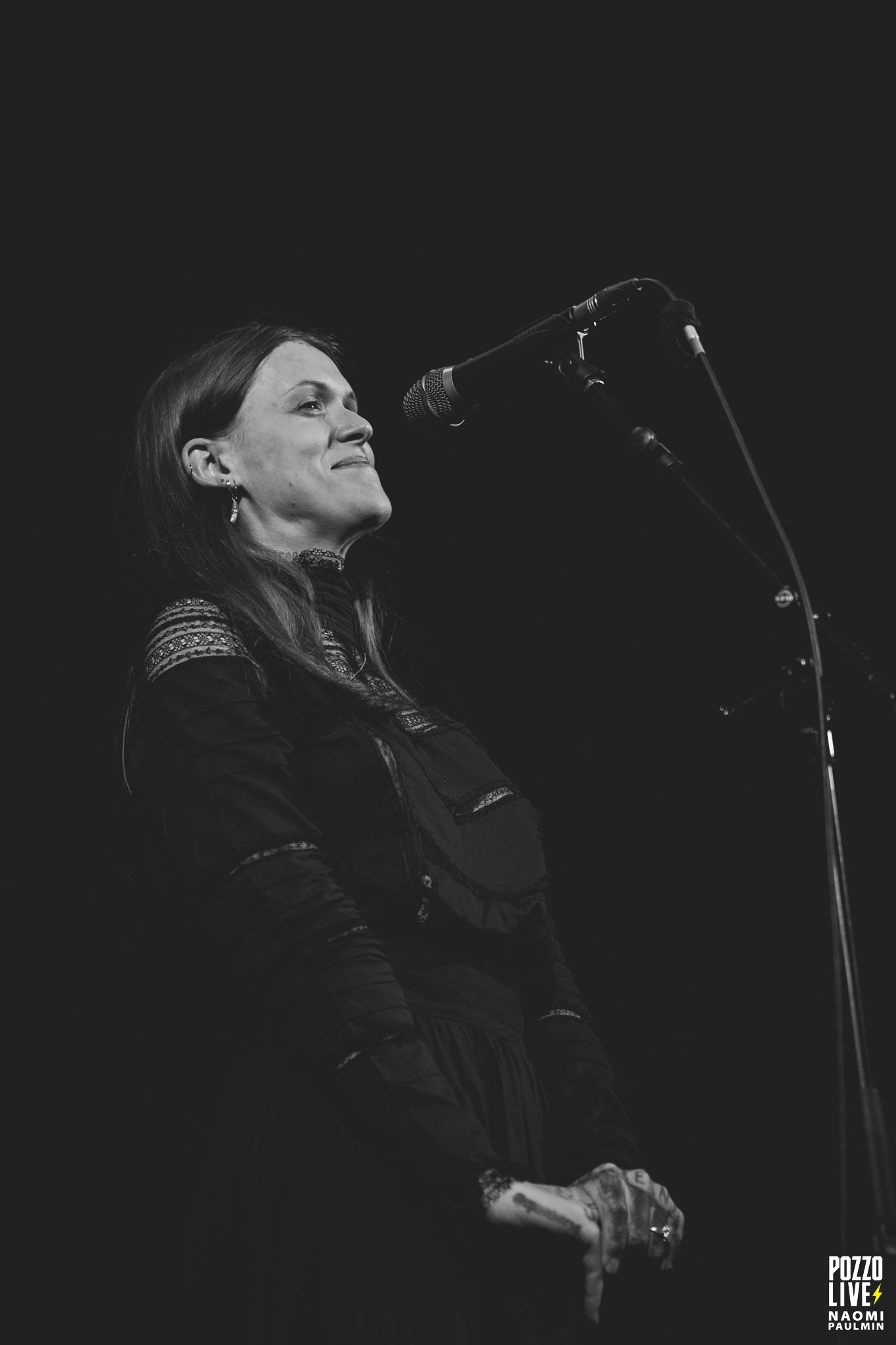 Mais le public en veut plus. Ils commencent à crier, à applaudir et à taper des pieds jusqu’à ce qu’Ethel réapparaisse sur scène. Elle fait son retour avec un nouveau set de vêtements. Sa longue robe noire a été remplacée par un grand t-shirt blanc et un short large, une tenue bien plus confortable pour finir le concert. Elle nous dit même « Que pensez-vous de ma tenue ? C’était ça ou vomir sur vous ».