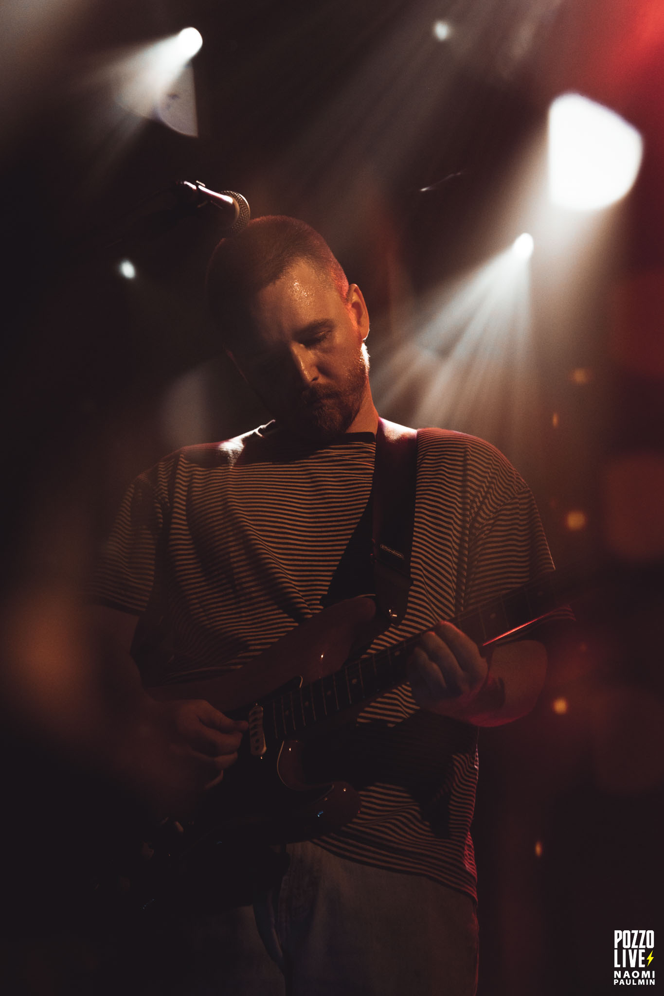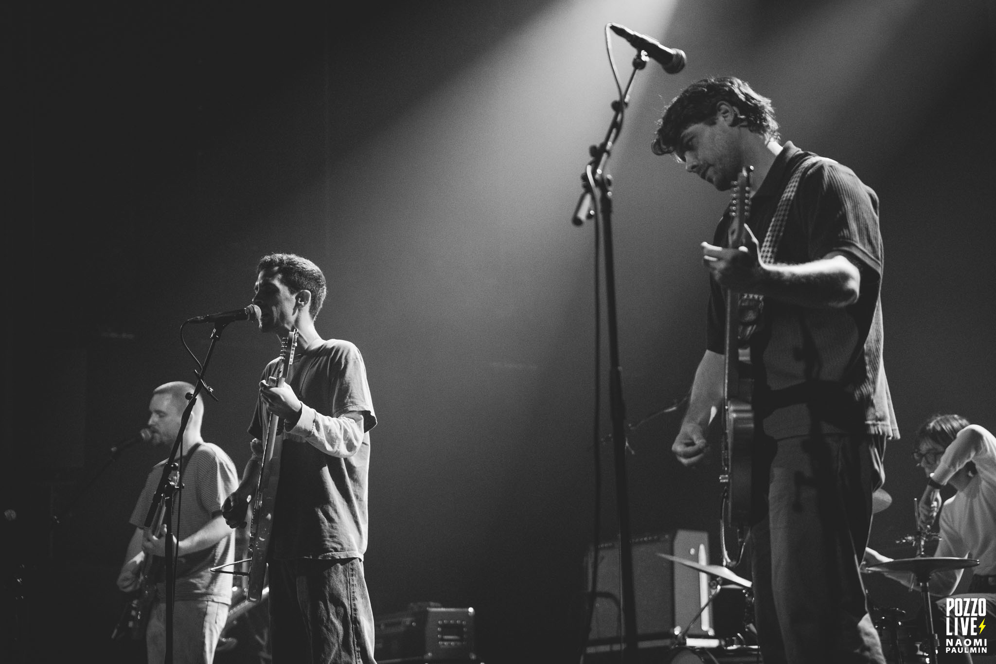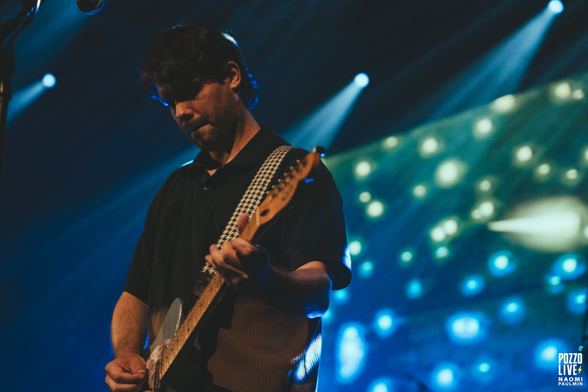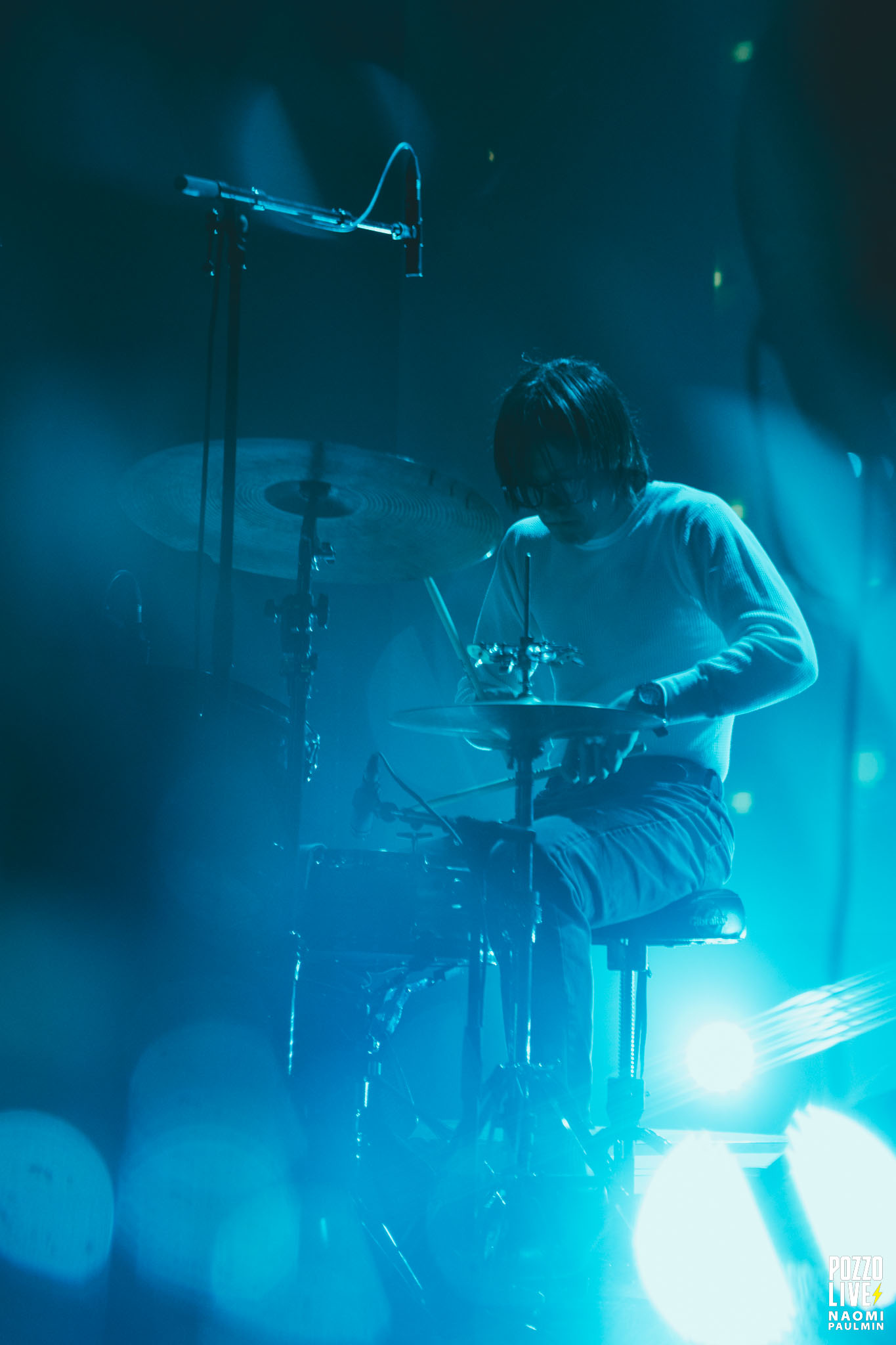 La soirée débute avec le groupe Teethe. Leur set débute par une introduction atmosphérique. Pendant celle-ci, les 5 membres du groupe prennent leur place sur scène, jusqu’à ce que le batteur lance le signal de départ avec ses baguettes. Leur musique, qui peut être caractérisée par une esthétique lo-fi et des chansons lentes et apaisantes, crée une atmosphère apaisante, de quoi commencer la soirée en douceur. Trois des guitaristes/bassistes se relaient au micro, chacun apportant sa propre touche à chaque chanson, ce qui rend chacune d’elles unique.