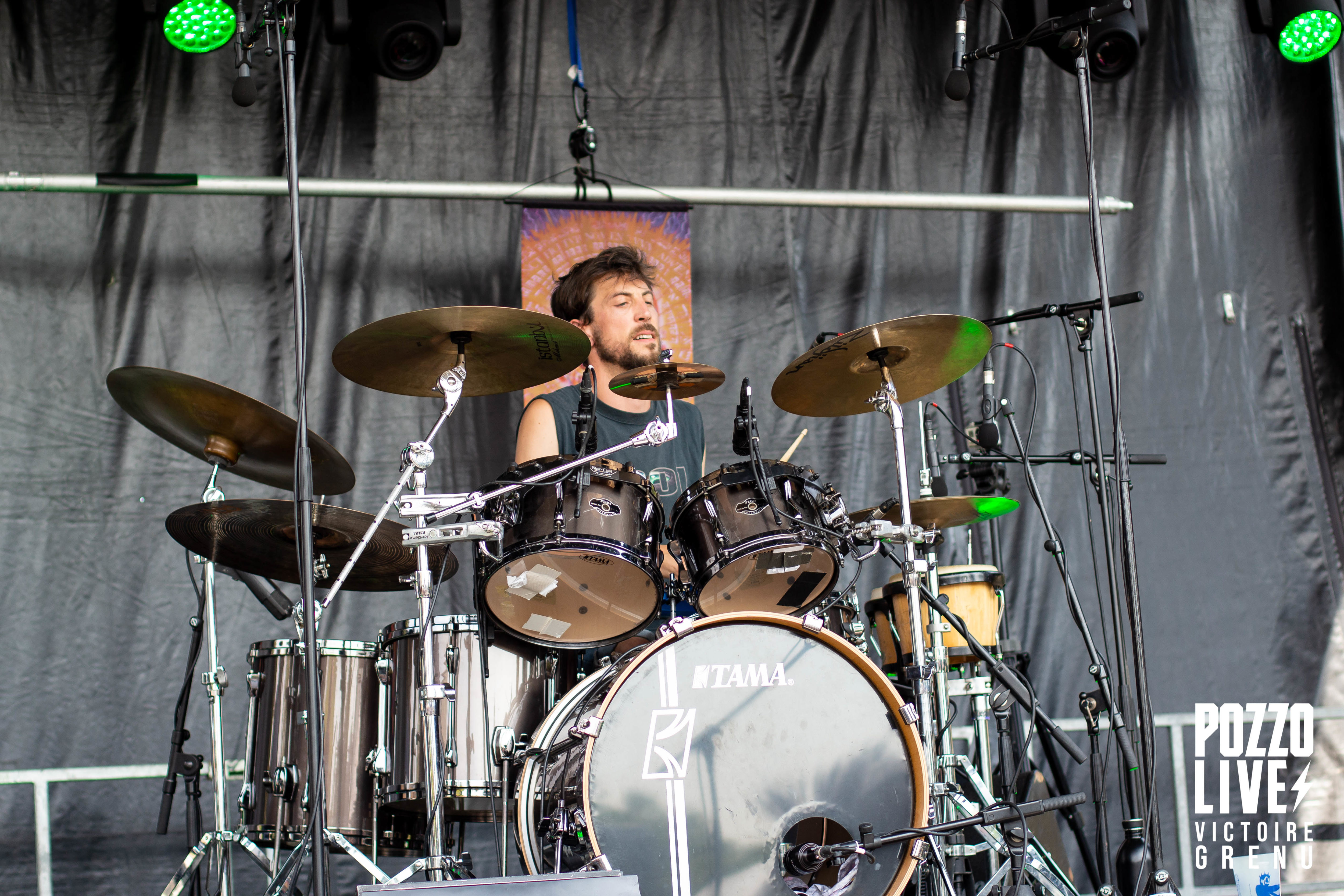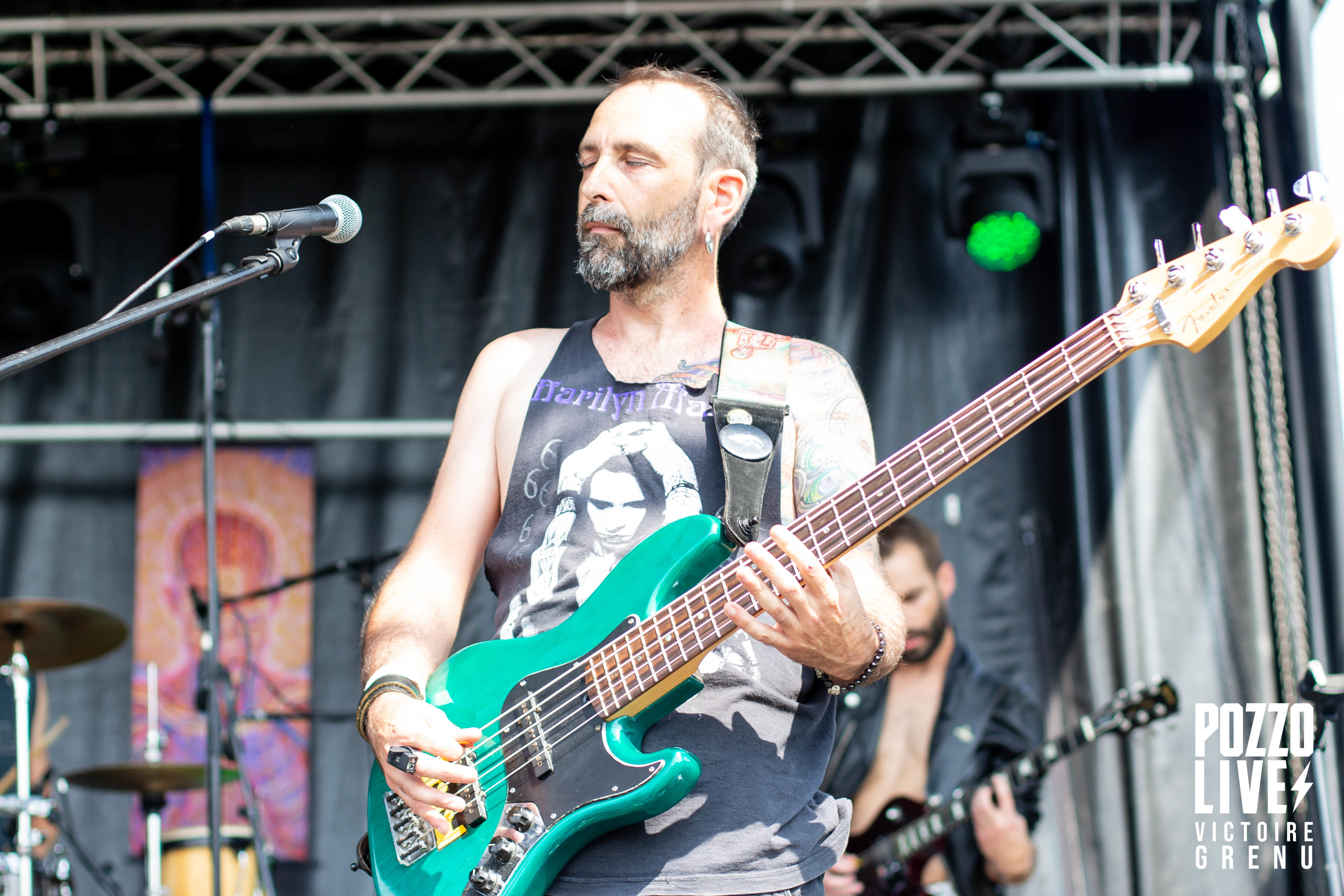 Les concerts commencent sous un soleil de plomb avec le groupe Aenimals, cover band du groupe mythique Tool. Alternant reprises du groupe américain mais aussi compositions originales, le groupe nous transportera dans l’univers si particulier du métal progressif. Ambiance planante à Cercoux !