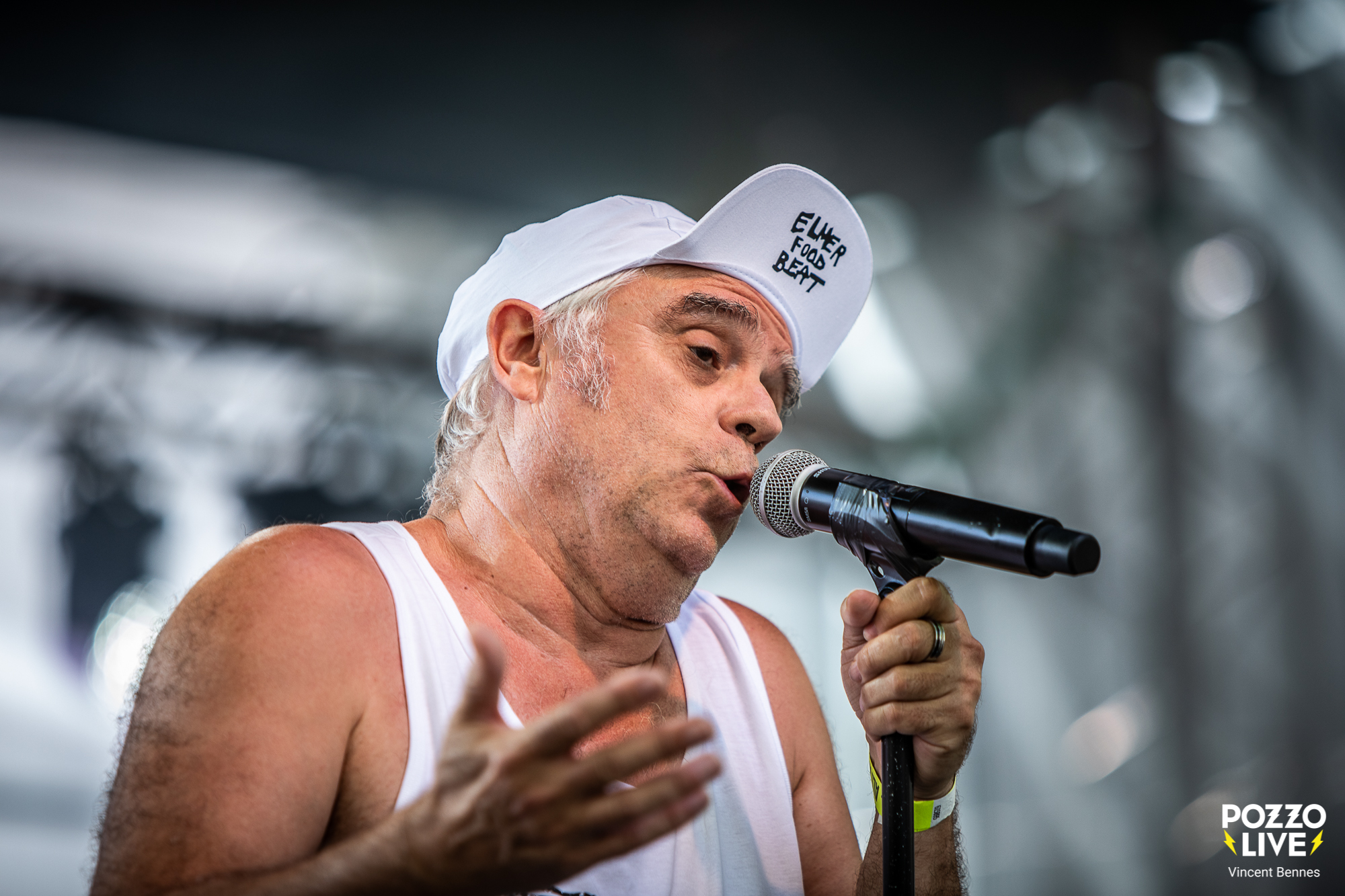 Mais Elmer Food Beat n’est pas juste un groupe qui surfe sur la nostalgie. Ainsi, les musiciens dévoilent de titres récents tirés du dernier album Le Bruit des Potes (sorti en 2023 chez Verycords) qui trouvent eux aussi leur place dans ce joyeux bordel organisé. Ansi, « Tri Sélectif », « J’Rêve la Nuit », « Réchauffement Climatique » et surtout « Bling Bling » passent l’épreuve du live avec brio. Des morceaux certes, un peu plus engagés, mais toujours portés par cette autodérision et cette efficacité scénique inimitable.