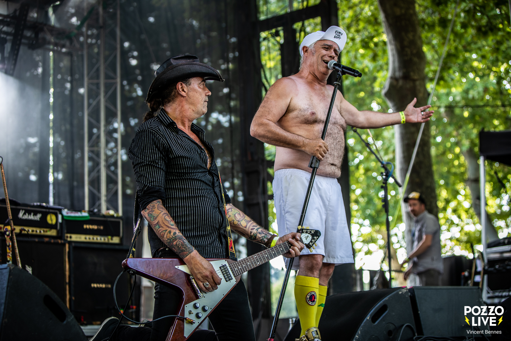 Sur les planches, la complicité du duo est palpable. Laurent et Mathieu fonctionnent comme une machine parfaitement huilée. Chaque regard, chaque geste témoigne d’une alchimie née de longues années de scène qui remontent à l’époque de feu Wolfunkind. Et le moins que l’on puisse dire c’est que cette complicité irradie et entraîne les festivaliers dans un concert vivant et ô combien sincère. Difficile de ne pas être happé par l’univers de ces « rock farmers » tant le duo tisse un lien direct avec le public, rappelant que derrière le show, il y a un mode de vie, enraciné dans la terre autant que dans la musique.