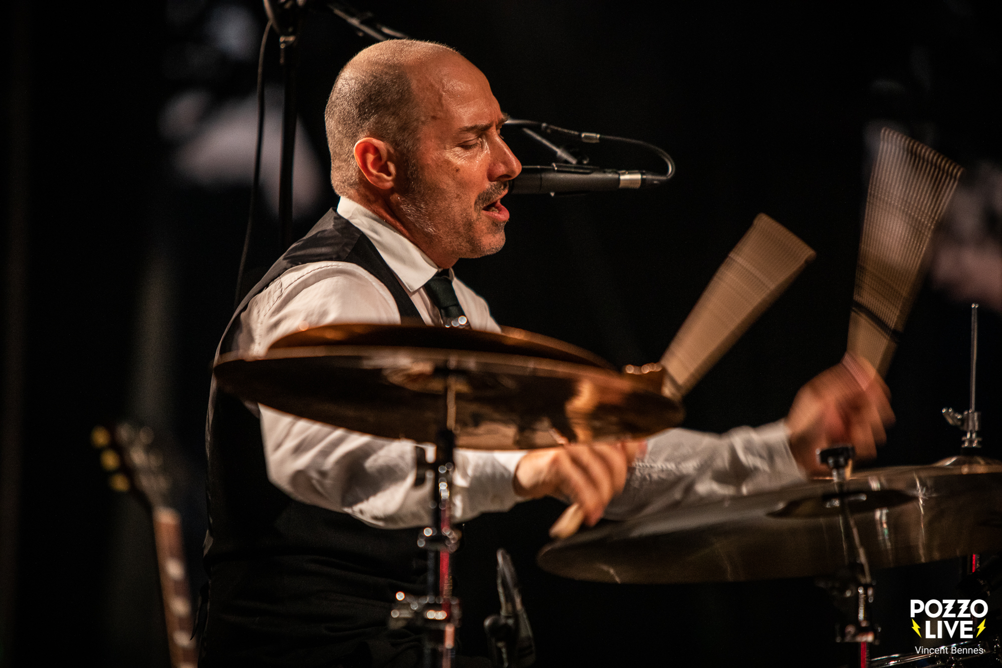 Sur scène, Manou est égal à lui-même : cabotin, charmeur, déchaîné. Il harangue la foule, interpelle les femmes (« Les filles, vous êtes magnifiques ce soir, même toi là-bas »), fait monter une bénévole danser et ponctue chaque intervention de blagues au second, voire troisième degré. Pendant ce temps, ses acolytes assurent un jeu carré, solide, jubilatoire à l’image du guitariste Laurent « Grand Lolo » Lachater, impérial à la six-cordes, qui prend même le chant lead ici et là.