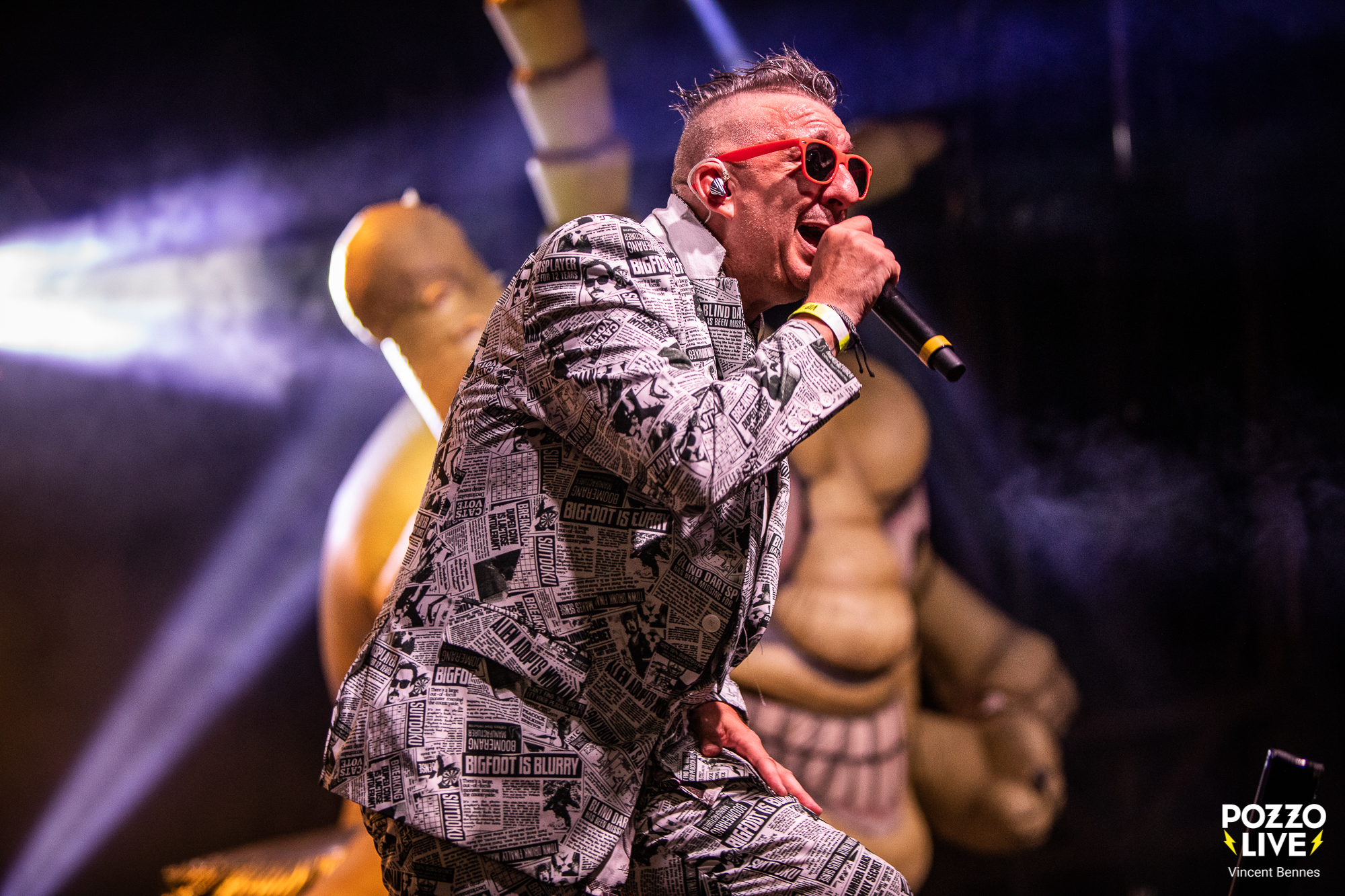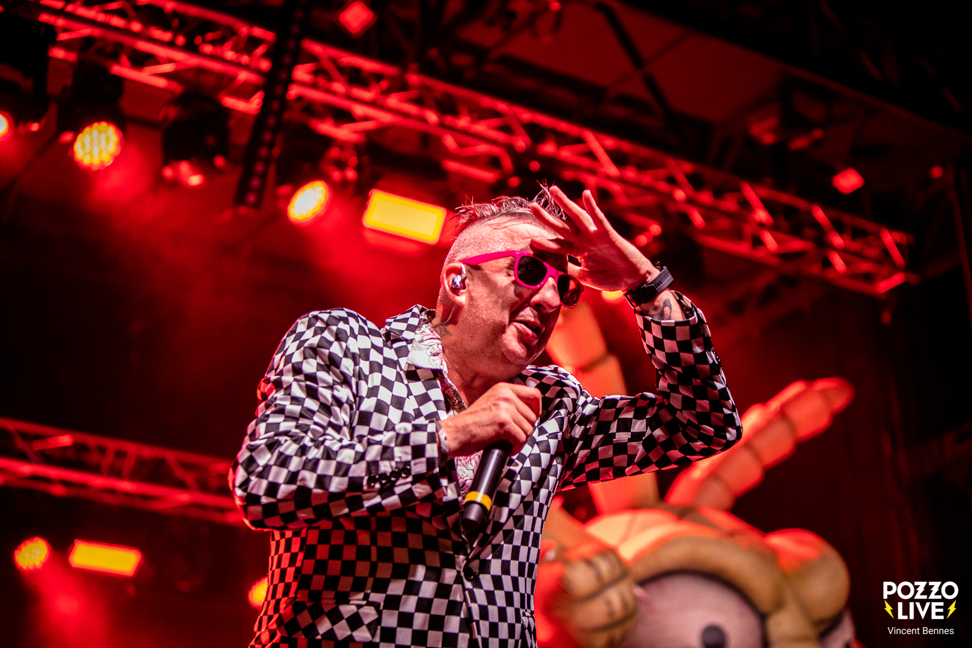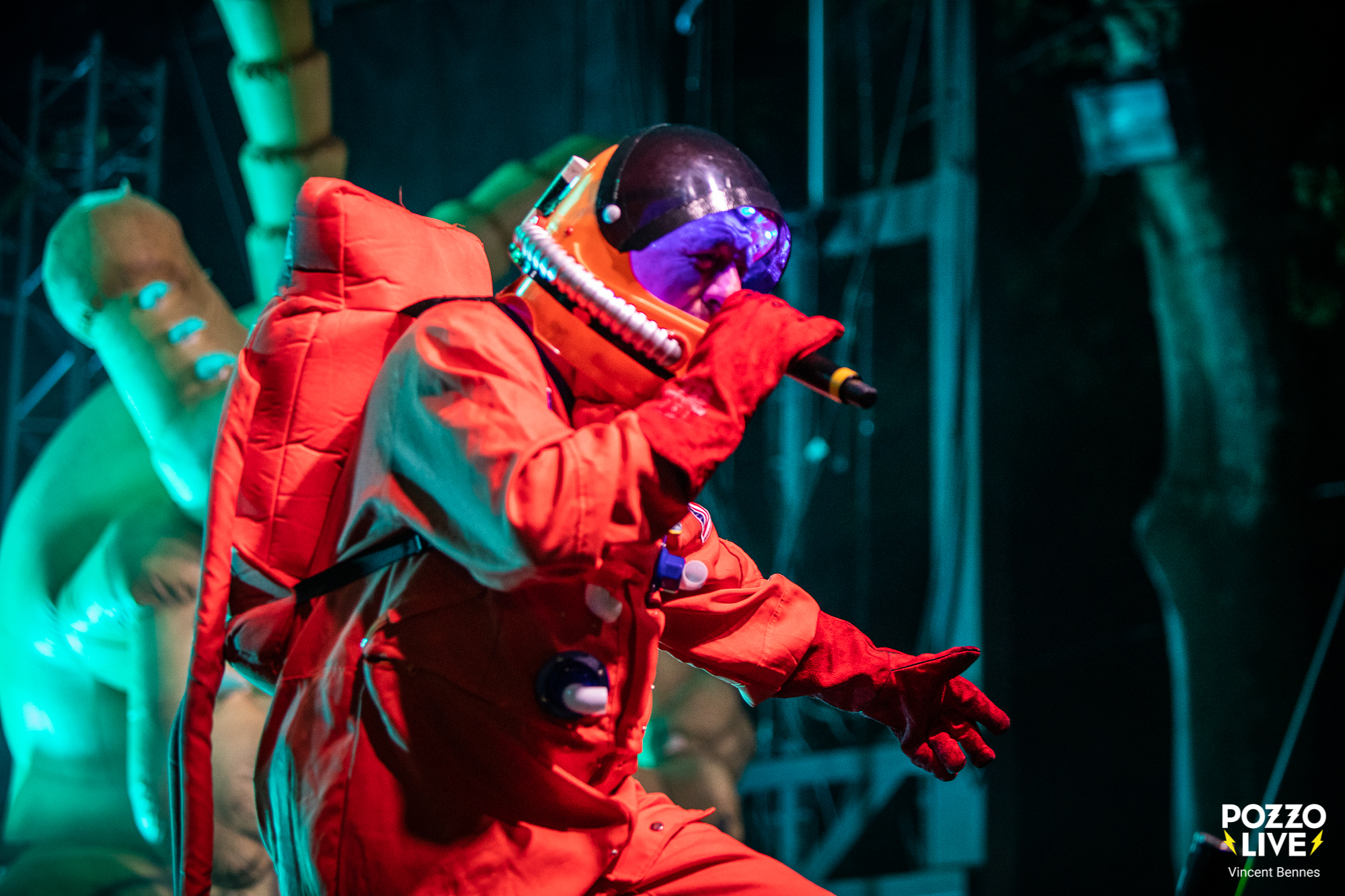 Dès les premières notes de « La Bolsa » qui fleure bon le ska punk à l’ancienne, une chose est certaine : The Locos est un groupe taillé pour le live. À l’image du frontman Pipi, véritable ressort humain, les musiciens occupent bien l’espace et bouge dans tous les sens. En seulement quelques accords, le groupe met en place une bonne dose d’énergie et harangue les festivaliers qui s’apprêtent à lancer leurs dernières forces dans ce set qui s’annonce d’ores et déjà comme festif et complètement déjanté. Ainsi, le chanteur Pipi, se donne à donne à fond sur les planches et se glisse dans de nombreux costumes toujours improbables – en trois pièces façon papier journal, en astronaute sur « Espacio Exterior », en shorts – pour incarner cette énergie scénique inépuisable qui a fait sa renommée depuis plus de 20 ans. On sent que l’homme est heureux d’être là, à la tête de son propre équipage, prêt à faire chavirer Saverdun dans une fiesta aussi revendicative que joyeuse.