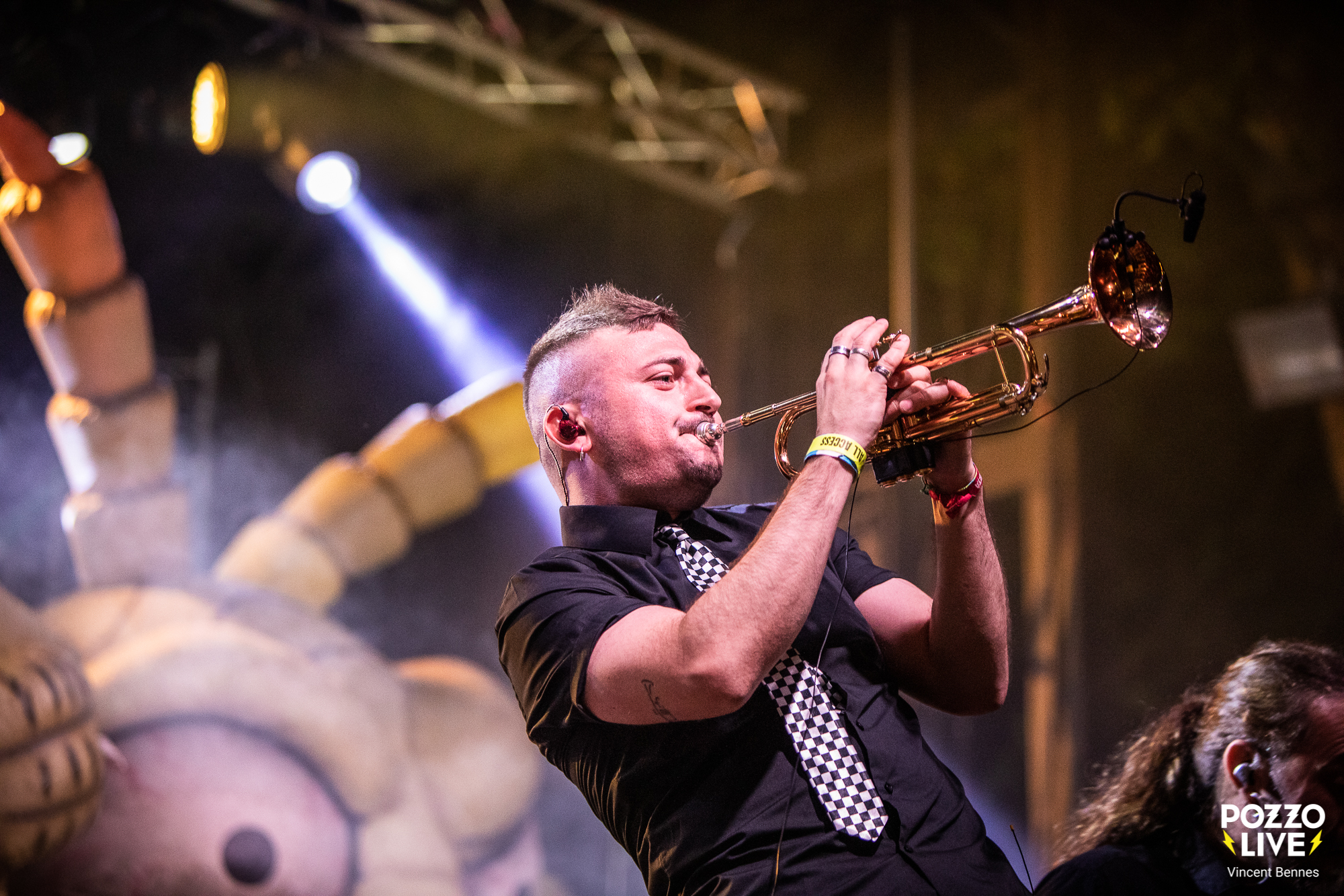Au fil du set, les espagnols piochent dans leur discographie avec des titres comme « La Realida », « Pulp », « La Bolsa » ou « Buscando Lios » mais aussi, pour le plus grand plaisir des fans, dans le répertoire de Ska-P avec quelques classiques de l’époque glorieuse comme « El Gato Lopez », « El Niño Soldado », « Romero El Madero » ou « Mestizaje » déclenchant une euphorie immédiate dans la fosse ! Là où d’autres sombreraient dans la caricature ou le recyclage dans ce style ska punk très marqué dans les années 1990, The Locos affichent eux, une vraie vitalité. Ainsi, la musique du sextet garde une sacrée capacité à fédérer tout en portant des messages forts – antiracisme, solidarité, critique sociale – et ce, sans jamais perdre en efficacité rythmique (« Contrato Limosna »). Le ton est volontairement festif, certes, mais toujours lucide. Et sur scène, cette tension entre la fête et la révolte, se matérialise avec une intensité rare et une section cuivres incandescente (« No Estas Sola », « Vendedor De Gloria »).