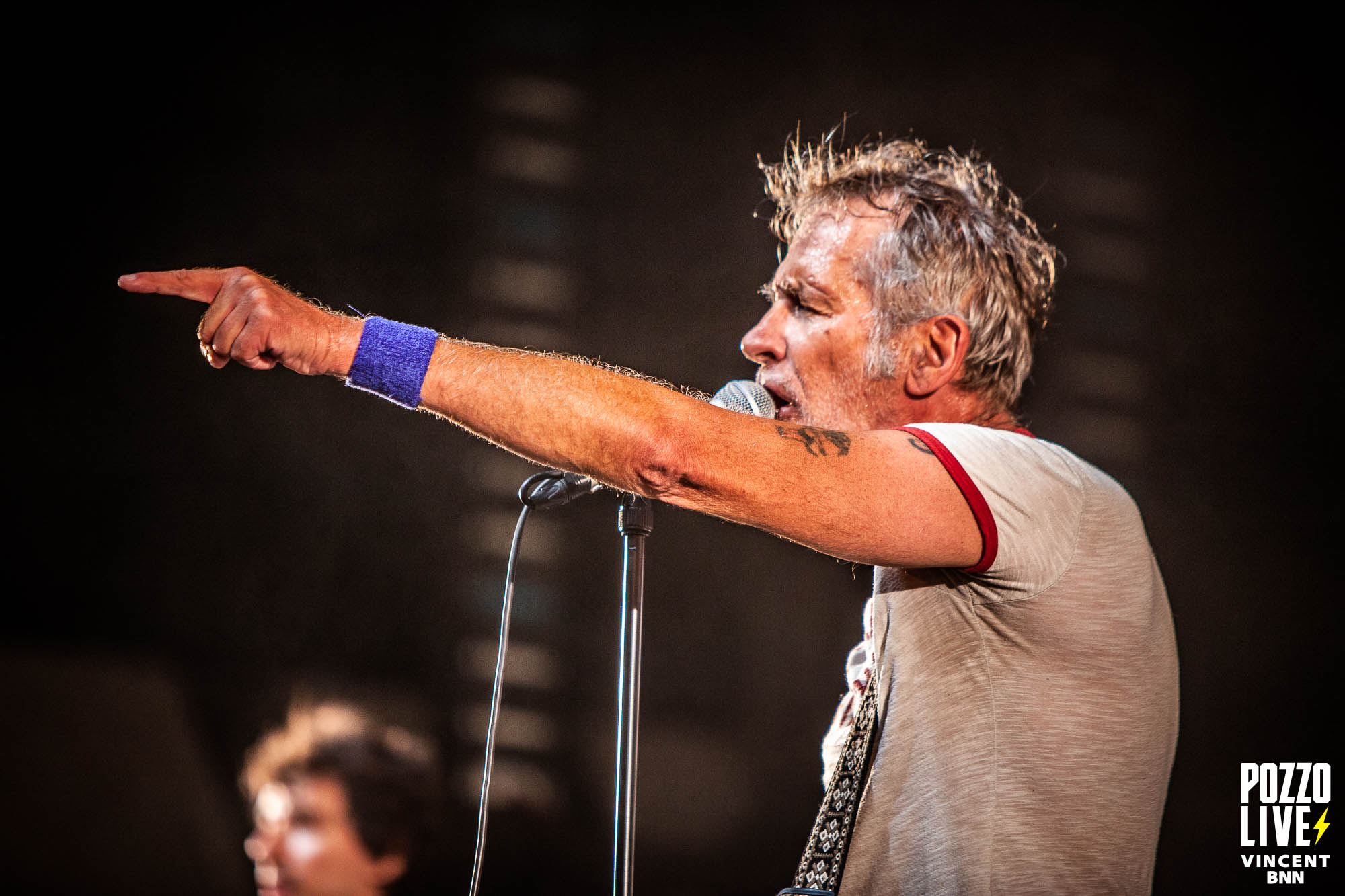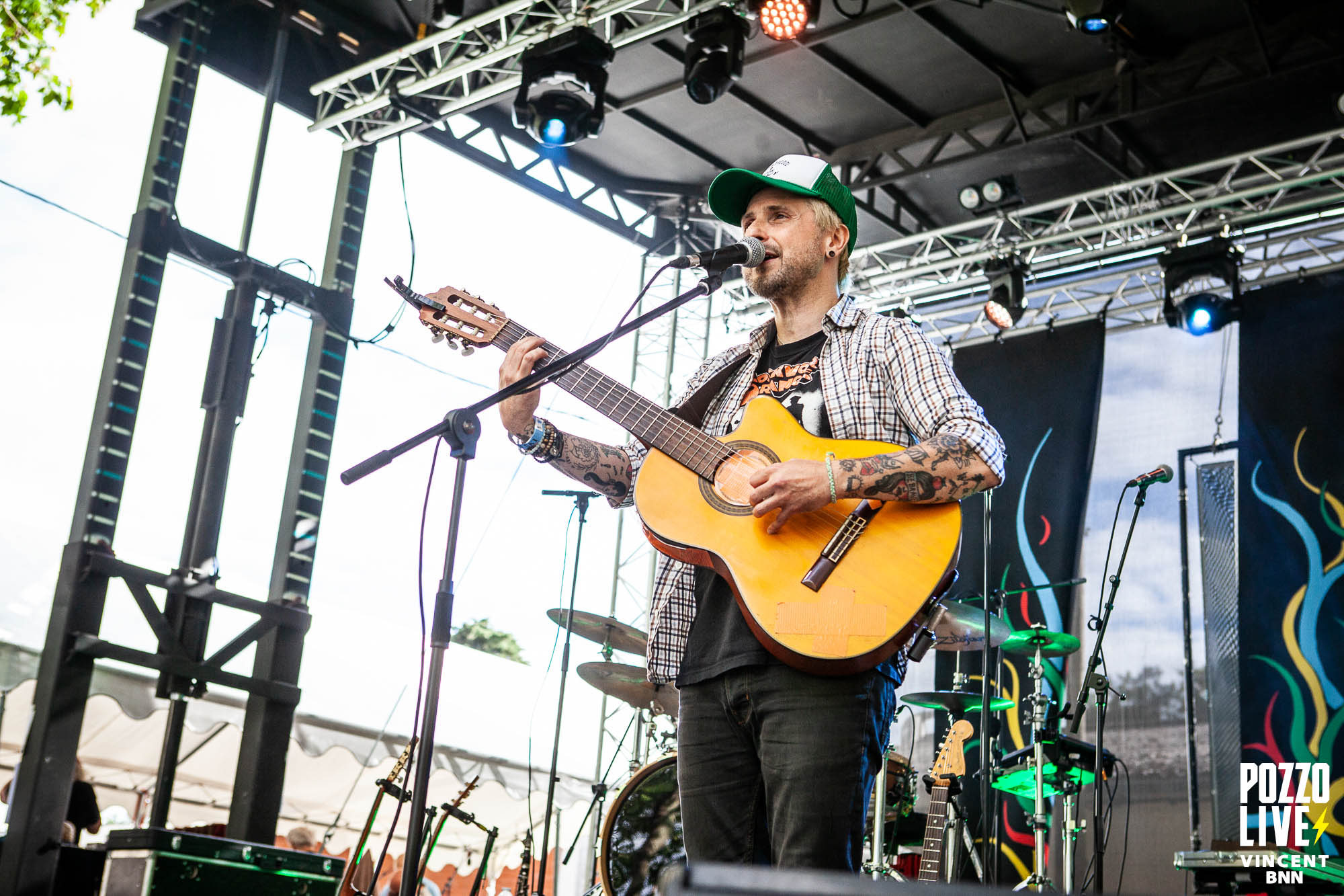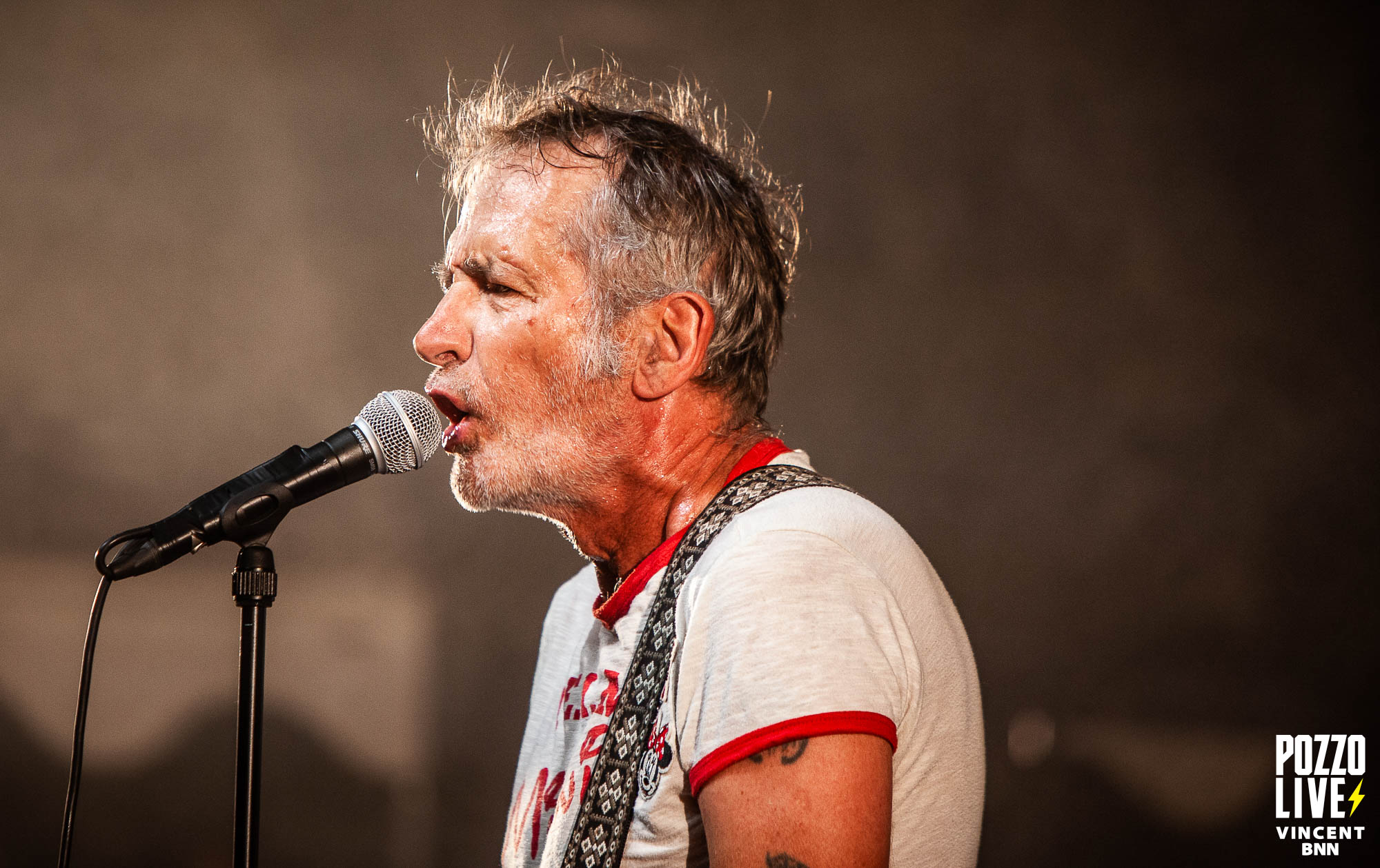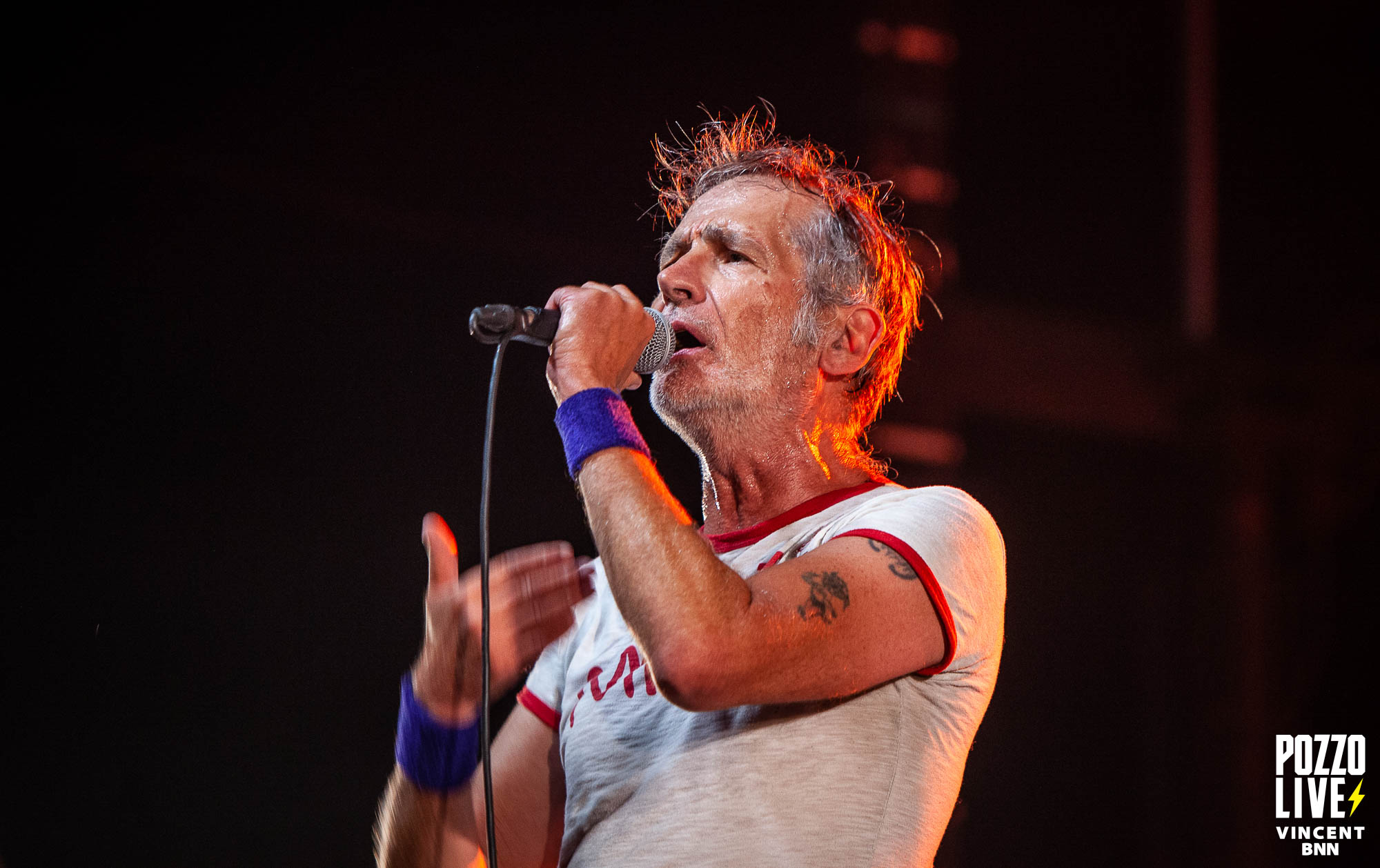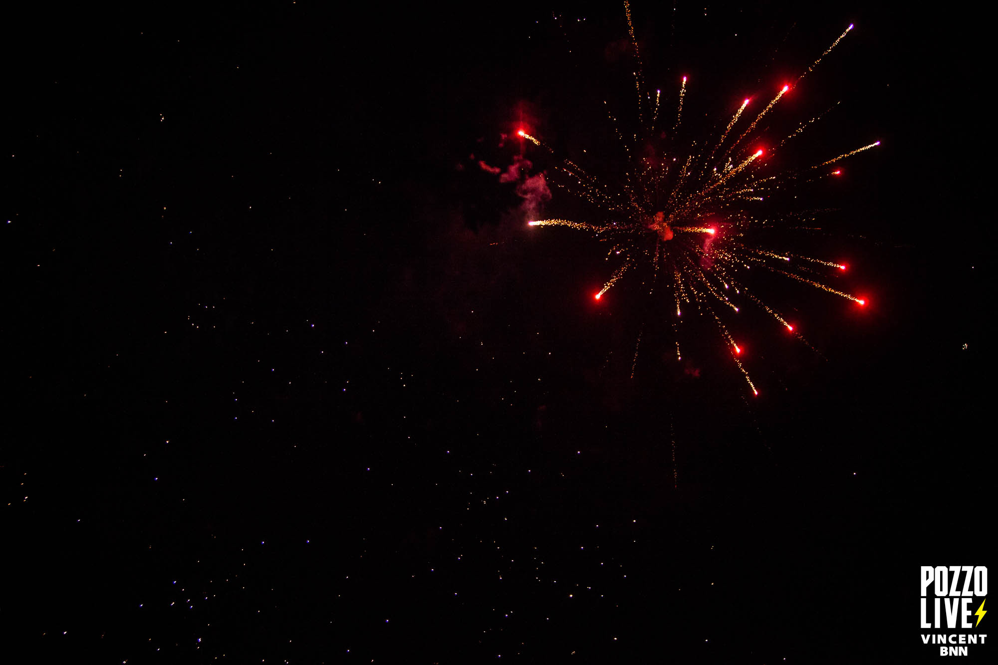 À son retour sur scène, il récupère des bottes rouges envoyées un spectateur (en référence à la chanson « Les Bottes Rouges », ndr) et continuera son concert divinement chaussé… Même si le poids des années (et des excès) se fait parfois sentir dans le chant du frontman (« Frontignan Blues », par exemple), l’homme a pris le parti de se donner corps et âme dans tous les morceaux, n’hésitant pas à escalader les amplis (« Punk Ouvrier ») ou à inviter le public (et même la section PMR) à faire un wall of death en prenant une grosse voix de meeetaaaôôÔÔL. Autant dire que les festivaliers s’en donnent à cœur-joie devant ce joyeux bordel, si bien que les fans et les familles qui découvrent ce soir Les Wampas, se retrouvent sur la même longueur d’onde. Qui plus est, dès les premiers accords de la chanson désormais classique « Manu Chao », la foule saute comme un seul homme et reprend à gorge déployée le refrain. C’est d’ailleurs à ce moment-là que sera tiré un feu d’artifice au-dessus de la scène des Voix Sonneuses. Cela ne pouvait pas mieux tomber. À partir de là, Didier sera intenable et fera des allers-retours entre le public et les planches sans aucun temps mort.