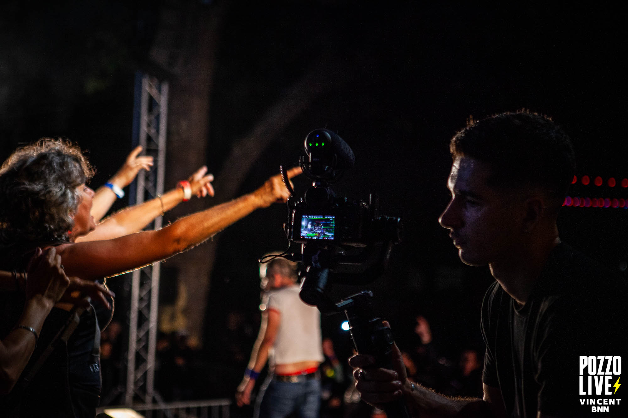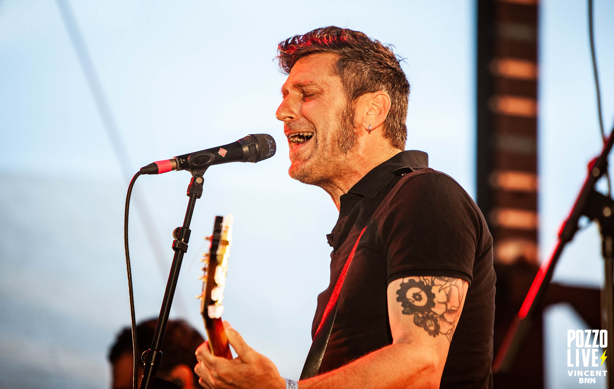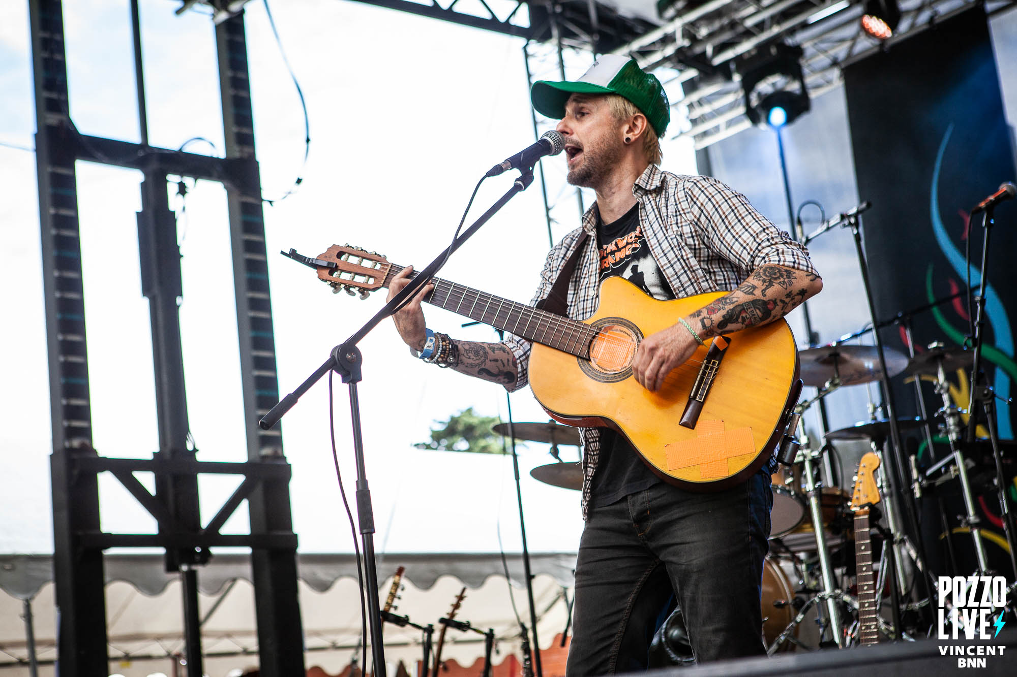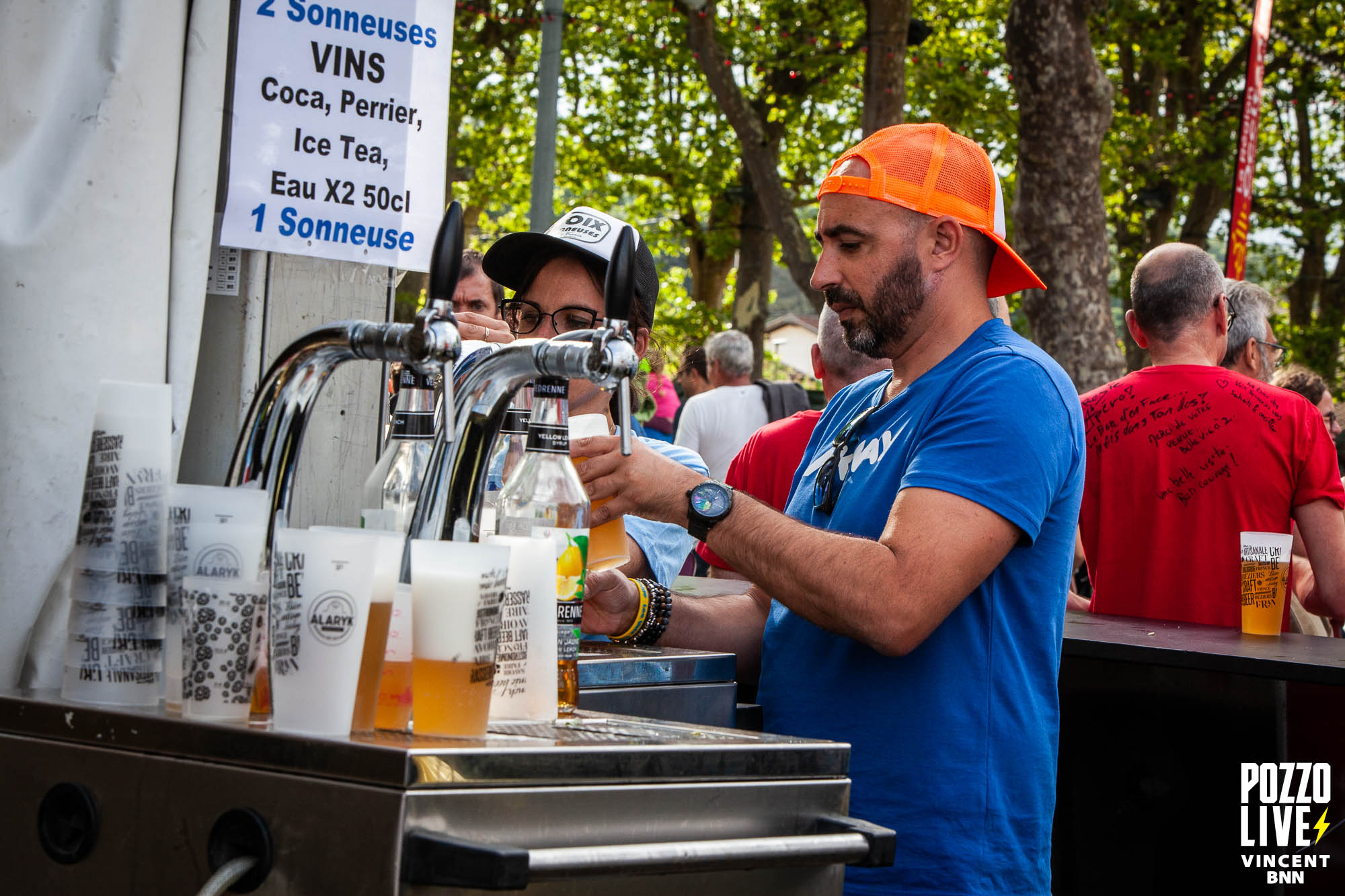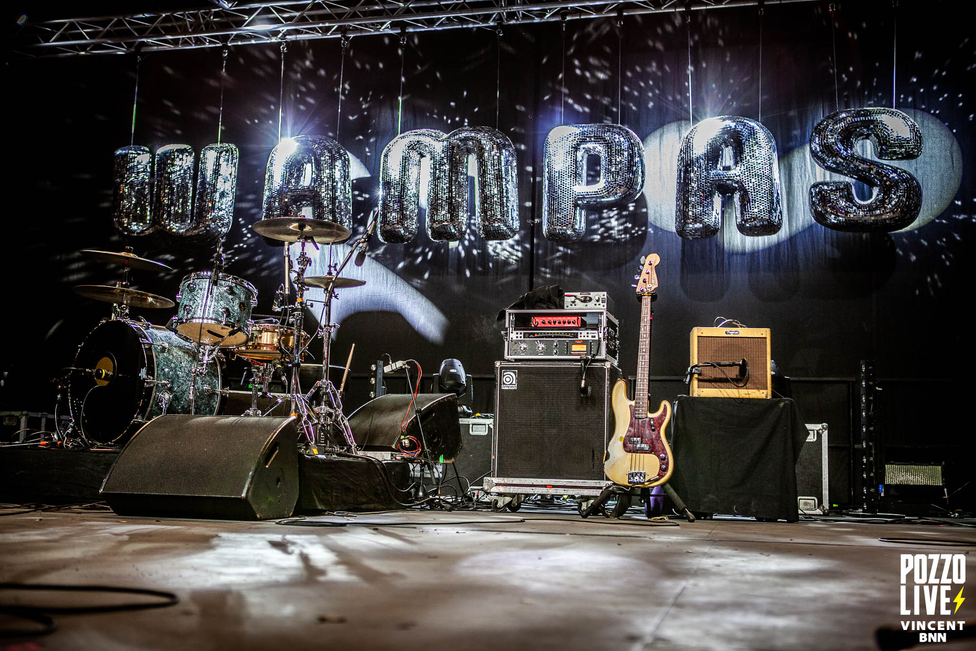 À son retour sur scène, il récupère des bottes rouges envoyées un spectateur (en référence à la chanson « Les Bottes Rouges », ndr) et continuera son concert divinement chaussé… Même si le poids des années (et des excès) se fait parfois sentir dans le chant du frontman (« Frontignan Blues », par exemple), l’homme a pris le parti de se donner corps et âme dans tous les morceaux, n’hésitant pas à escalader les amplis (« Punk Ouvrier ») ou à inviter le public (et même la section PMR) à faire un wall of death en prenant une grosse voix de meeetaaaôôÔÔL. Autant dire que les festivaliers s’en donnent à cœur-joie devant ce joyeux bordel, si bien que les fans et les familles qui découvrent ce soir Les Wampas, se retrouvent sur la même longueur d’onde. Qui plus est, dès les premiers accords de la chanson désormais classique « Manu Chao », la foule saute comme un seul homme et reprend à gorge déployée le refrain. C’est d’ailleurs à ce moment-là que sera tiré un feu d’artifice au-dessus de la scène des Voix Sonneuses. Cela ne pouvait pas mieux tomber. À partir de là, Didier sera intenable et fera des allers-retours entre le public et les planches sans aucun temps mort.
