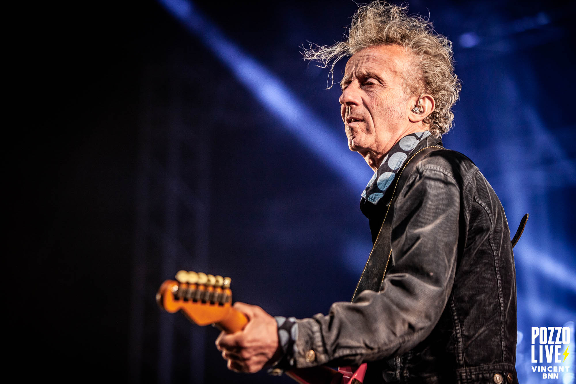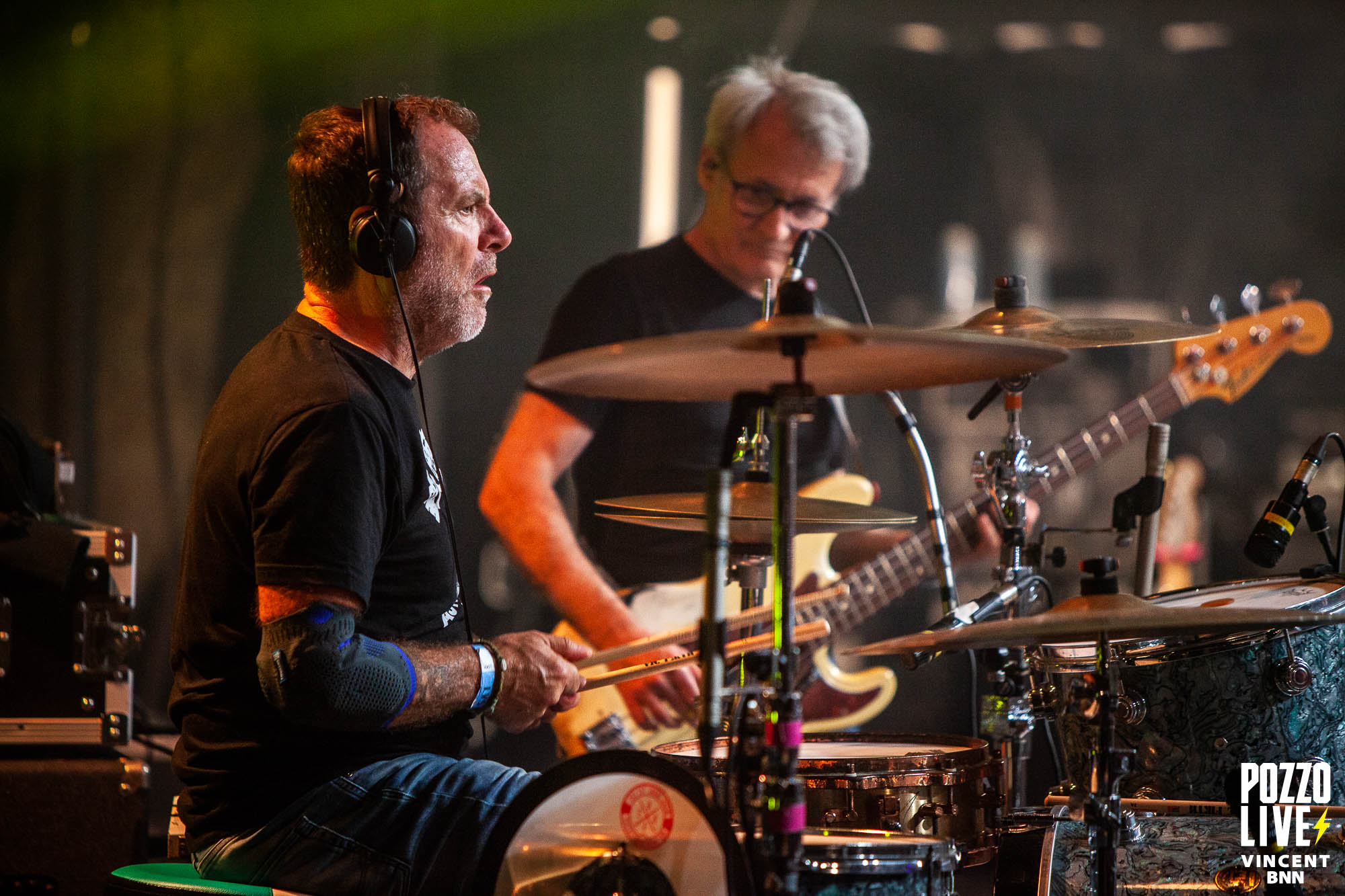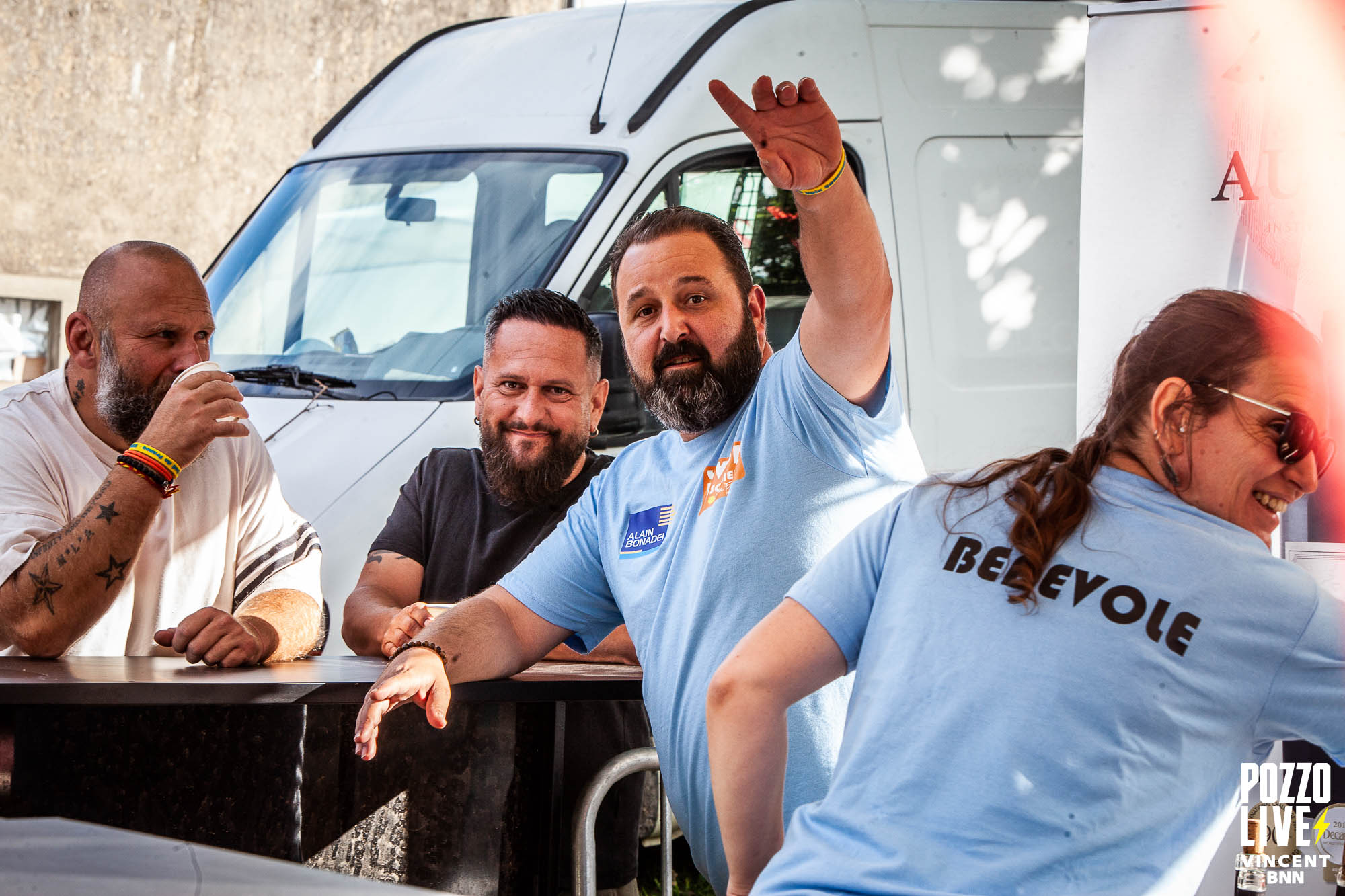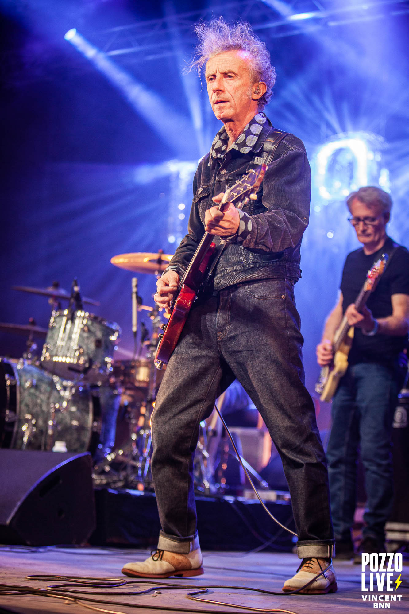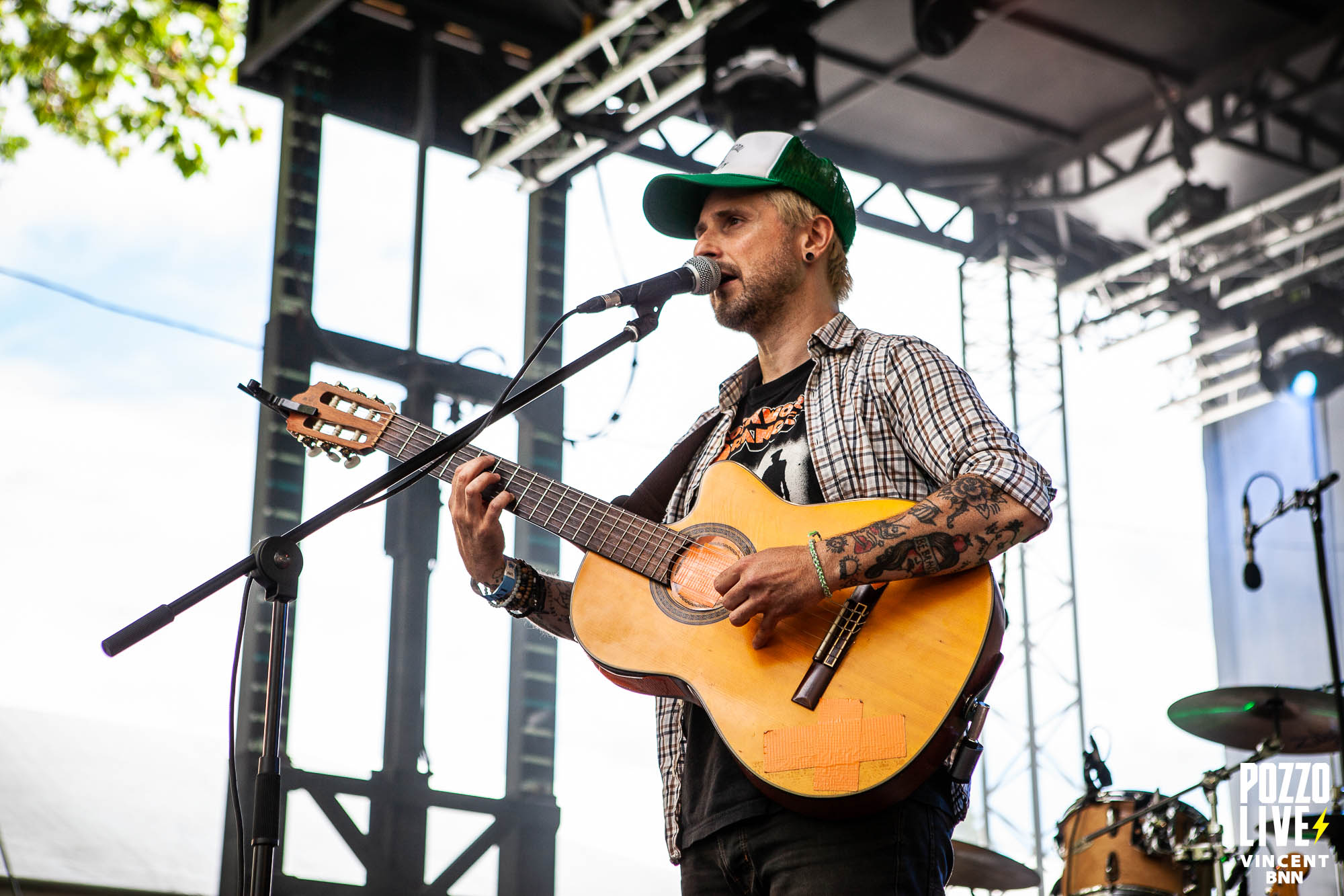 À son retour sur scène, il récupère des bottes rouges envoyées un spectateur (en référence à la chanson « Les Bottes Rouges », ndr) et continuera son concert divinement chaussé… Même si le poids des années (et des excès) se fait parfois sentir dans le chant du frontman (« Frontignan Blues », par exemple), l’homme a pris le parti de se donner corps et âme dans tous les morceaux, n’hésitant pas à escalader les amplis (« Punk Ouvrier ») ou à inviter le public (et même la section PMR) à faire un wall of death en prenant une grosse voix de meeetaaaôôÔÔL. Autant dire que les festivaliers s’en donnent à cœur-joie devant ce joyeux bordel, si bien que les fans et les familles qui découvrent ce soir Les Wampas, se retrouvent sur la même longueur d’onde. Qui plus est, dès les premiers accords de la chanson désormais classique « Manu Chao », la foule saute comme un seul homme et reprend à gorge déployée le refrain. C’est d’ailleurs à ce moment-là que sera tiré un feu d’artifice au-dessus de la scène des Voix Sonneuses. Cela ne pouvait pas mieux tomber. À partir de là, Didier sera intenable et fera des allers-retours entre le public et les planches sans aucun temps mort.