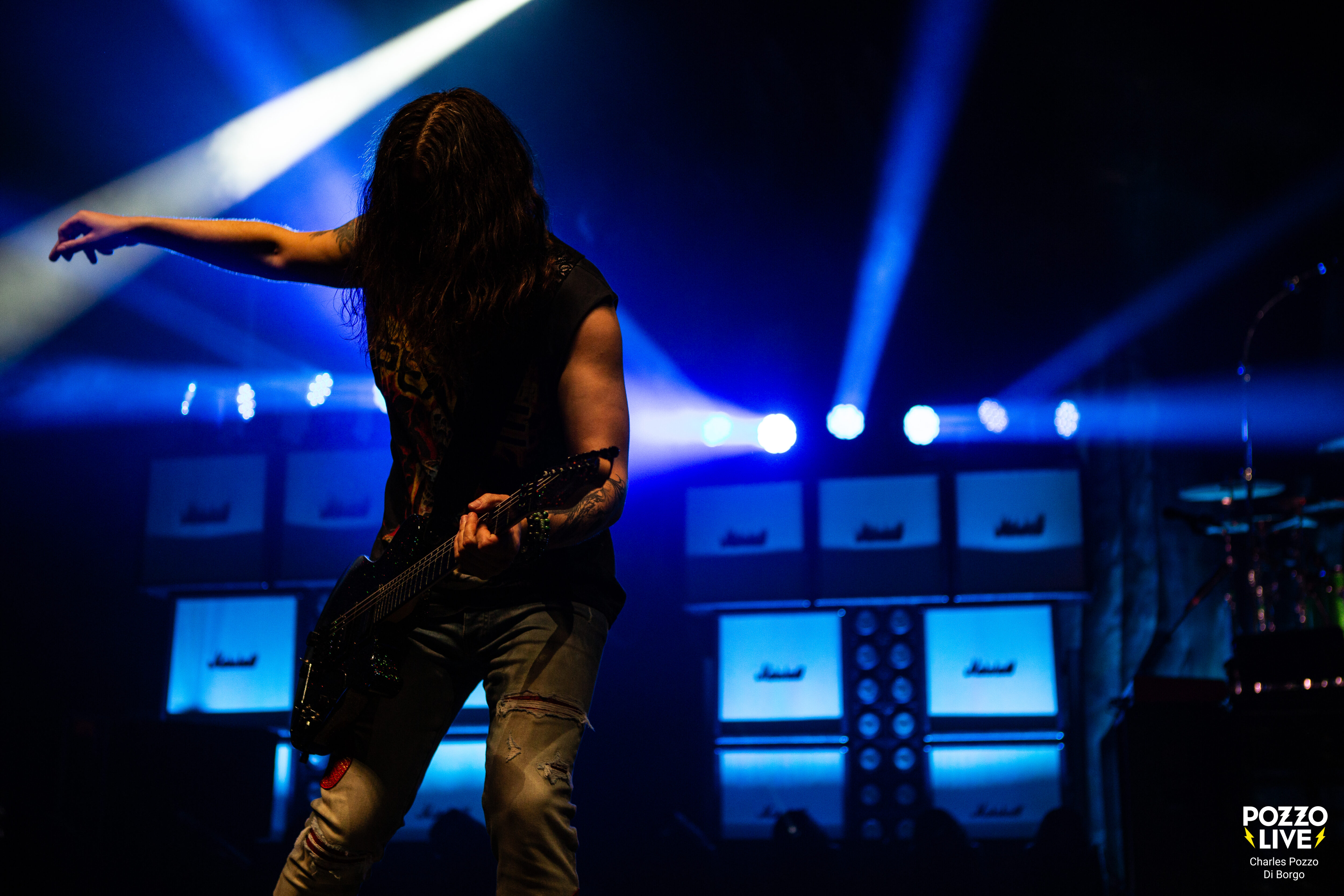 Les lumières sont de sortie et les guitares à double manche aussi pour le puissant I Am The Fire. Des petits pogos sont lancés durant le morceau.