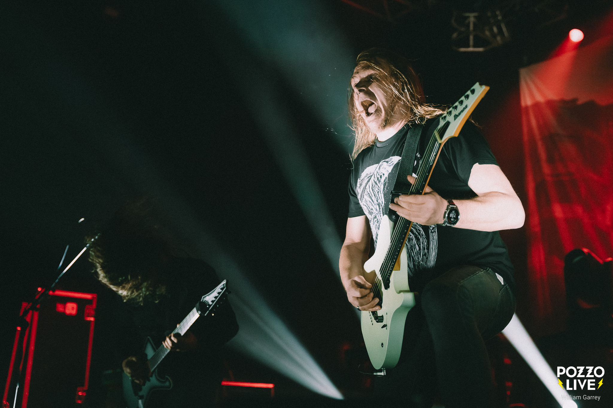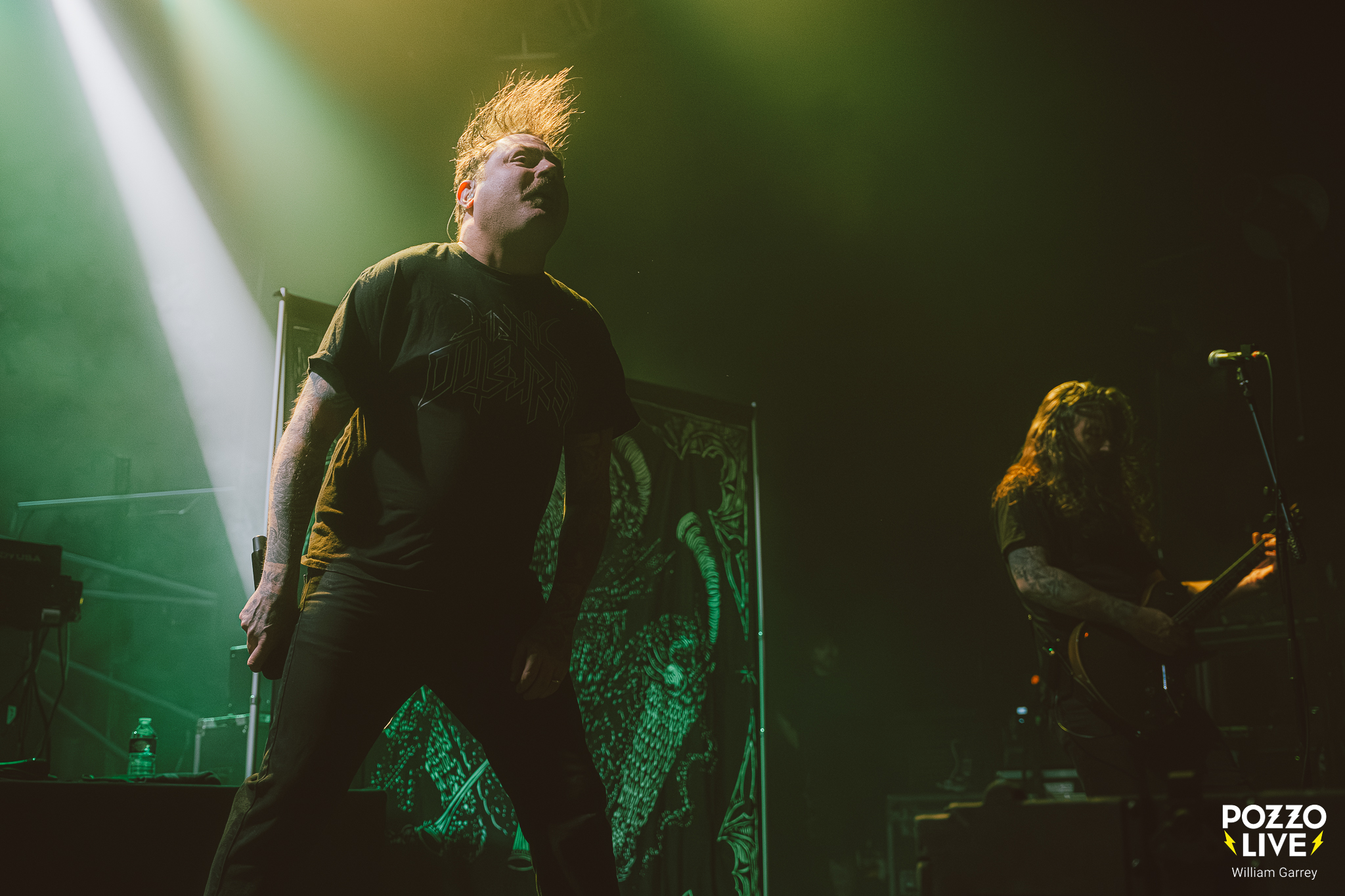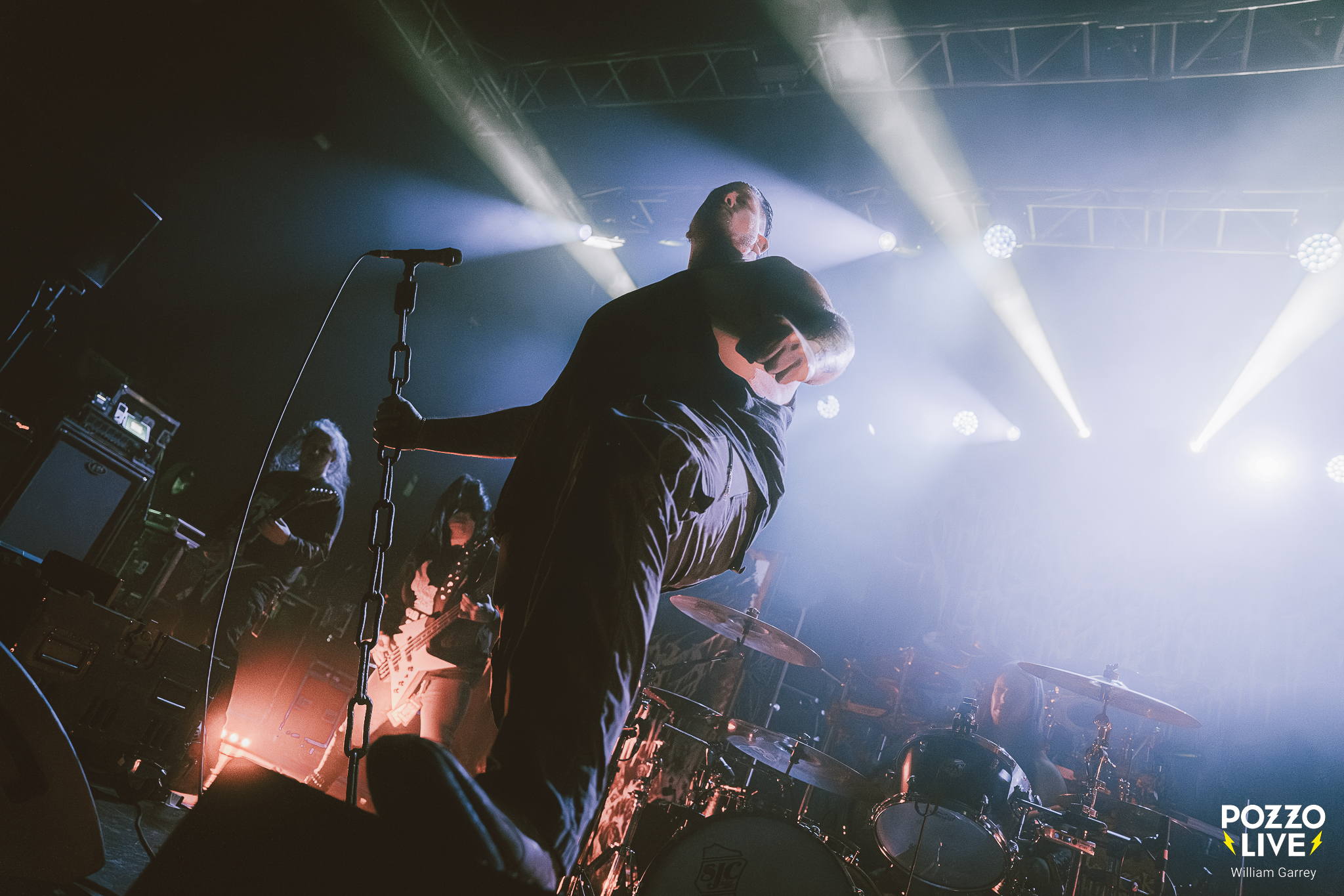 Face à un Transbordeur malheureusement bien trop vide par rapport à la qualité de l’affiche, Frozen Soul fait venir le noir avant son entrée sur scène. La lumière ne reviendra que partiellement, donnant un caractère d’outre-tombe à la scène pour soutenir la lourdeur des riffs. Frozen Soul ne fait pas dans la dentelle, bien au contraire. La musique est massive à l’image du frontman qui impose une prestance scénique imposante. C’est viscéral, bestial, sans concession.