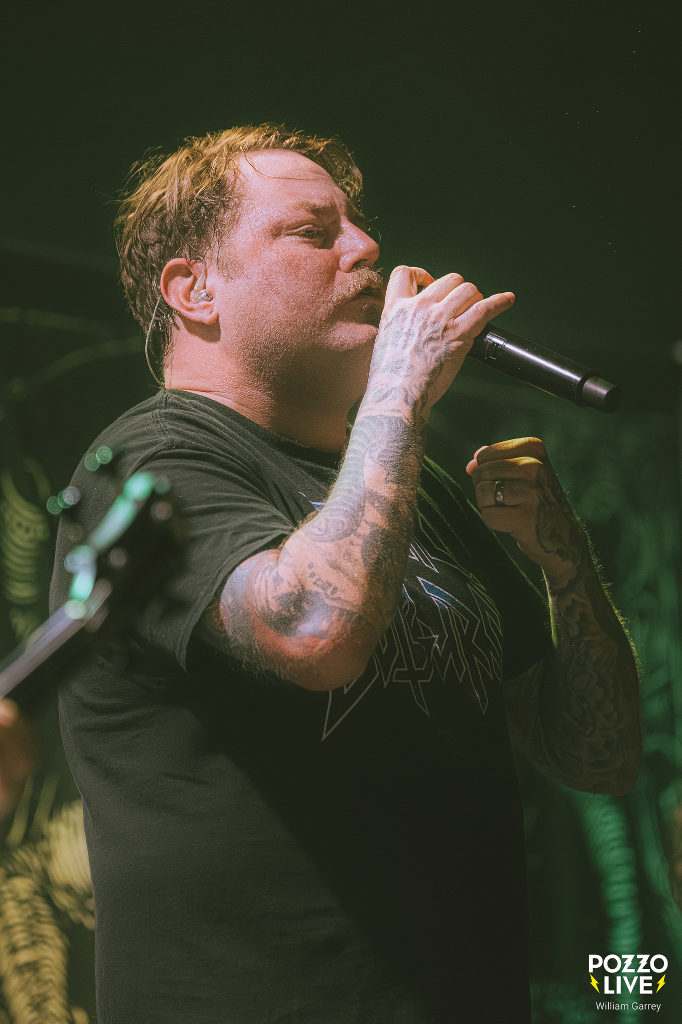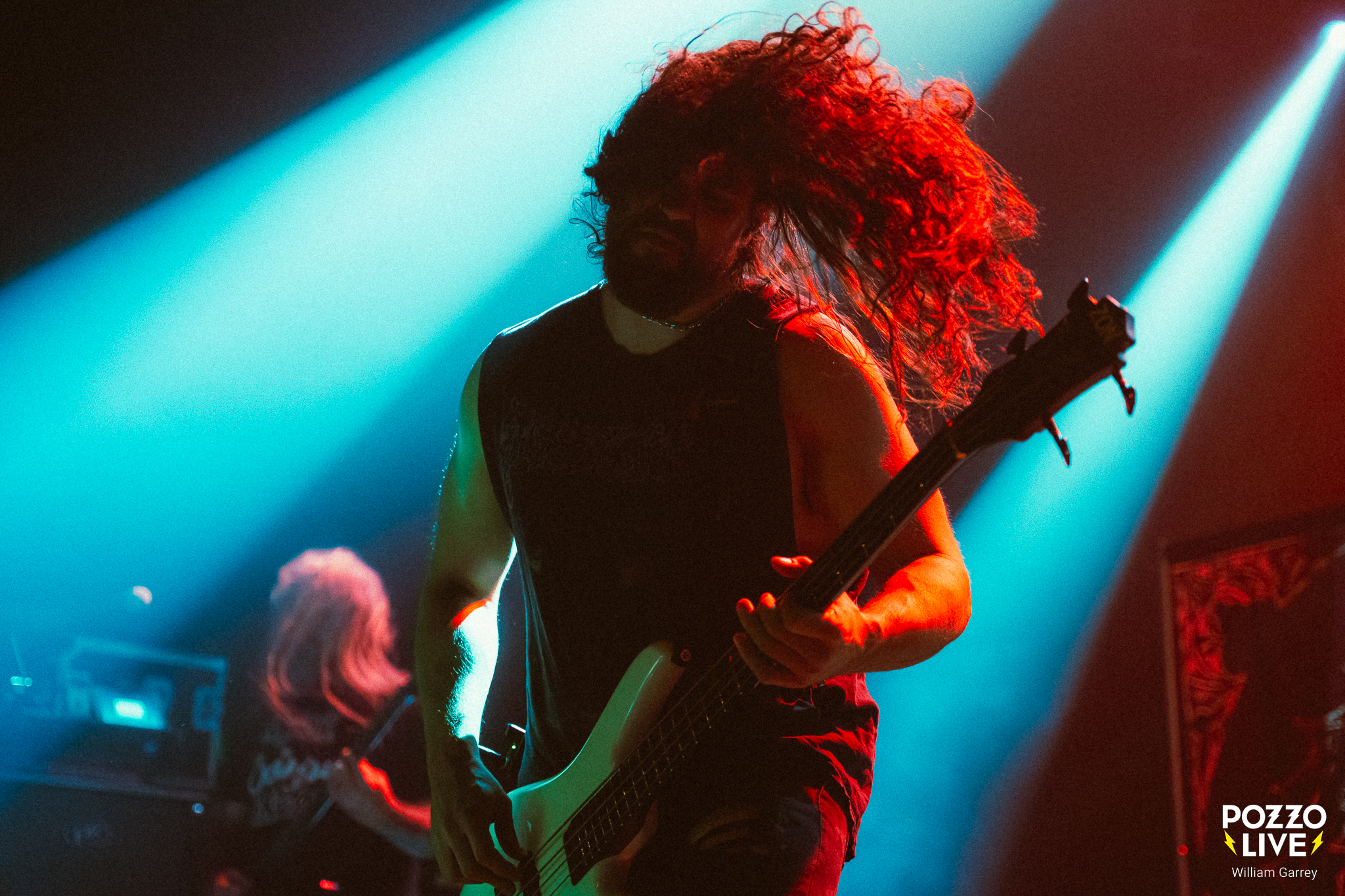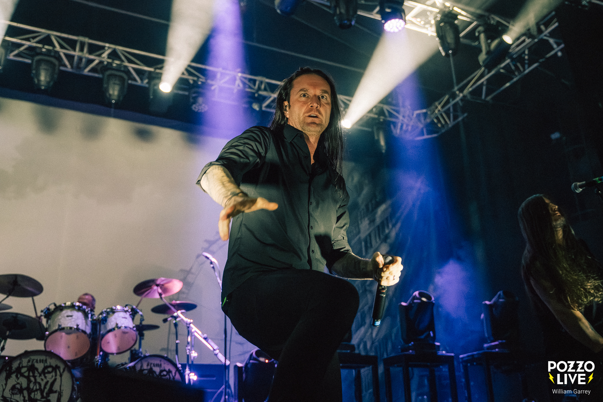 Face à un Transbordeur malheureusement bien trop vide par rapport à la qualité de l’affiche, Frozen Soul fait venir le noir avant son entrée sur scène. La lumière ne reviendra que partiellement, donnant un caractère d’outre-tombe à la scène pour soutenir la lourdeur des riffs. Frozen Soul ne fait pas dans la dentelle, bien au contraire. La musique est massive à l’image du frontman qui impose une prestance scénique imposante. C’est viscéral, bestial, sans concession.