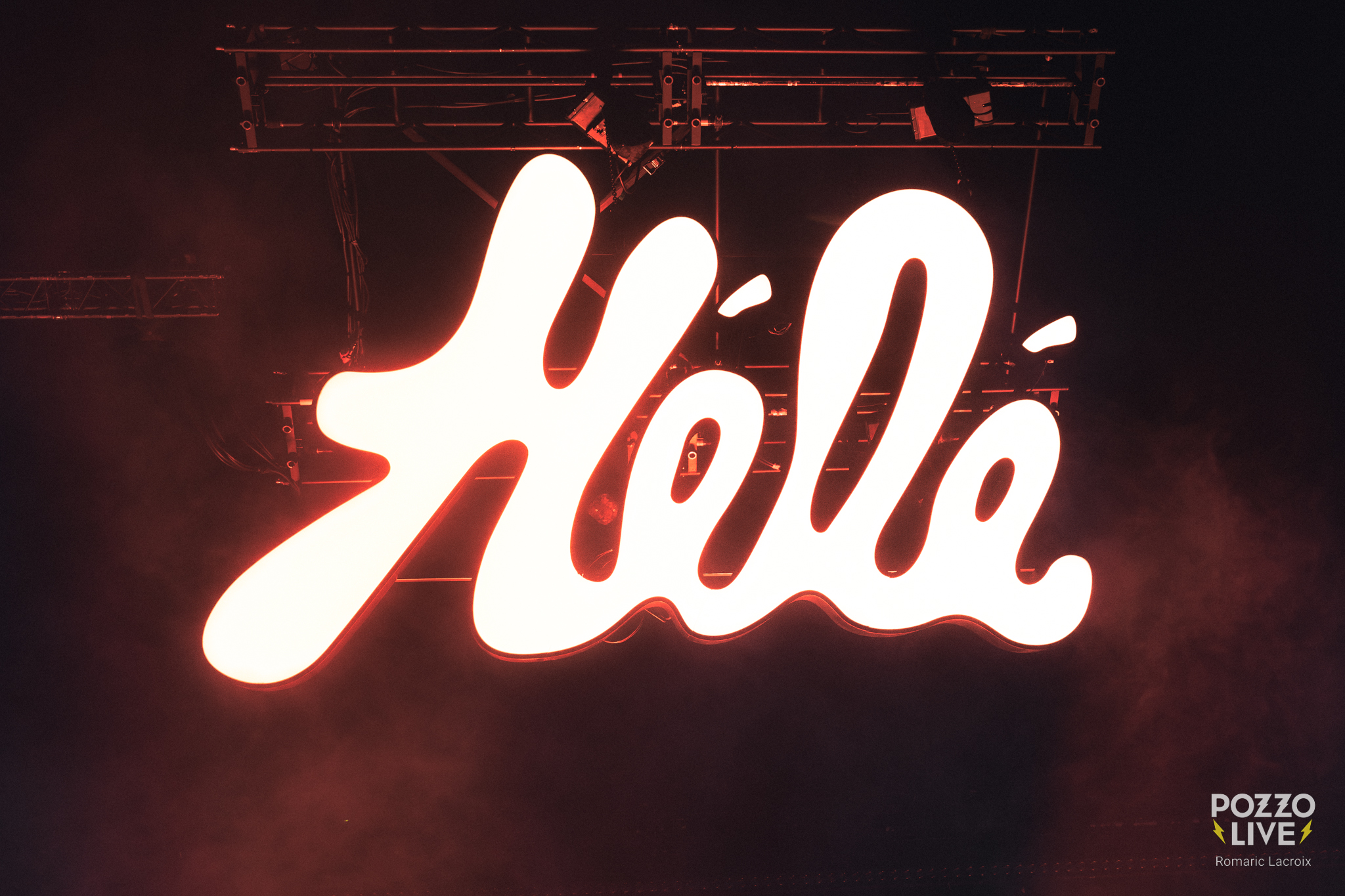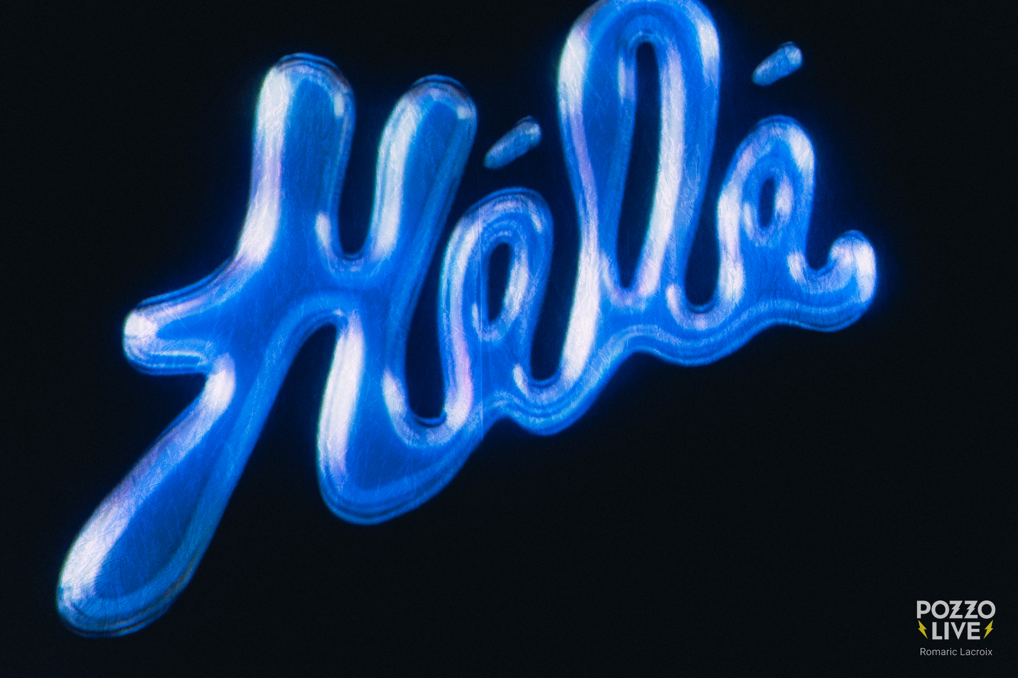 Les lumières s’éteignent et des messages vocaux entre Helena et son frère apparaissent sur un rideau pour chauffer la salle et lancer le concert : les basses résonnent, le logo apparaît, le public scande son nom.