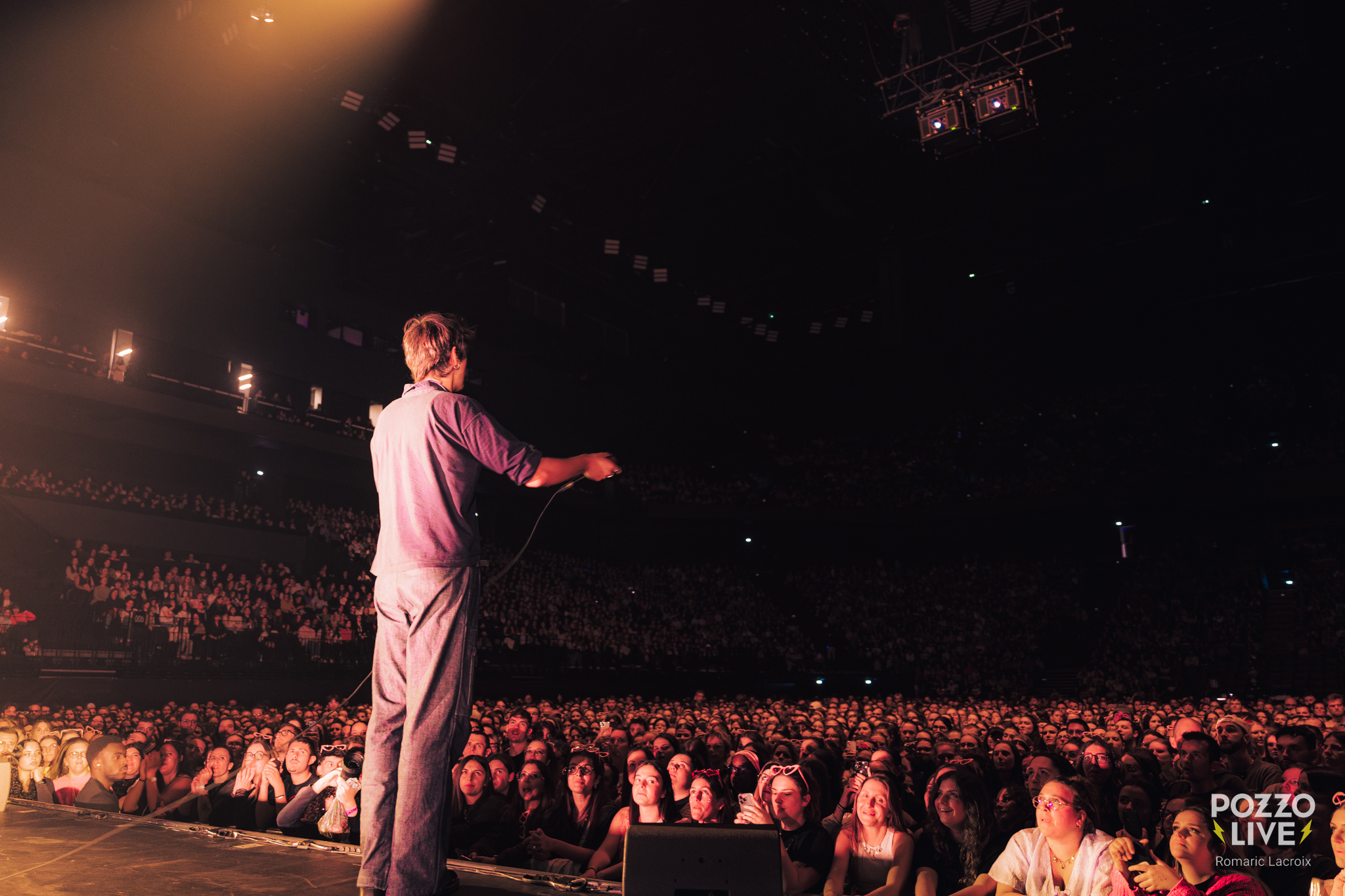Nous découvrons alors la scène, qui a bien changé depuis son dernier concert à Lyon au Transbordeur. Cette fois, des danseurs l’accompagnent sur plusieurs morceaux, et de nouvelles chorégraphies viennent enrichir le concert. Si tout n’a pas changé depuis la dernière fois, le show millimétré préparé pour cette deuxième partie de tournée nous a particulièrement séduit.
