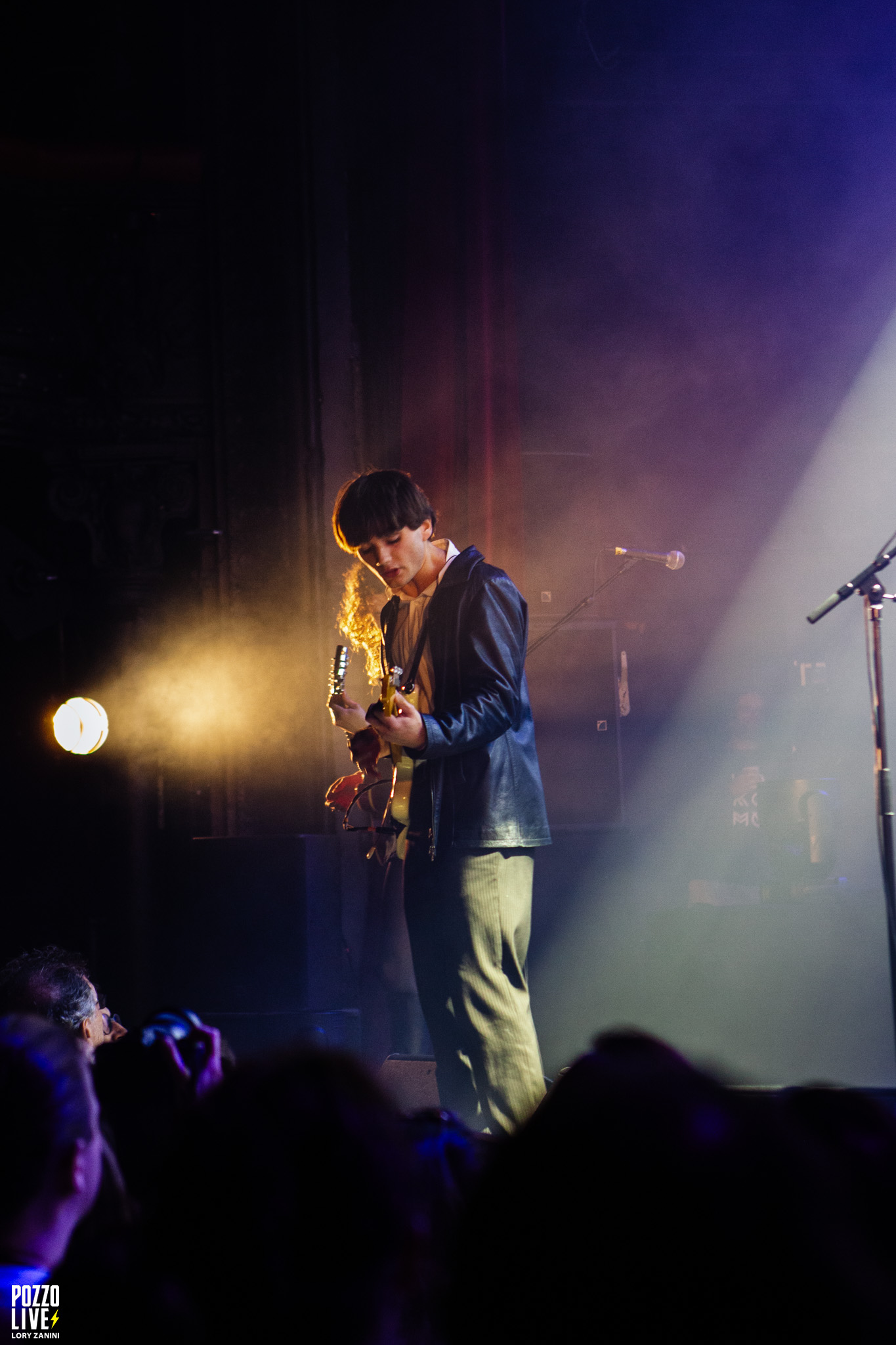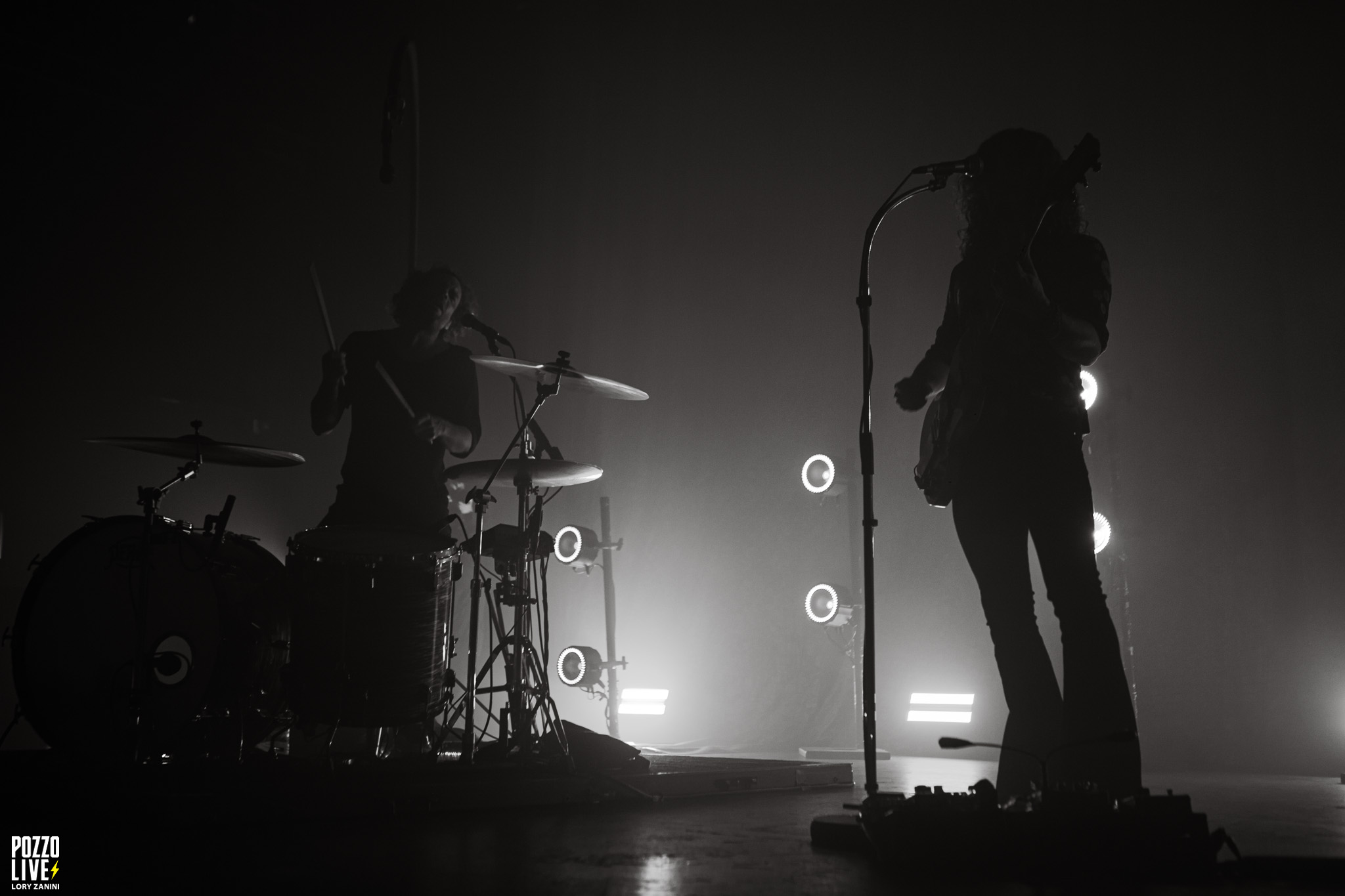 Le rideau rouge s’ouvre alors Kevin est déjà debout derrière sa batterie devant un public prêt à faire la fête. Warren entre à son tour sur les premières notes de Non Essential Man. Ce long morceau nous fait entrer en transe avec le groupe. L’ambiance monte lorsque que les premiers riffs de Technicolor Life résonne dans la salle, avant que les tomes de Kevin fassent trembler le sol de la Cigale. Cela permet au public de commencer à sauter au rythme du rock énergique de KO KO MO.