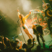 C’est l’heure de LoveDrug, dans une atmosphère orangée crépusculaire et vibrant au son des synthés et des guitares tout droit sortis des 80’s. Ell continue avec le morceau Applause, visiblement très attendu autant par le public déchainé que par les danseurs survoltés.