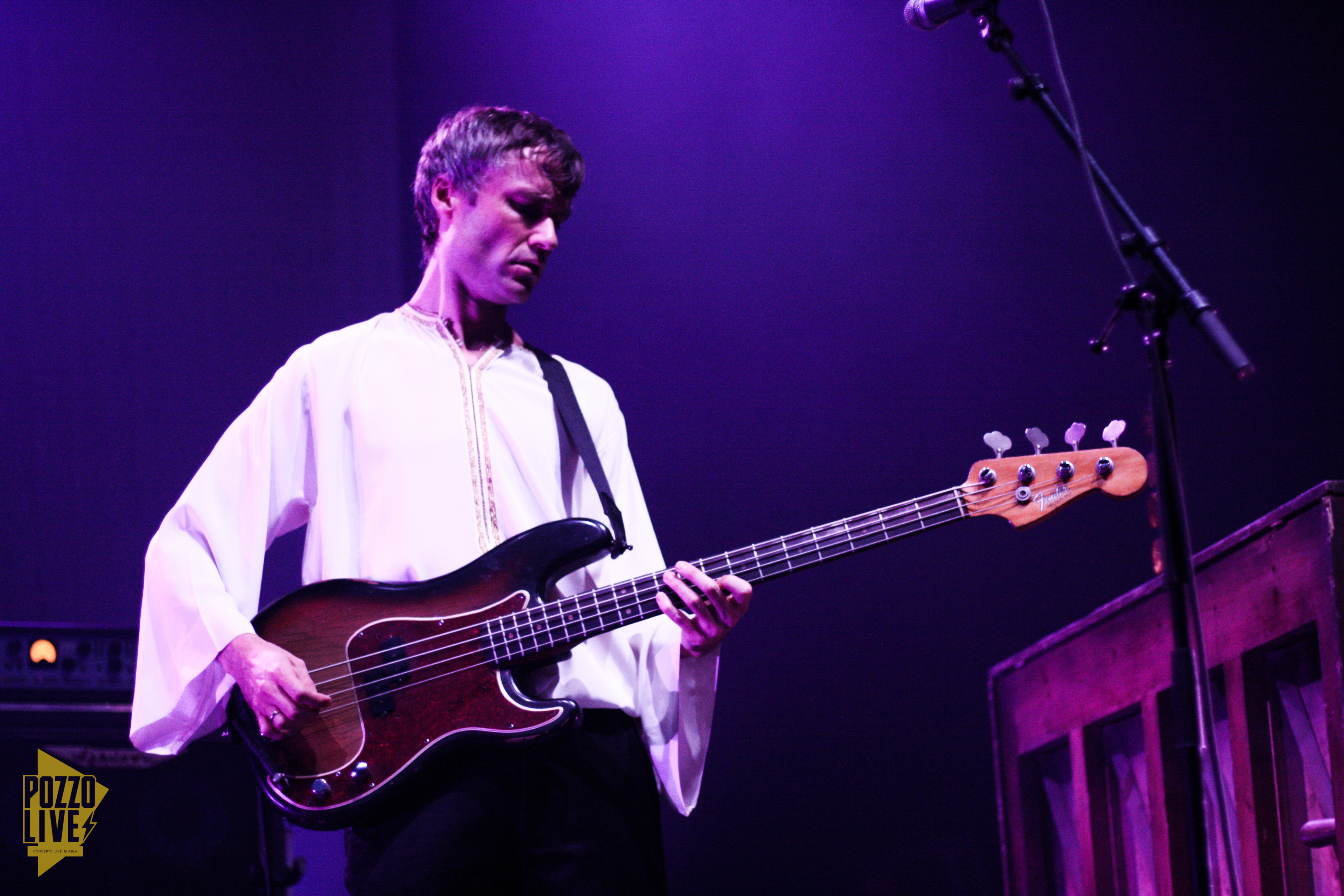 Le tic de 21h25 retentit pour ensuite donner le ton à 10 minutes tendues où s’alternent cris et applaudissements, révélant l’impatience qui règne. 21h35 la scène s’illumine pour enfin voir s’avancer, avec la manière, la formation anglaise. A eux quatre ils forment le gang Barrow, c’est sur le thème de Bonnie and Clyde que les hommes – et le chien de Pete en chef de file – se montrent enfin. Les manteaux volent, on se frotte le nez ou les cheveux (c’est selon), on gratte les cordes pour être sûr et oui, on est bon.