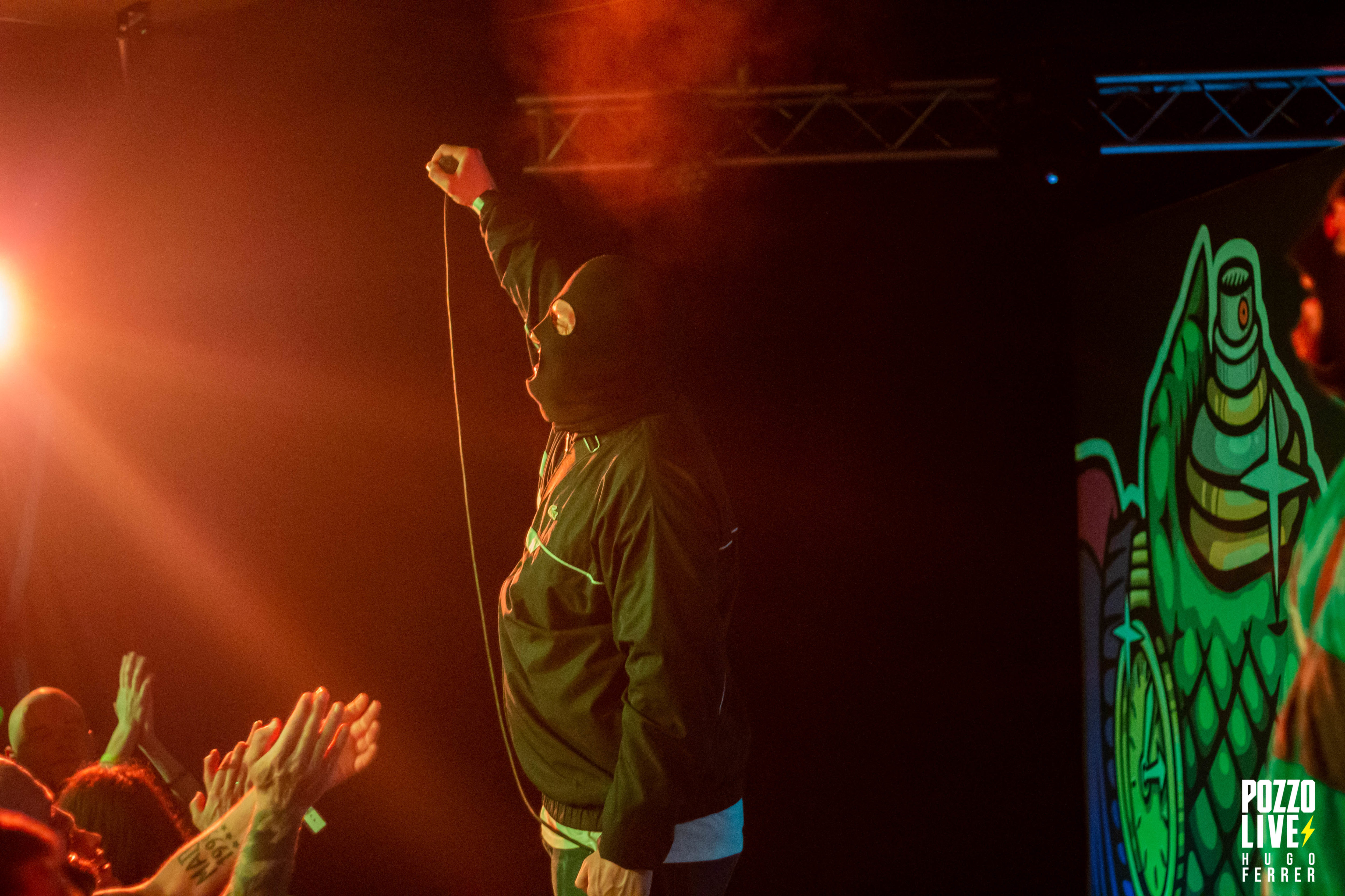 Le groupe commence avec son titre Brother & Sisterhood, accompagné par un public en ébullition. Les flows des deux rappeurs se complètent bien, entre voix éraillée et rap technique. Le troisième membre tient les platines et parsème le set de transitions industrielles, quand il ne fait les backs.
