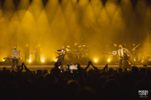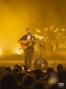 A travers tout le concert, Marcus Mumford échange des petits interludes avec le public, se remémorant l’époque de ses cours de français, et des phrases qu’il en a retenues… Visiblement, le chanteur était bavard puisque la première phrase qui revient est : « Marcus…. Tais toi!« . Il ne manquera pas de répéter à plusieurs reprises « Un vendredi soir à Paris… QUAND MÊME!« . Ces échanges humoristiques renforcent clairement le lien entre le groupe et son public et amusent beaucoup l’audience ! Mais fini les plaisanteries : le trio quitte la scène principale pour prendre place sur une petite b-stage installée au fond de la fosse. C’est ici que se déroulera le set acoustique, très intimiste, composé de Ghosts That We Knew, Guiding Light et Caroline.