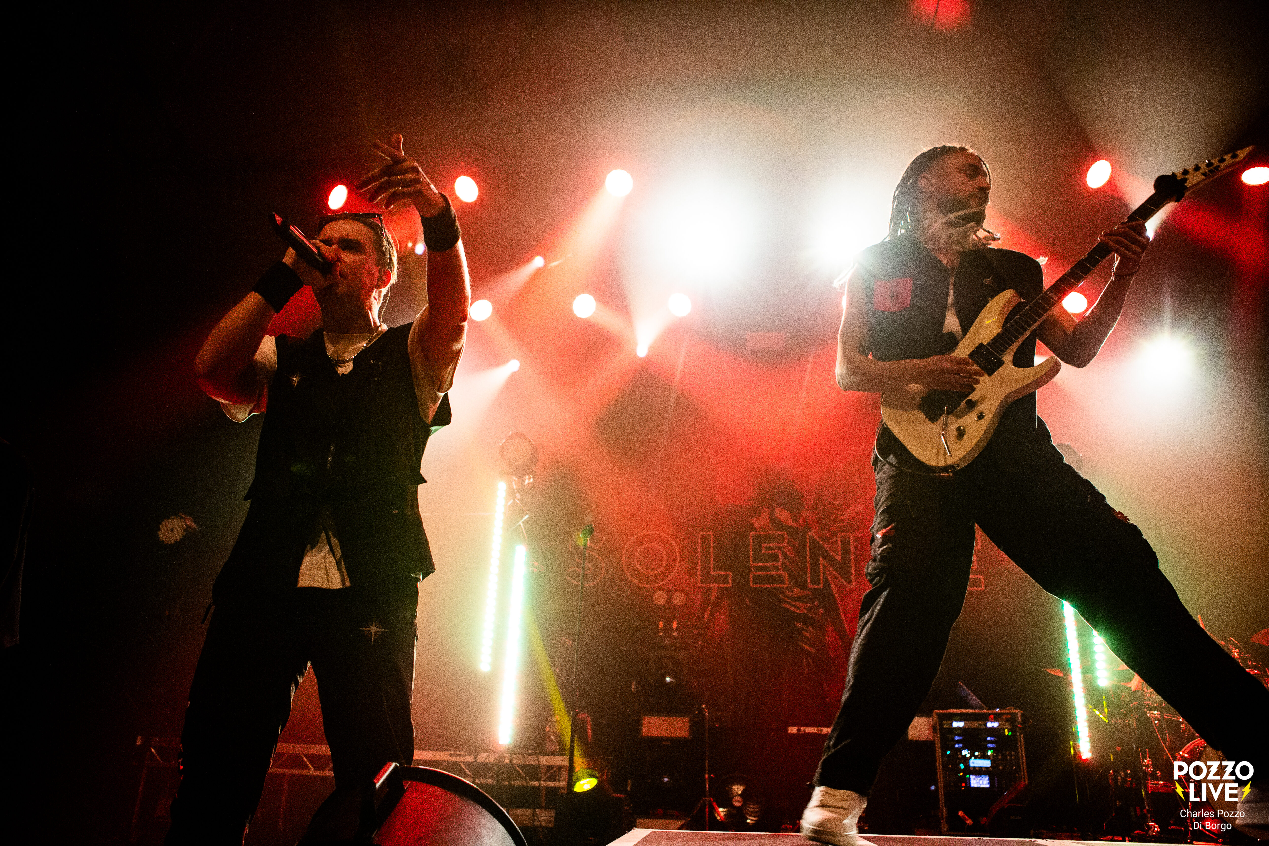 Solence démarre le set avec Angels Calling et la sympathique intro de ce morceau qui est le premier de leur récent album. On enchaine d’emblée avec leur hit Good F**King Music. Le public semble conquis, certains semblent connaitre le groupe. Les morceaux sont chaleureusement applaudis. Que ce soit les récents morceaux comme Where Were You..? ou les plus classiques comme Blackout ou Animal in Me.
