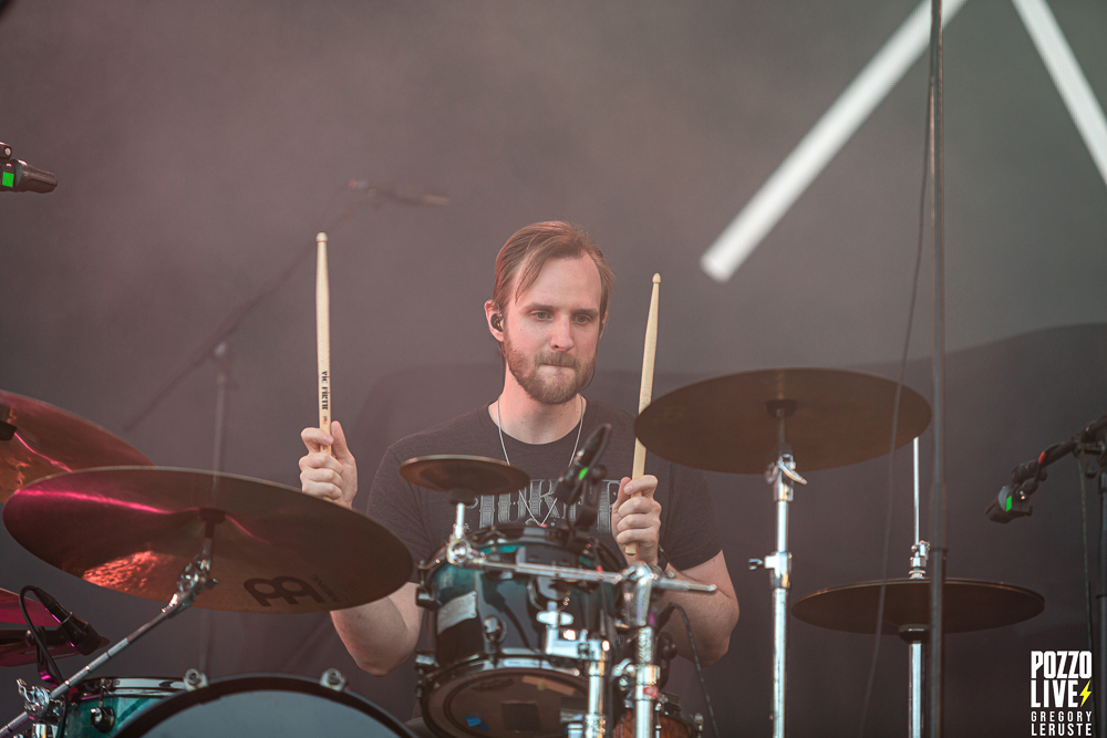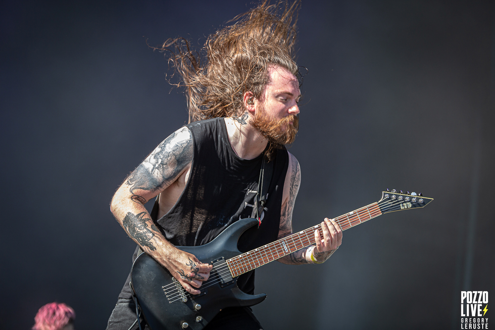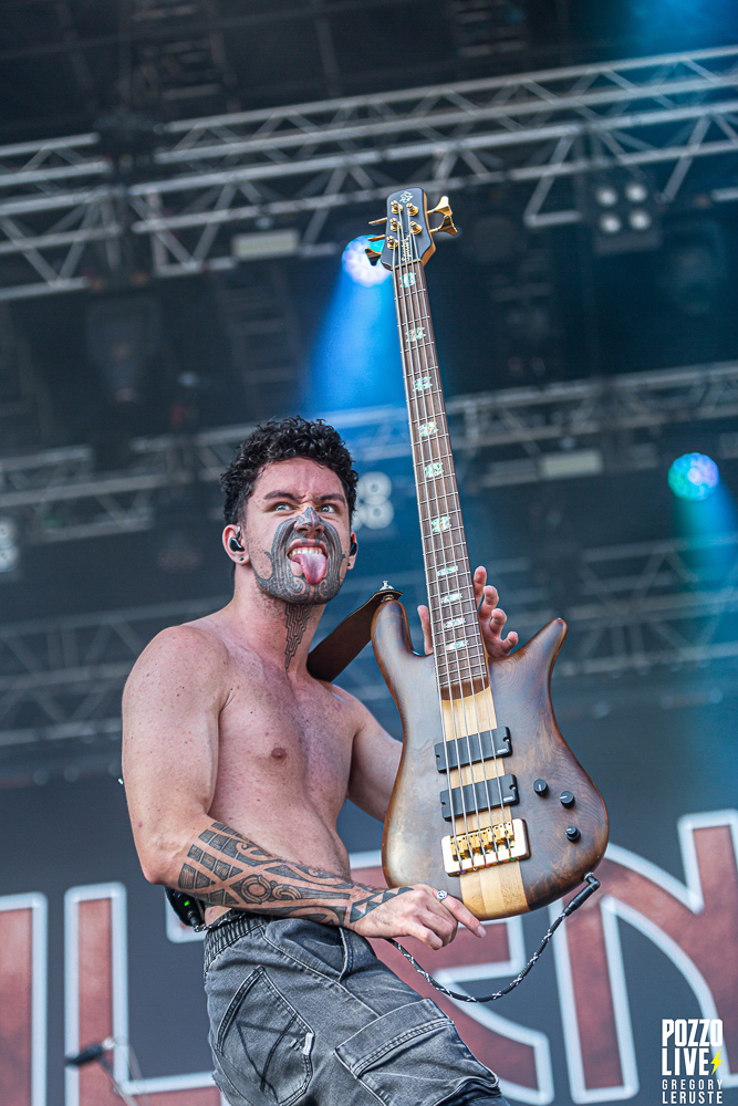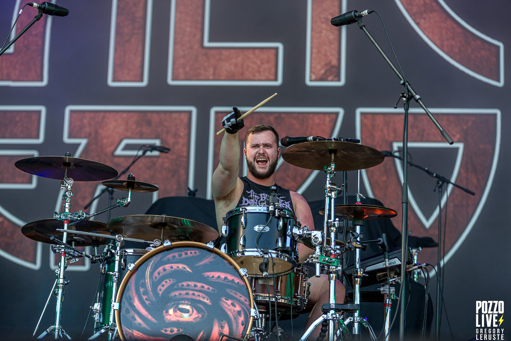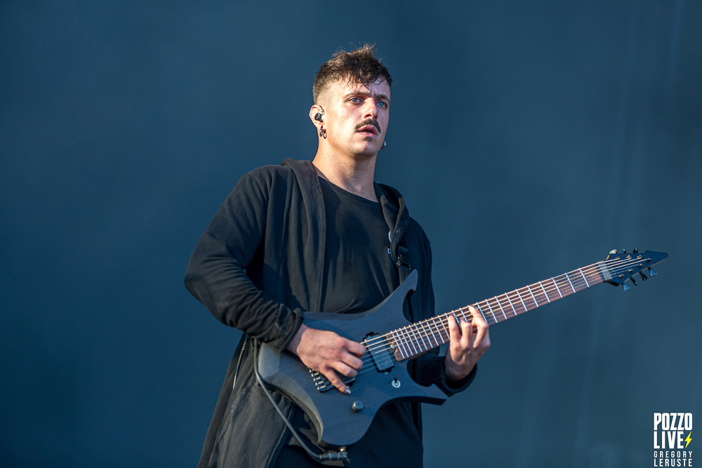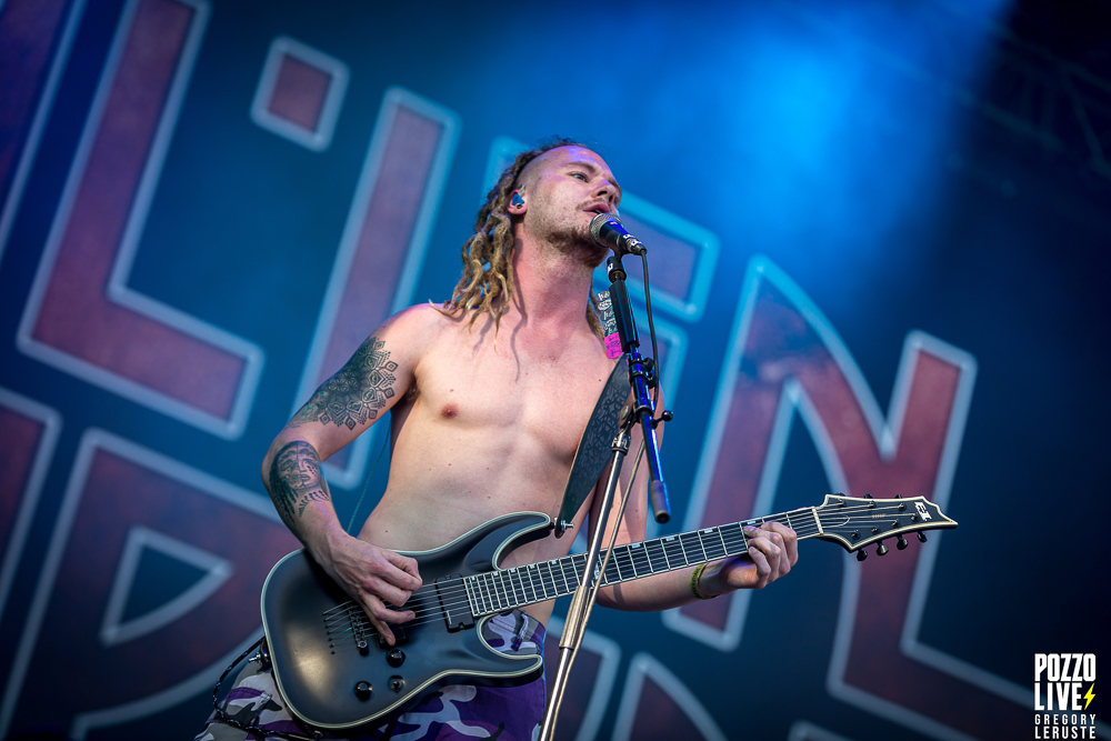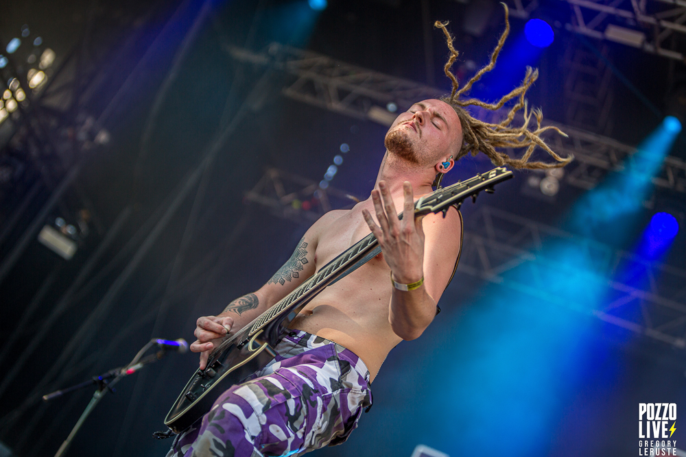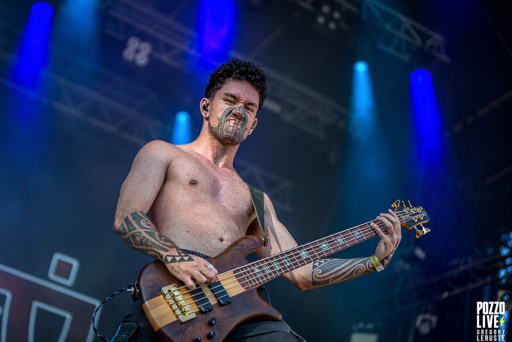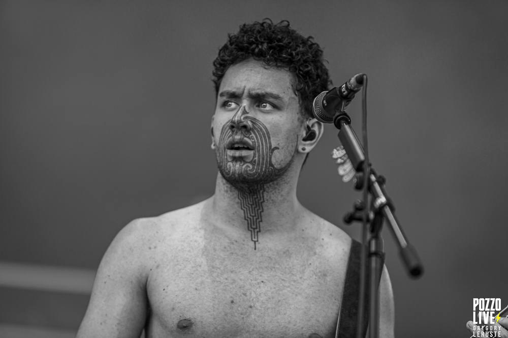 Après un quart d’heure d’attente, un Haka résonne sur le site de Pause Guitare. Les organisateurs nous auraient-ils concocté un match de rugby surprise ? Que nenni ! Il s’agit d’Alien Weaponry, un groupe aux membres ultra tatoués qui vient immédiatement poser les bases quant à leurs origines. En effet, ce trio de trois petits jeunes nous vient tout droit de la Nouvelle-Zélande et eux non plus n’ont pas traversé la moitié du monde pour venir nous réciter des poèmes. Navigant sur un groove metal aux influences de tech death expérimental, le groupe va retourner la fosse pendant un peu moins d’une heure. Les lignes de basse ainsi que les grimaces de Tūranga Morgan-Edmonds, couplées aux gros blasts et rythmes asynchrones de batterie proposés par Henry de Jong vont rapidement rassembler la foule éparpillée aux quatre coins du sites.