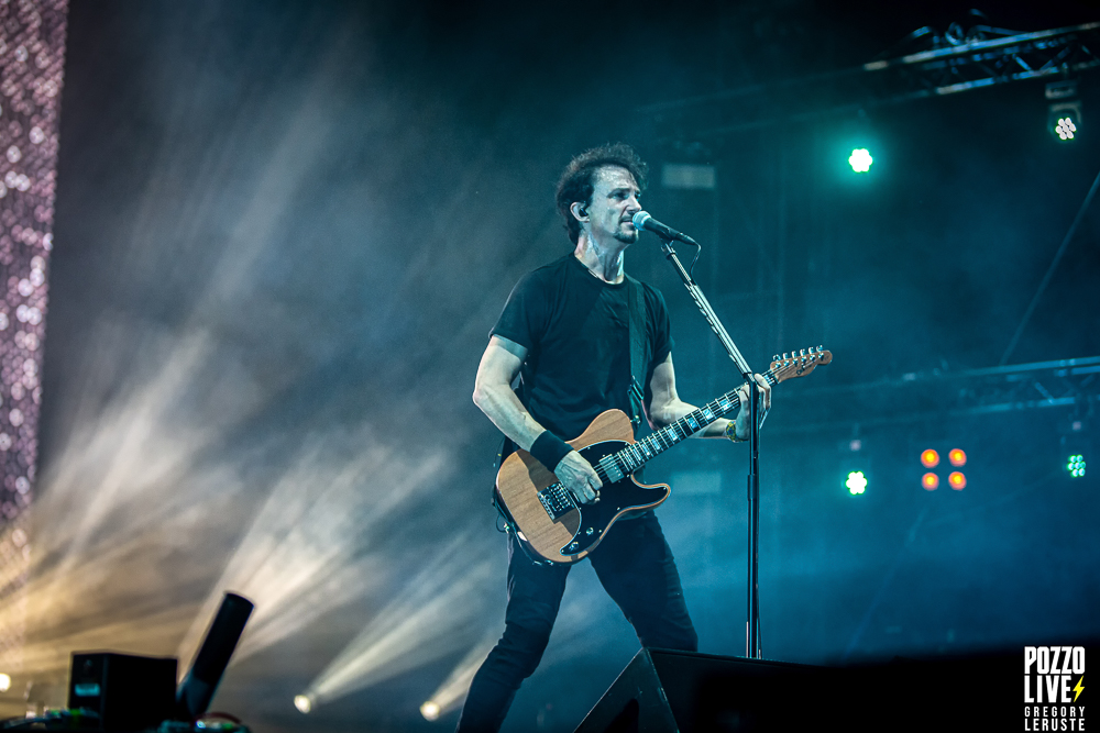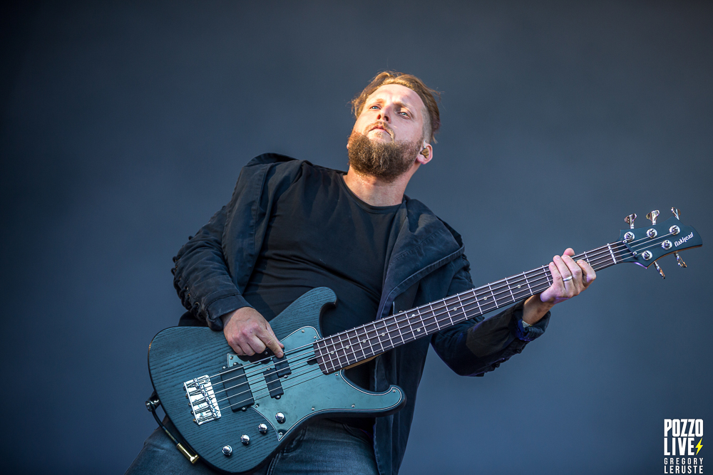 La nuit est désormais tombée et les festivaliers qui ont eu 45min pour manger après Zeal & Ardor sont dans l’expectative de ce final tant attendu du dimanche 10 juillet de Pause Guitare. Tout à coup, l’écran géant s’allume et laisse apparaître un décompte de 180 secondes (les plus fins matheux d’entre vous auront compris qu’il s’agit aussi de 3 minutes), laissant aux auditeurs le temps de se rapprocher de la scène. Les quatre membres entrent ensuite en débutant le live avec Born For One Thing, le titre d’ouverture de leur dernier album, Fortitude. On le sait maintenant, les prestations de Gojira sont ultra rodées, d’une technique et d’une sobriété glaciale collant parfaitement à leur musique. Ce concert ne fera pas exception. Voir le quatuor jouer est toujours un réel plaisir, et chacun des membres semble tout aussi heureux d’être avec nous ce soir.