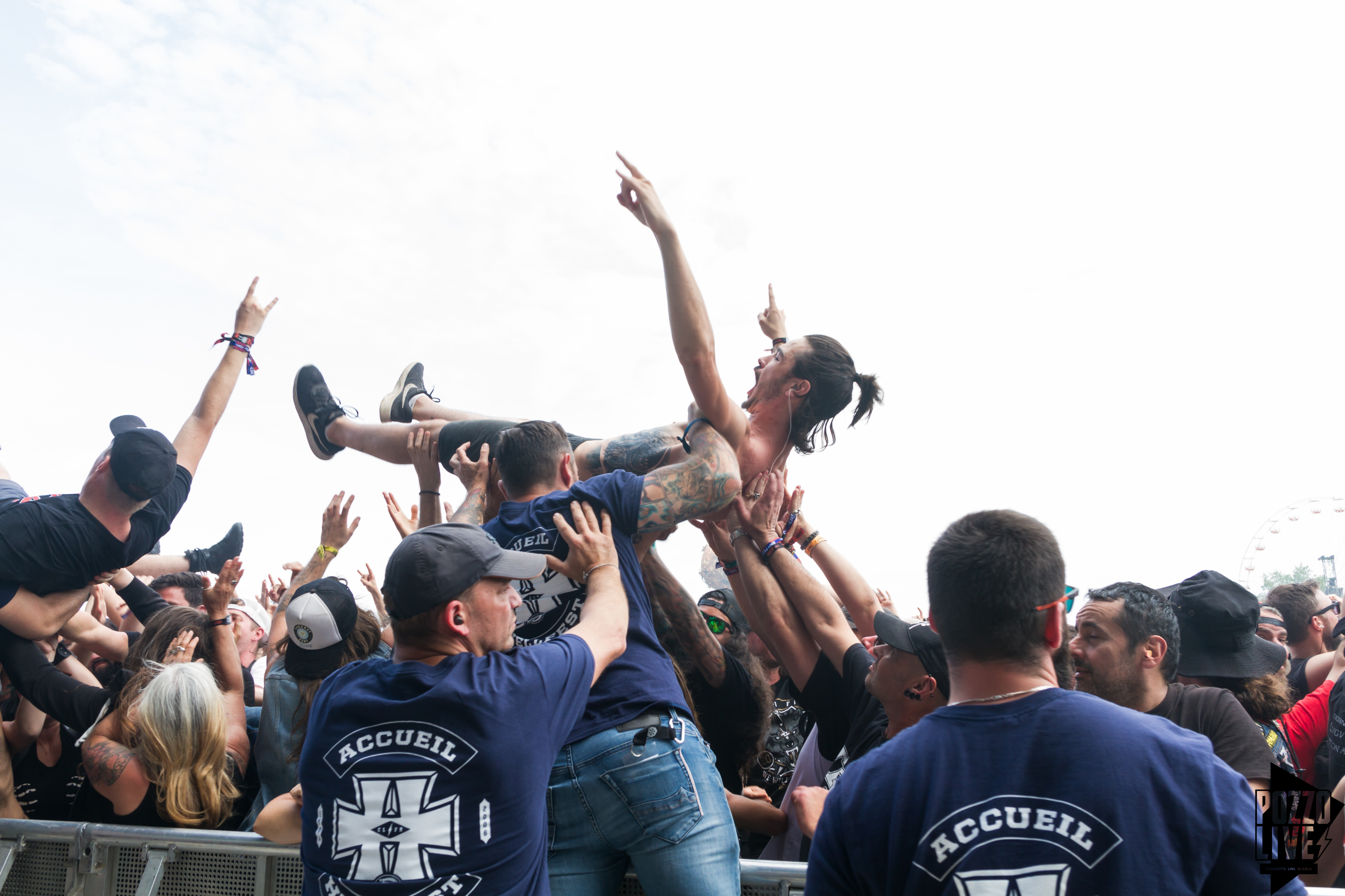 • Slayer: Quel show! Pleins de Circle Pit, de Wall of Death, et de gros bordel comme à chaque passage de Slayer. Les membres sont survoltés et le public aussi, le tout avec pleins de lances flammes partout sur la scène! Discours d’adieu émouvant à la fin du concert