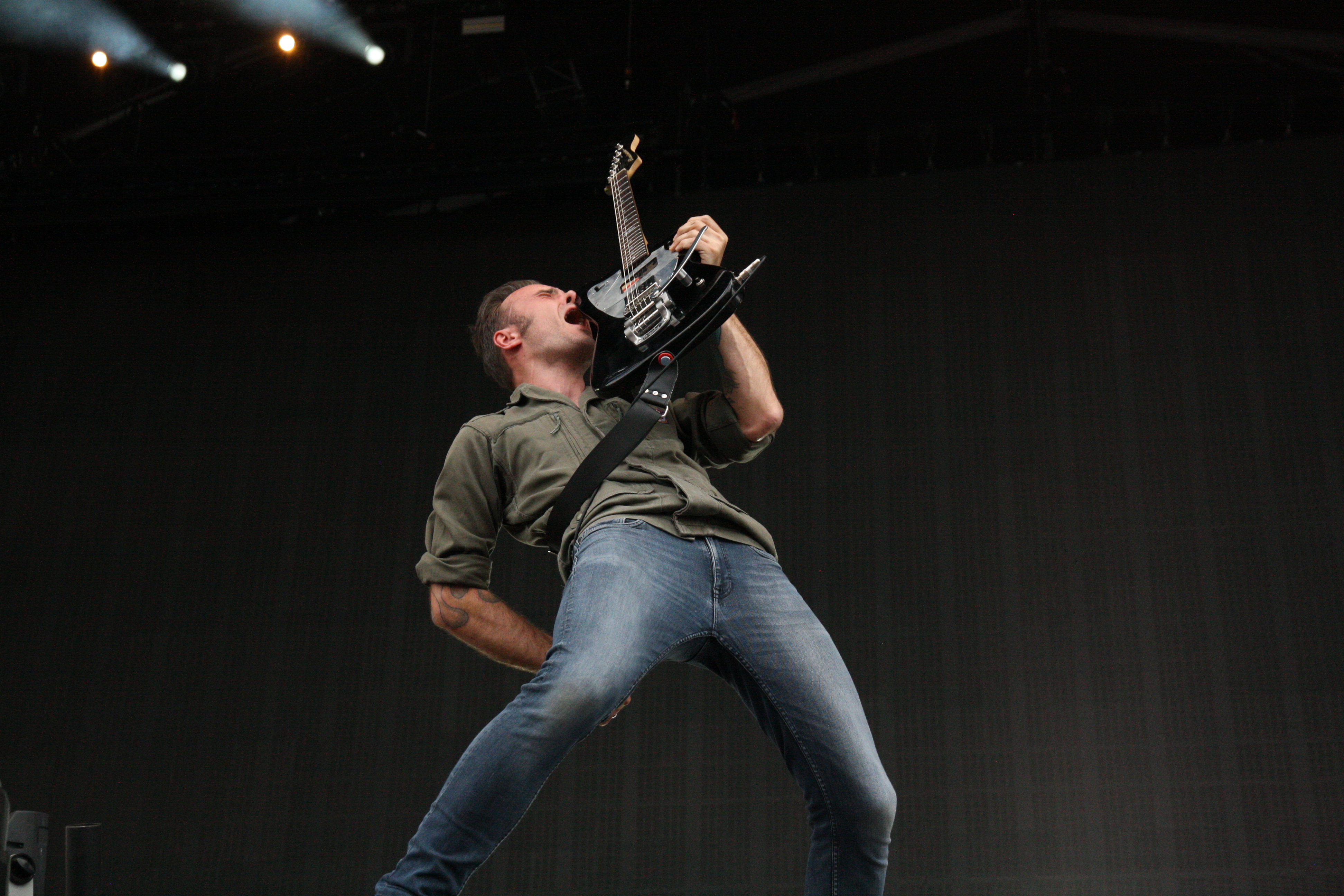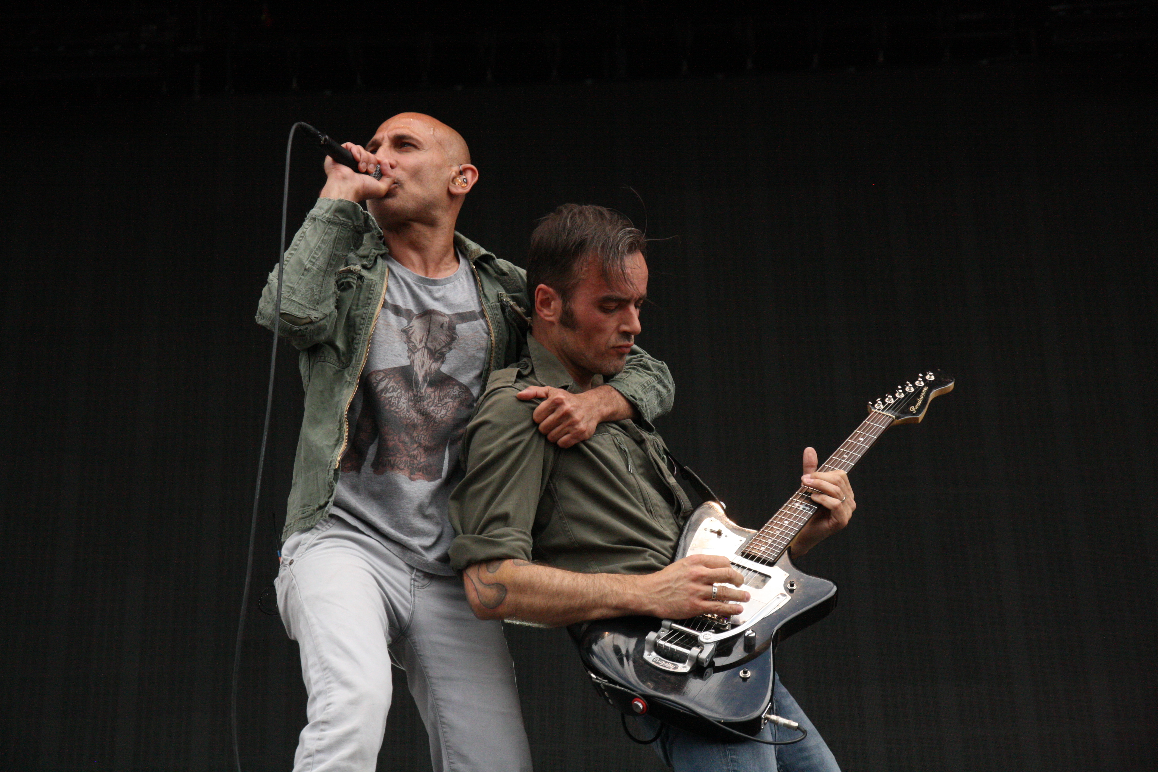 • Enter Shikari: Le chanteur se tape un délire à la Airbourne et escalade une des tours à coté de la scène…