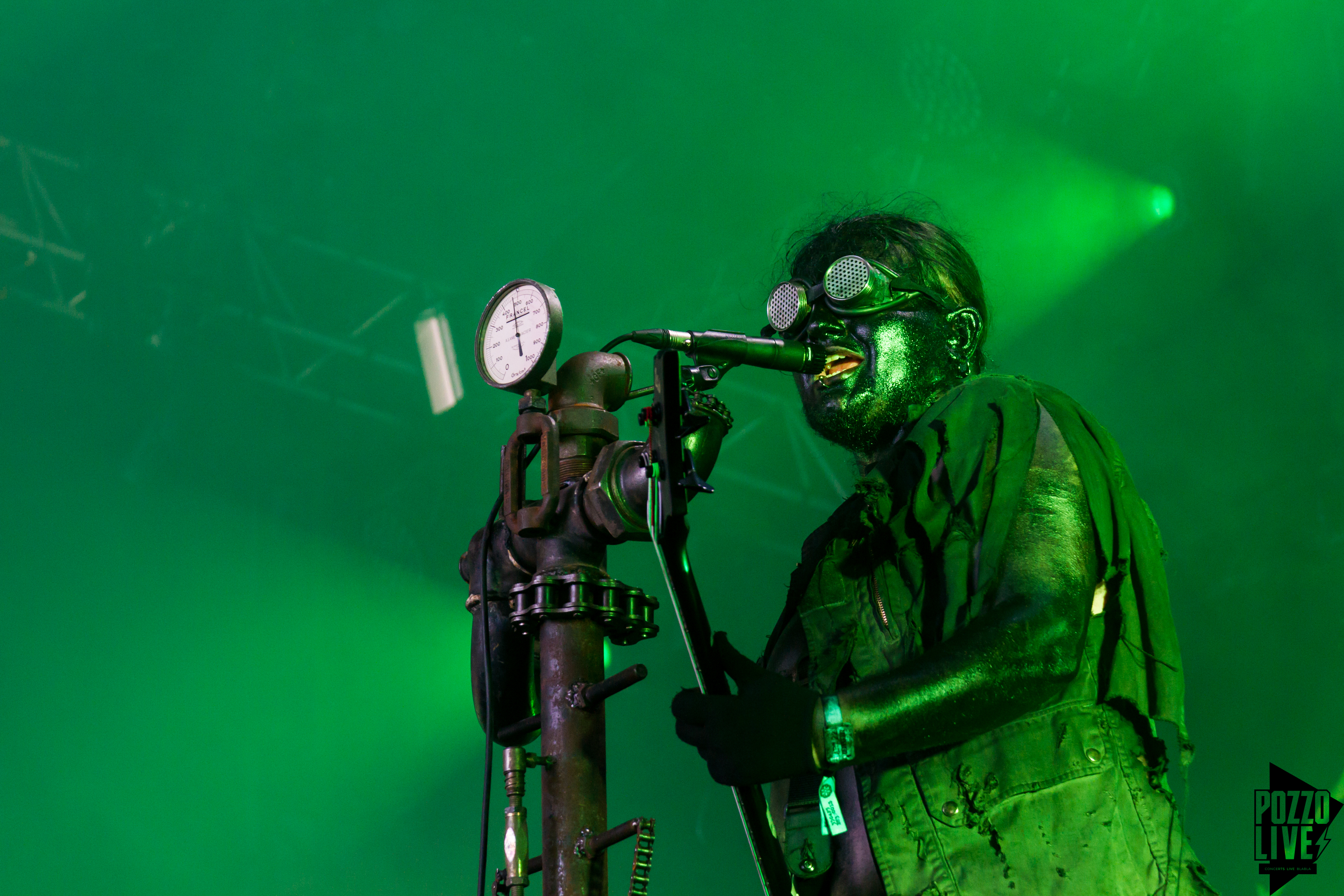 • Banane Métalik: Un show gore guignolesque, pleins de déguisements, des faux os, et du psychobilly diablement efficace notamment avec l’utilisation de la contrebasse