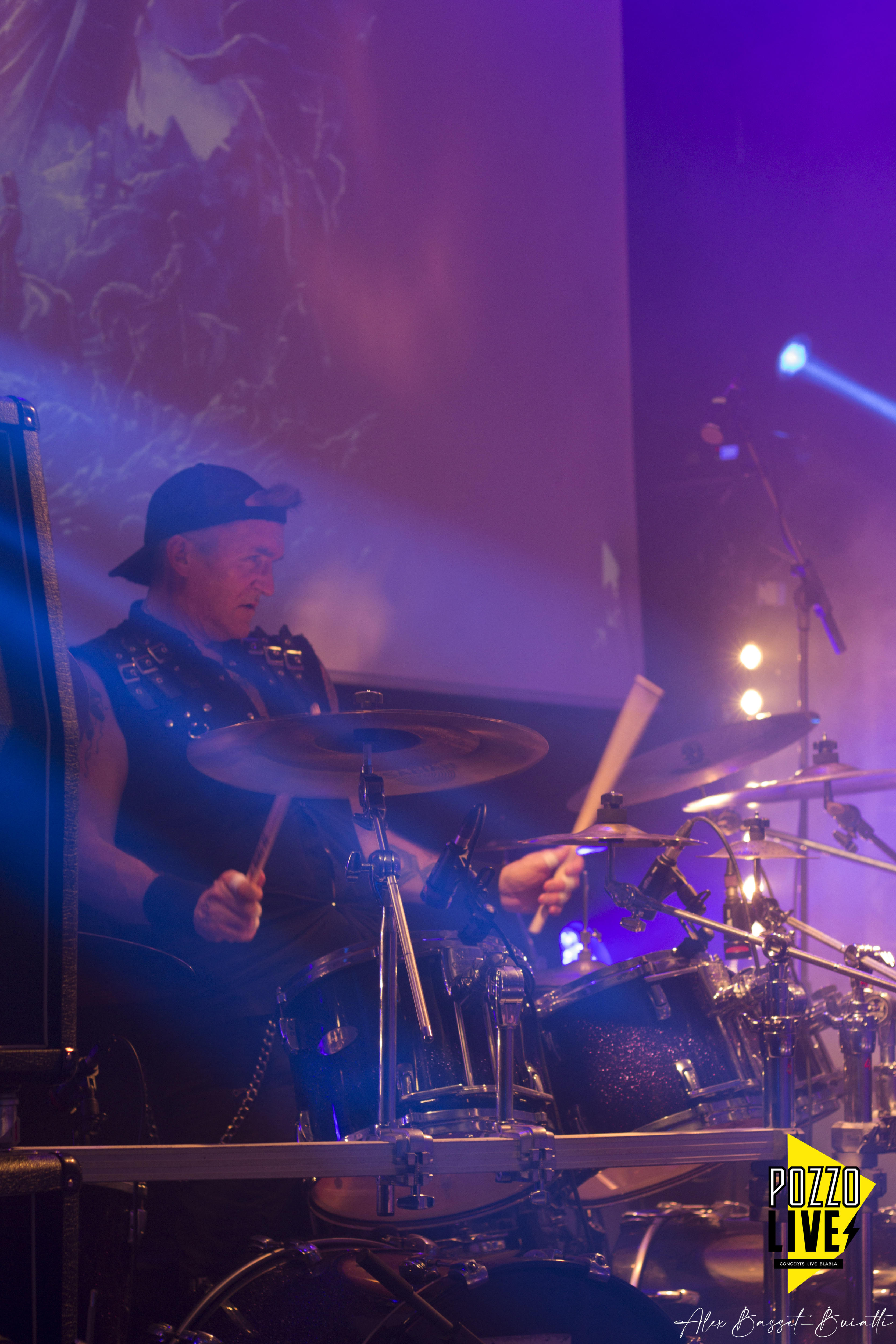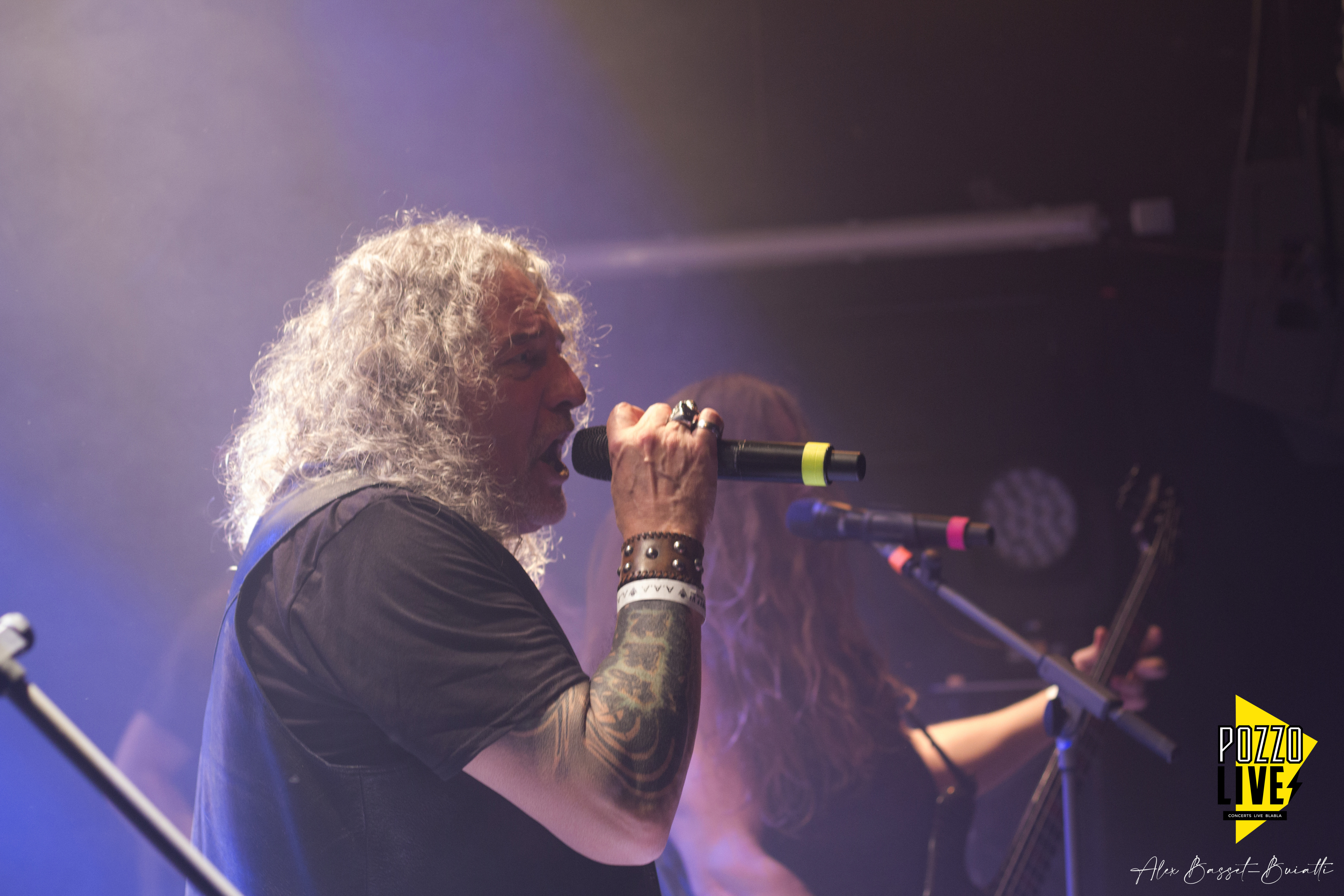 Le public est déjà bien à fond, bien chauffé par ces premières parties de qualité. On démarre sur une intro toute en douceur et l’on voit apparaître les sourires sur les visages du public lorsque les premiers rythmes de speed metal commencent à résonner et lorsque que Phil, le chanteur, arrive sur scène.