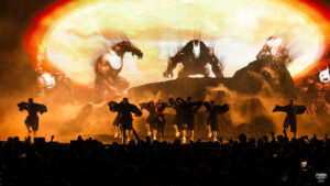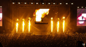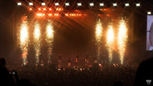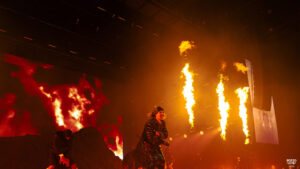 Pourquoi ce fut un risque haut en couleur pour la performance de « Ready to Die », je vous explique. Non seulement Rilès se retrouve sur un plateau à plusieurs mètres de haut. Mais en plus de ça c’est une explosion de flammes et d’étincelles qui prennent vie sur scène. C’était vraiment spectaculaire, on avait les yeux rivés sur lui.