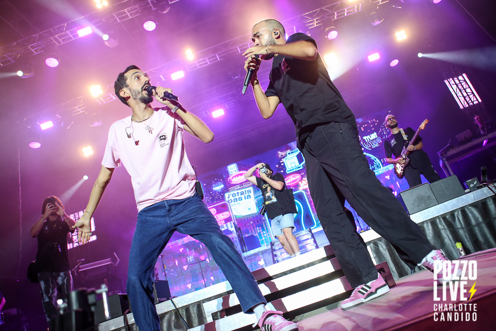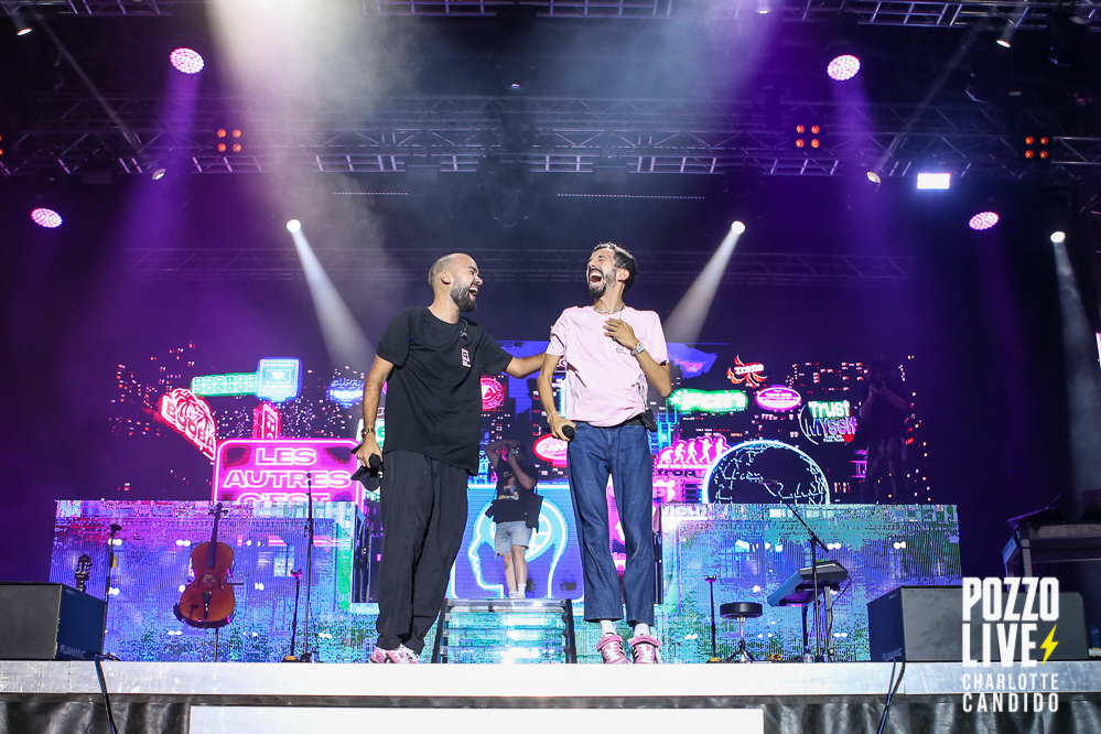 Premier concert de Bigflo & Oli à leur festival ! Les 25 000 personnes sont présentes et bouillantes, pressées contre la scène Aussonne. Le concert a démarré sur La vie d’après, premier morceau de leur dernier album. Et quelle claque en live ! Le morceau prend aux tripes et finit de conquérir le cœur des Toulousains. Les autres c’est nous est à l’honneur, avec J’étais pas là, Booba, Sacré Bordel et Coup de vieux. L’album est taillé pour le live : toutes ces musiques prennent une autre dimension en concert.