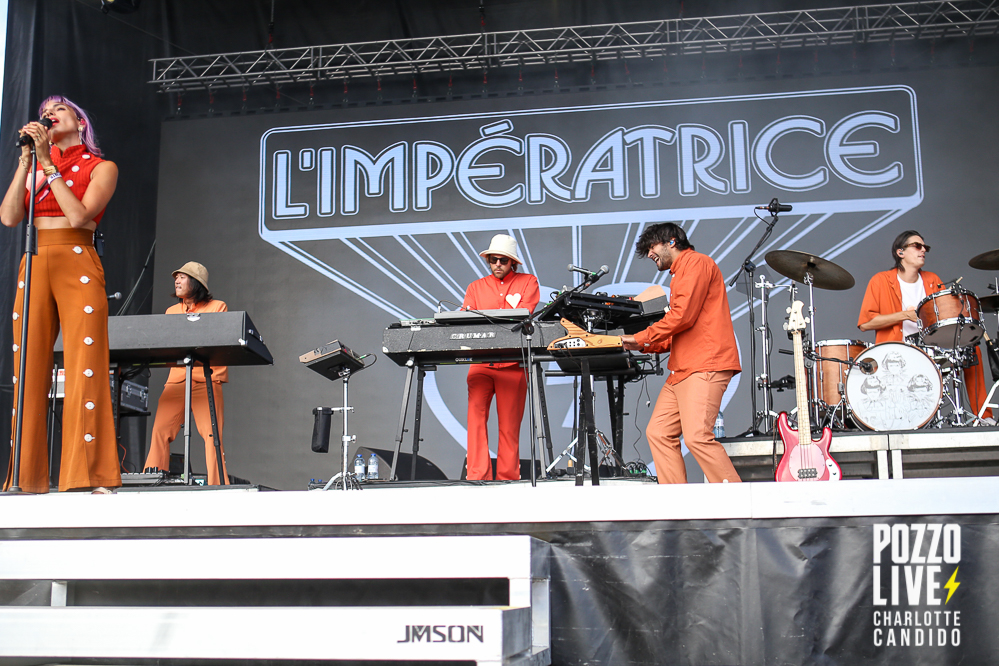 De l’électro-pop des années 90 savamment remis au goût du jour ! L’impératrice, c’est beaucoup de claviers, une voix délicate, et des déhanchés synchronisés. Les cinq membres font battre les cœurs du public en même temps que ceux qu’ils arborent sur leurs vestes. Une douce vague de nostalgie dansante s’est déversée sur le Rose Festival !