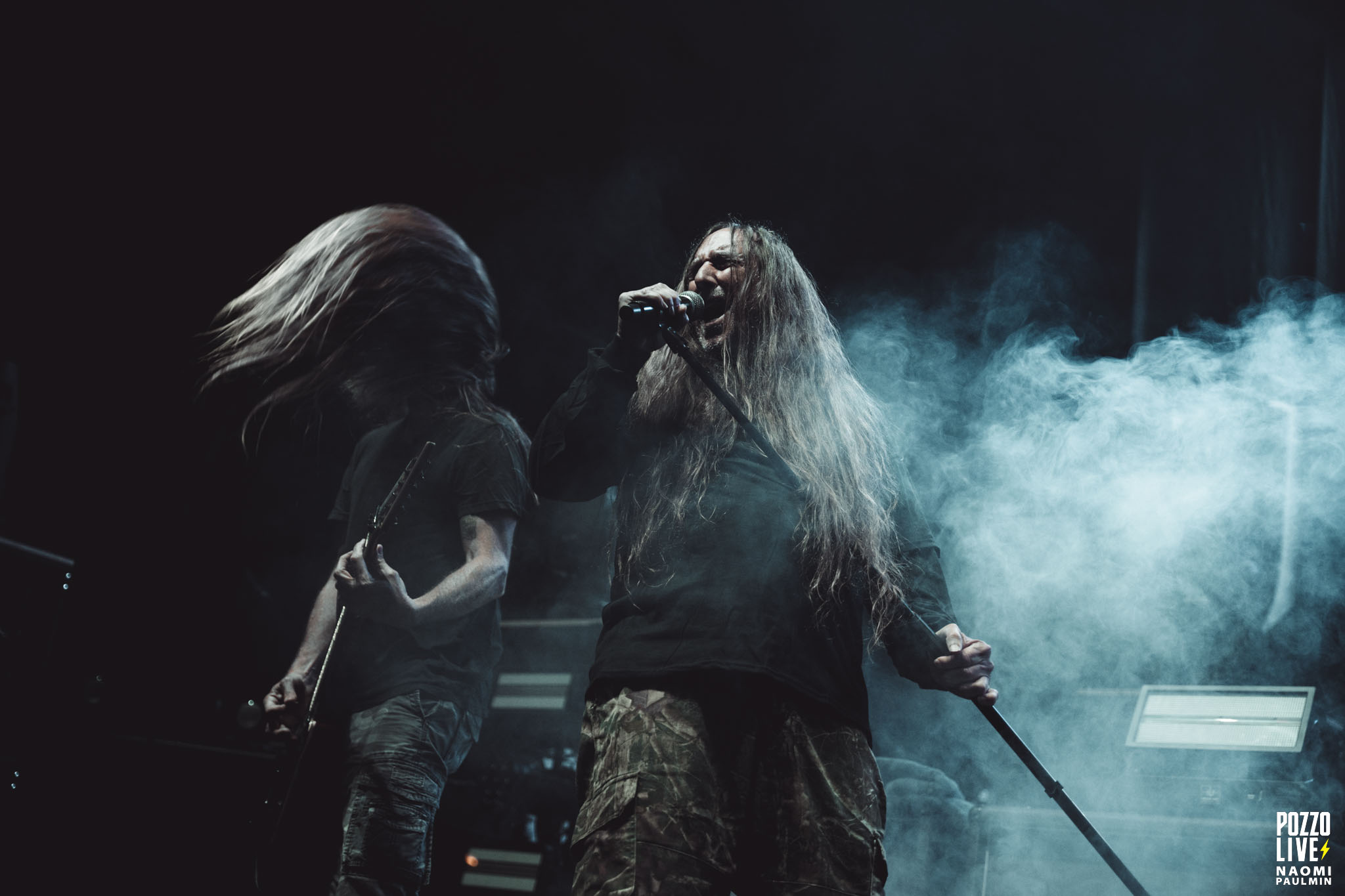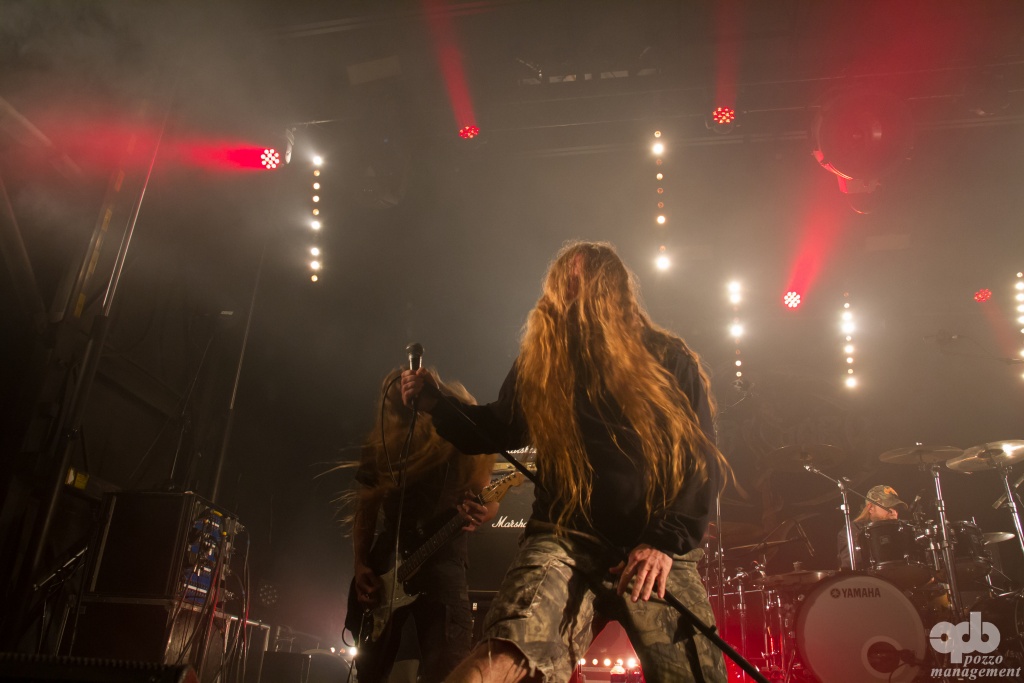 Dans un décor minimaliste – seul un drapeau aux couleurs du groupe barre l’arrière scène – le groupe enchaîne les titres sans fioritures et déverse ses riffs lourds et ses harmoniques sur le public, avec un son excellent qui tranche avec celui de Jesus Piece. On peut regretter le manque d’interaction avec la foule, les frères Tardy se contentant de boire leurs bières entre les titres. Mais le groupe prend un plaisir évident à jouer, et « Slowly We Rot » vient clôturer en apothéose un set un peu court.