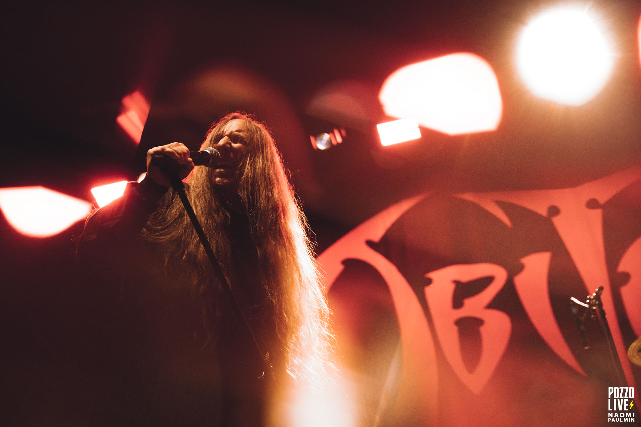 Certains les auraient plutôt vus en seconde tête d’affiche qu’en première partie de luxe, et le public parisien a fait le déplacement en nombre. Comme Sepultura, Obituary fête également ses 40 ans d’activité cette année (on oubliera la pause des années 2000), et ils ont des choses à raconter. Dès les premières notes de « Red Somp« , la ferveur de la fosse est totale, et John Tardy n’a – littéralement – qu’à lever le doigt pour déclencher des mouvements de foule, et même le crew visible sur le côté headbang.