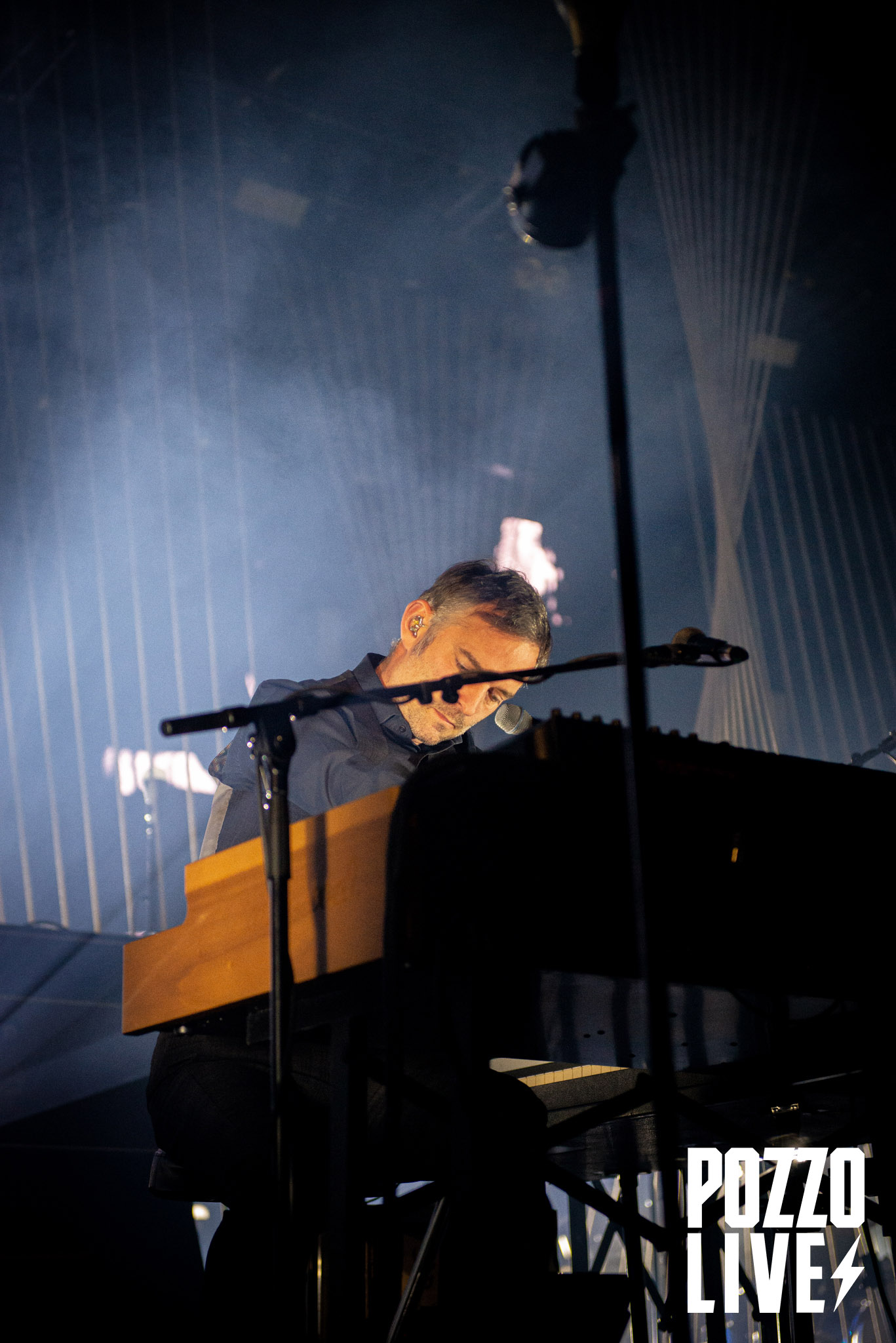 Il n’est donc pas étonnant que Sigur Rós démarre le show avec les trois premiers morceaux de ( ) : Vaka, Fyrsta, Samskeyti. Les Nordiques nous plongent alors dans une atmosphère éthérée avec des instrumentales minimalistes. Cette simplicité permet à la voix de Jónsi de ressortir avec encore plus de force. On reste bouche bée devant les capacités vocales du chanteur, car il peut tenir une note pendant (très) longtemps. Il arrivera même à la tenir pendant près d’une minute sur le titre Festival ! On ferme alors les yeux pour se laisser bercer par le timbre exceptionnel du nordique, mais aussi par les paroles en vonlenska, langue inventée par le chanteur.